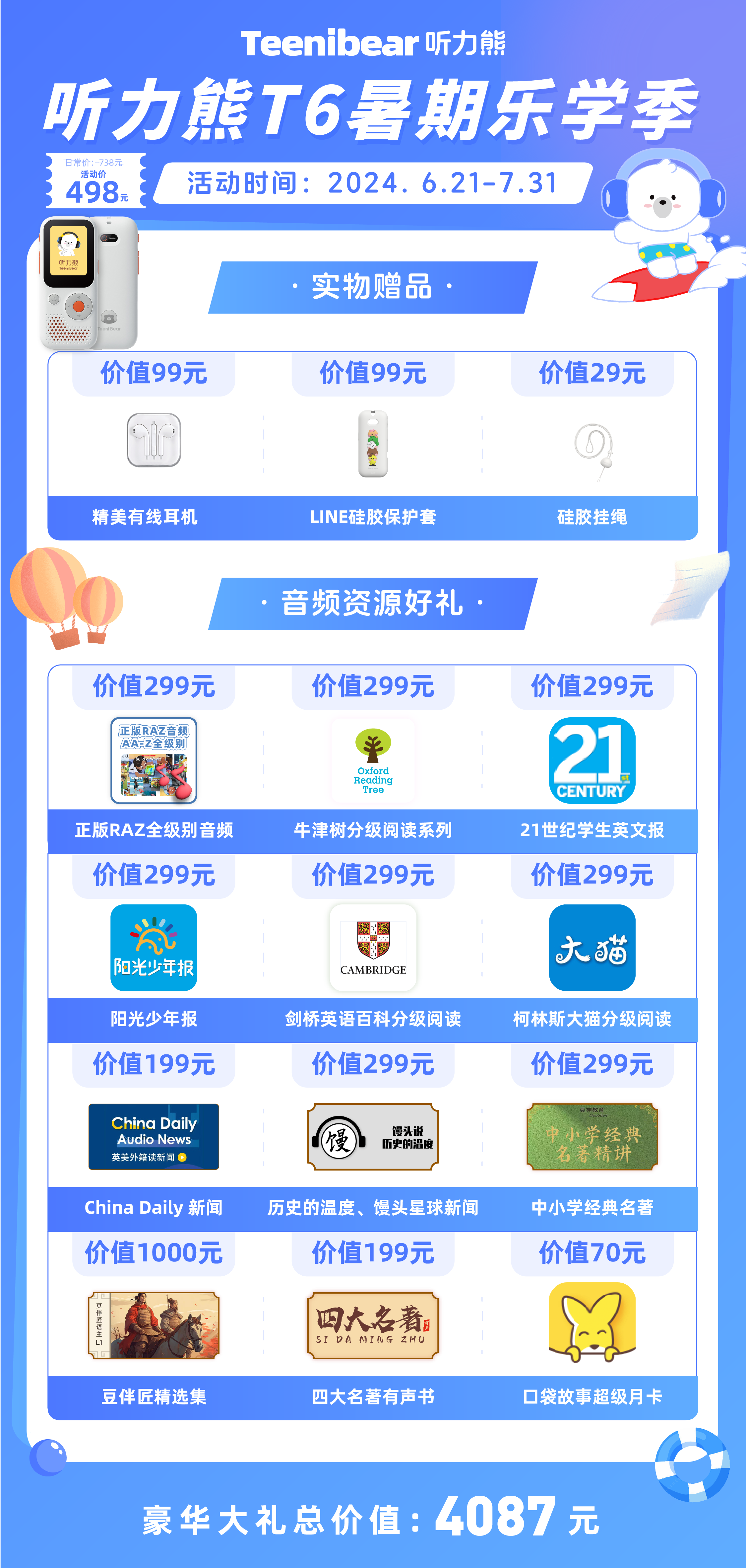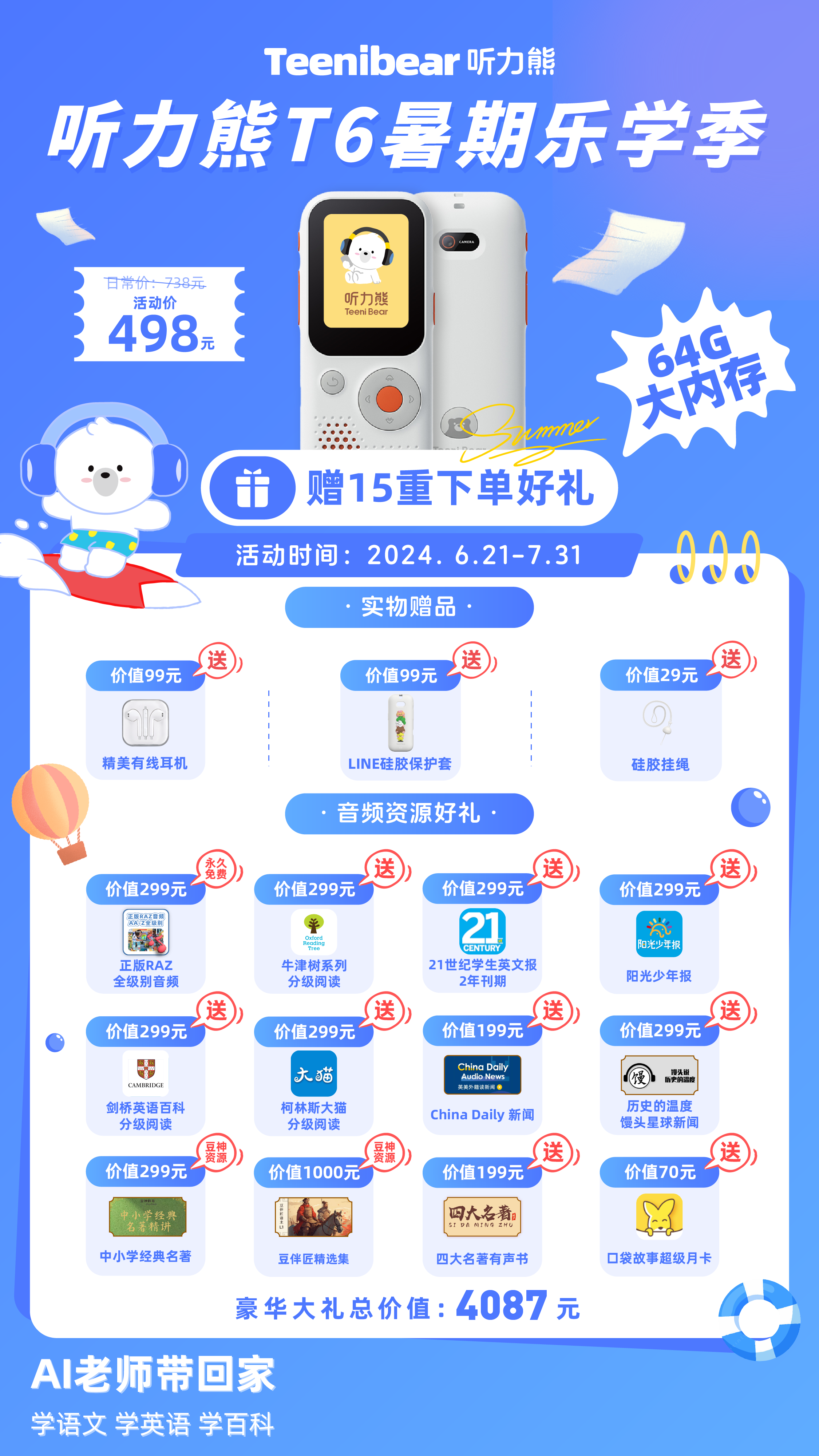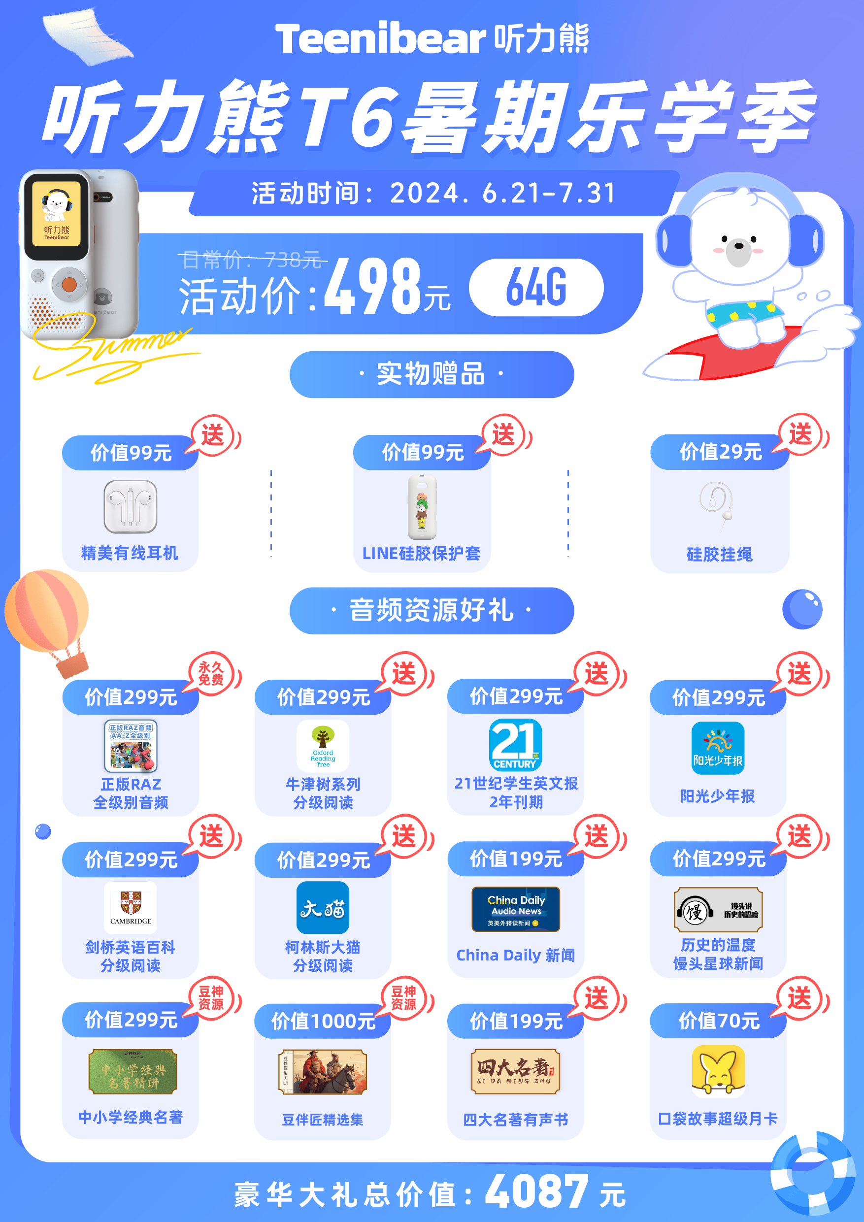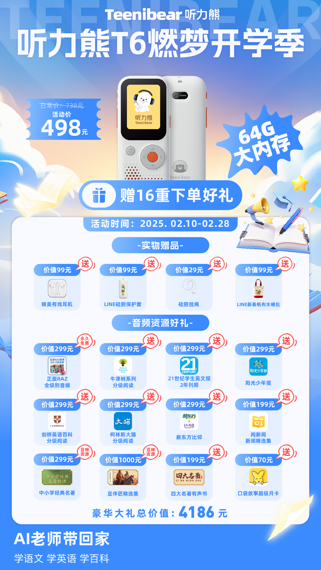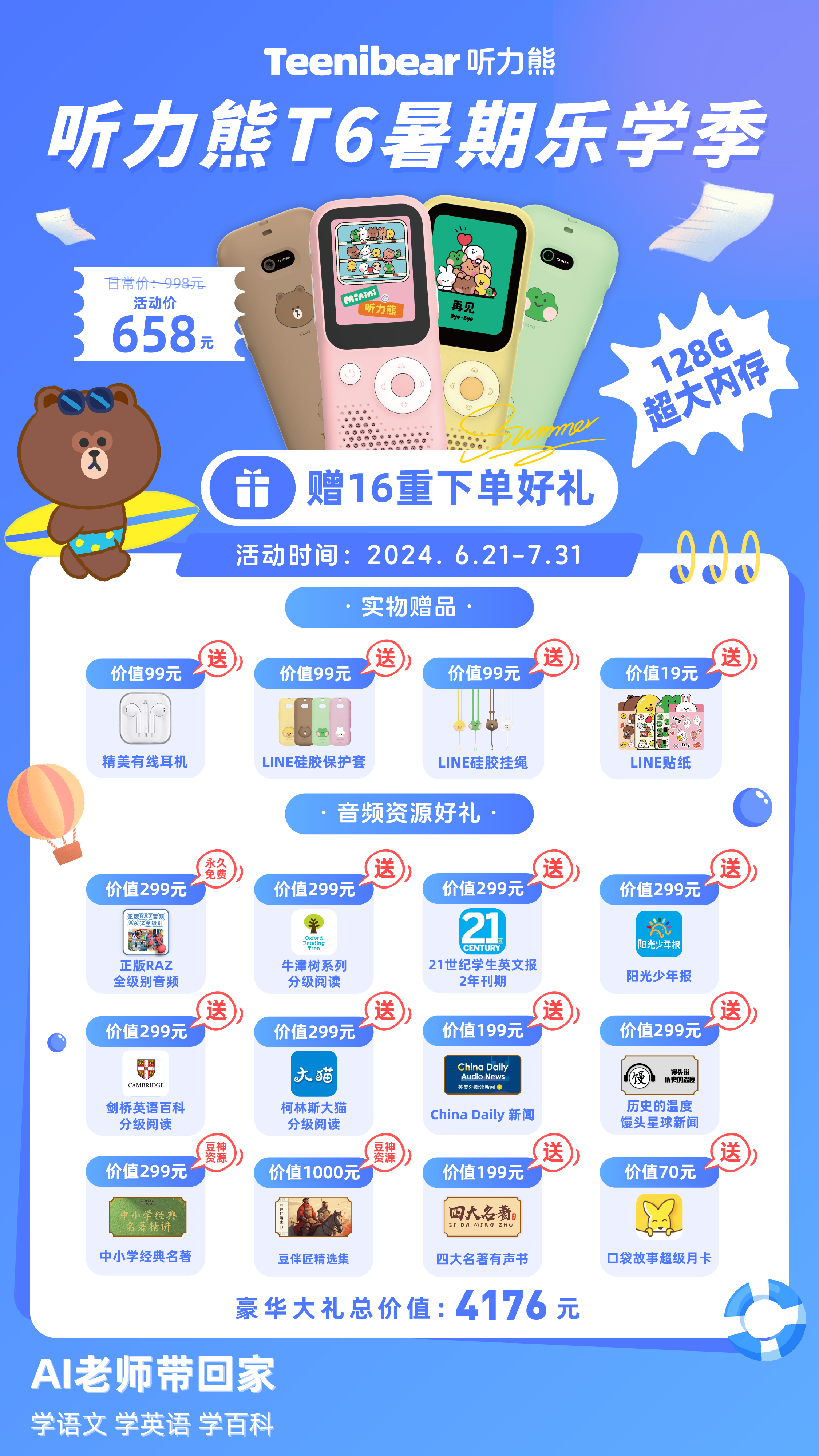好学多听力熊T6英语学习机 X 豆神大语文 震撼上市 实体赠品:有线耳机99元,line全家福硅胶套99元,硅胶挂绳:29元 (line款配赠联名款贴纸)