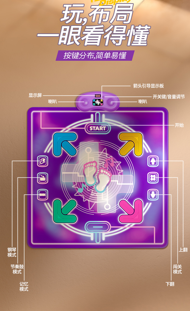 家庭音乐跳舞毯!蓝牙连接、充电款,带灯光音乐,实现跳舞机自由💃大人甩掉赘肉,孩子运动健康! 🕺✨⭐️快乐起舞的小天地!