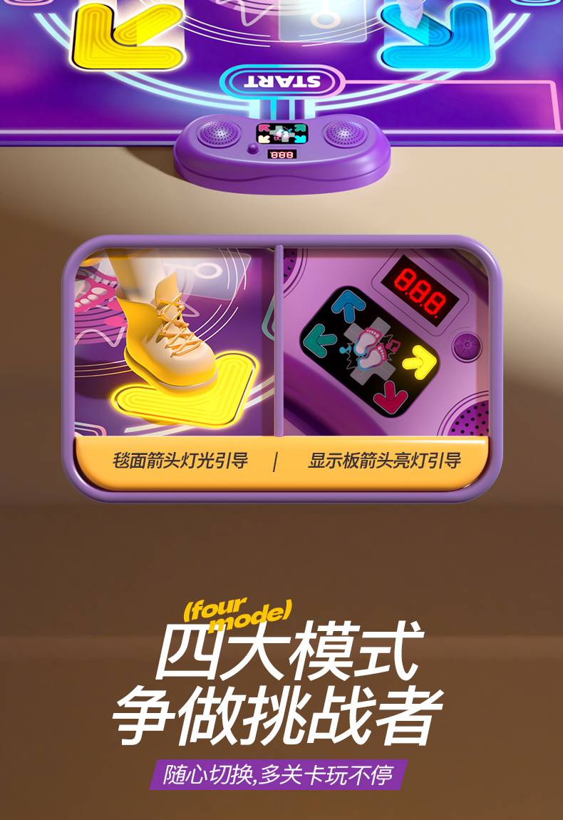 操作简单,无需连接电视或者电脑就可以开启游戏模式。 💃跟着引导屏上的指示踩踏,不仅锻炼身体,心情都变好~
