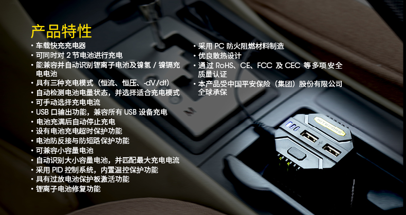 动爱好者的必备照明工具。NITECORE 奈特科尔智能锂电池充电器和电池品类由平安保险全球承保,在