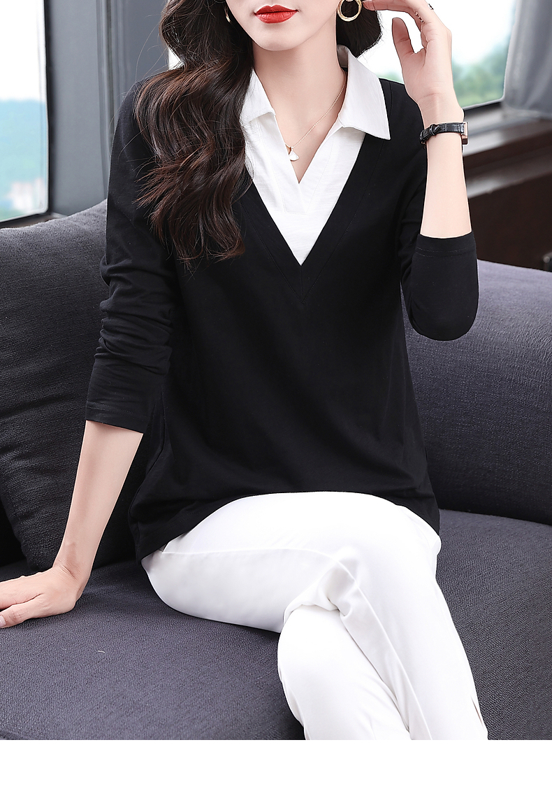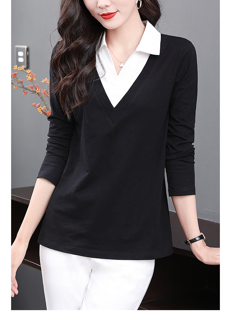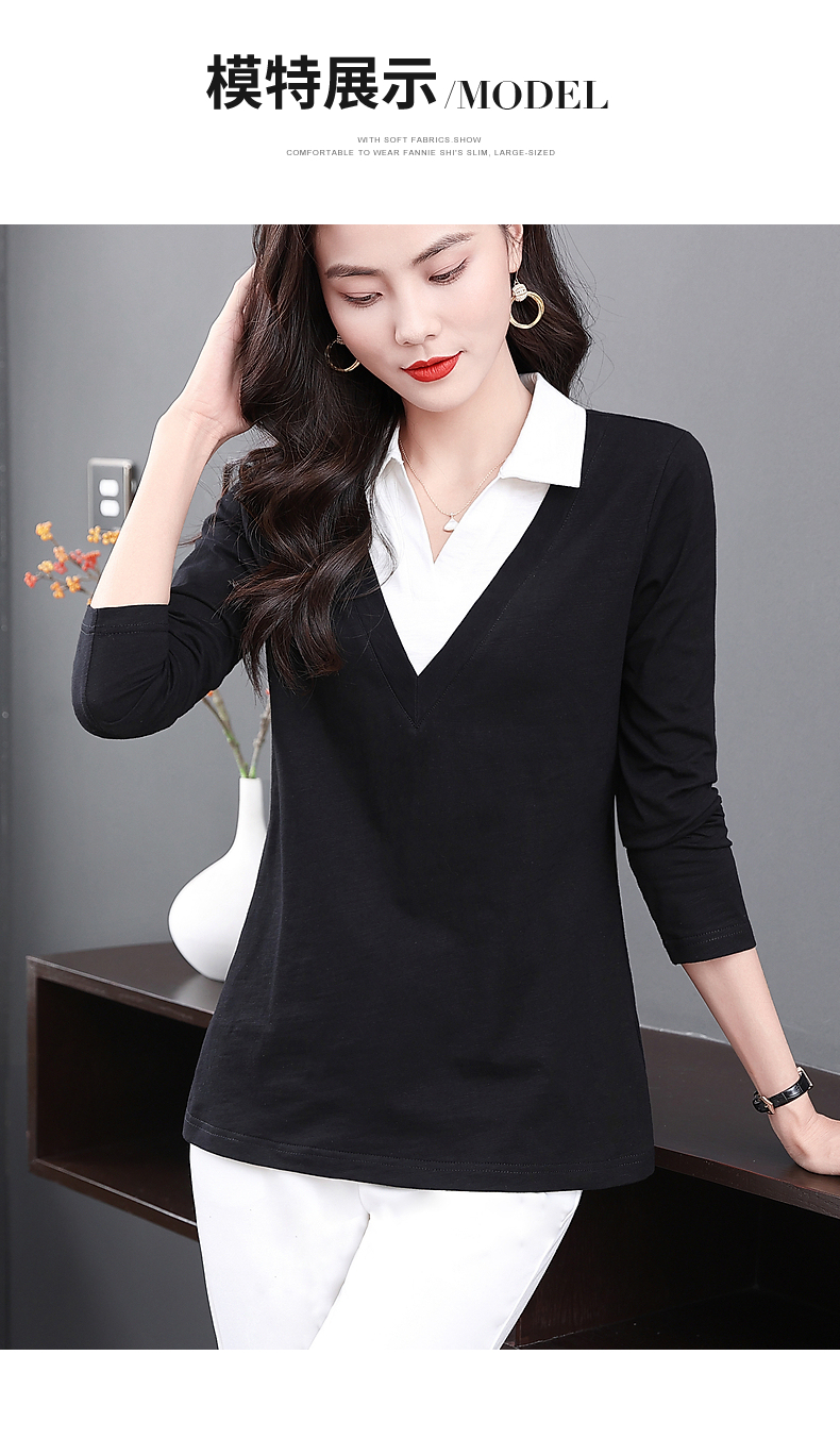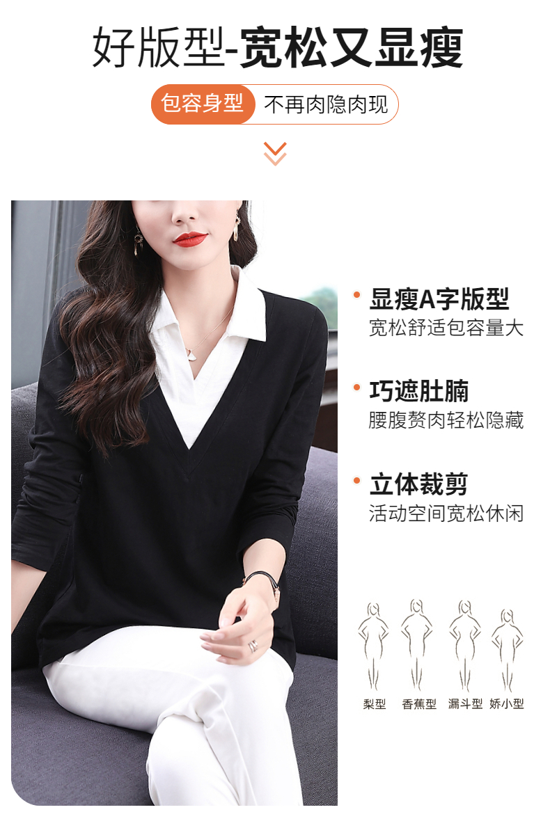 翻领女t恤长袖秋季新款上衣2026年春秋款大码中年妈妈纯棉打底衫