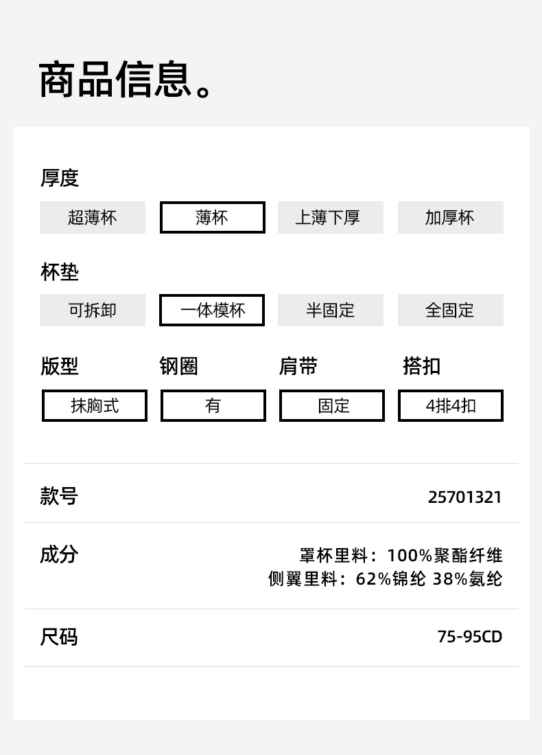 【商场同款】熳洁儿 大胸显小文胸抹胸式光面无痕均薄美丽大系列25701321