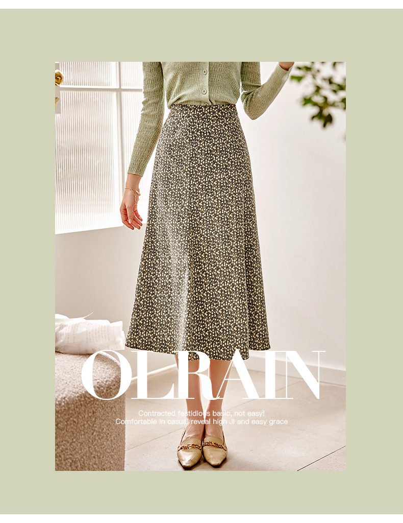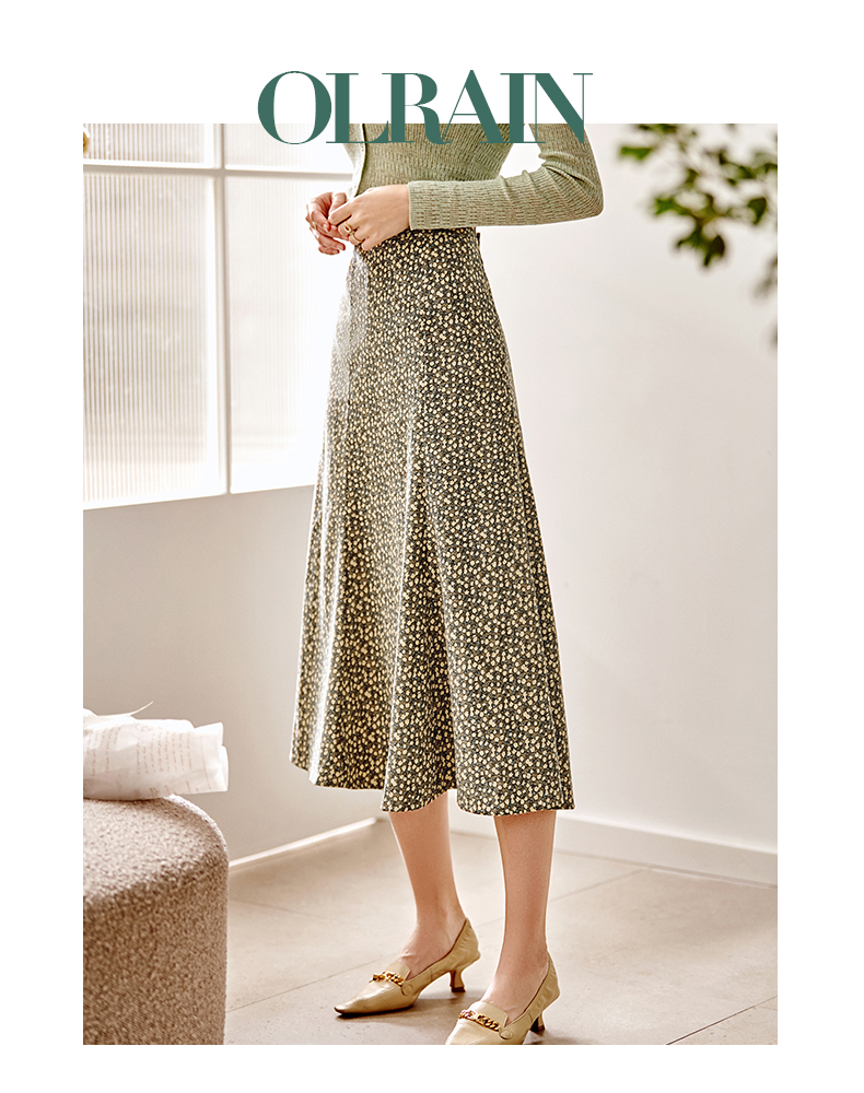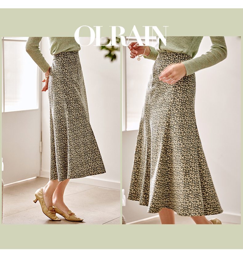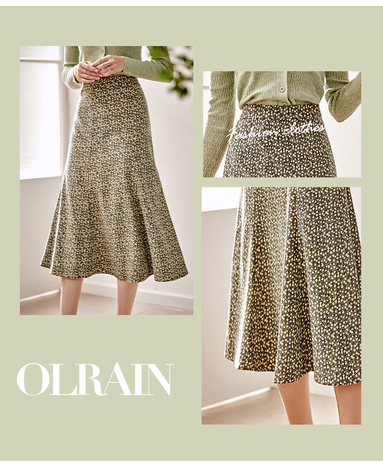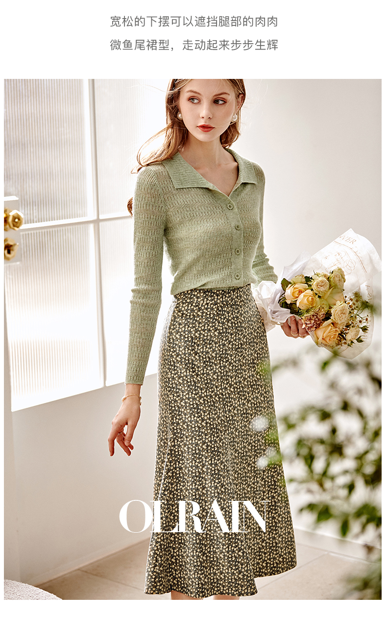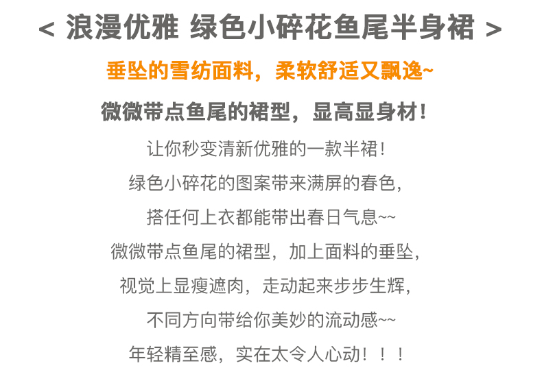 欧芮儿雪纺碎花半身裙女春季新款高腰显瘦年轻时髦优雅绿色鱼尾裙