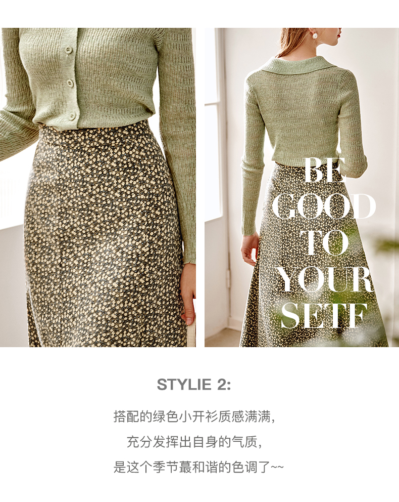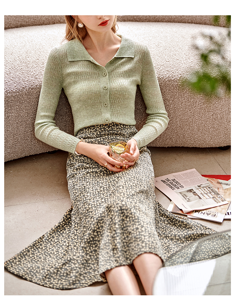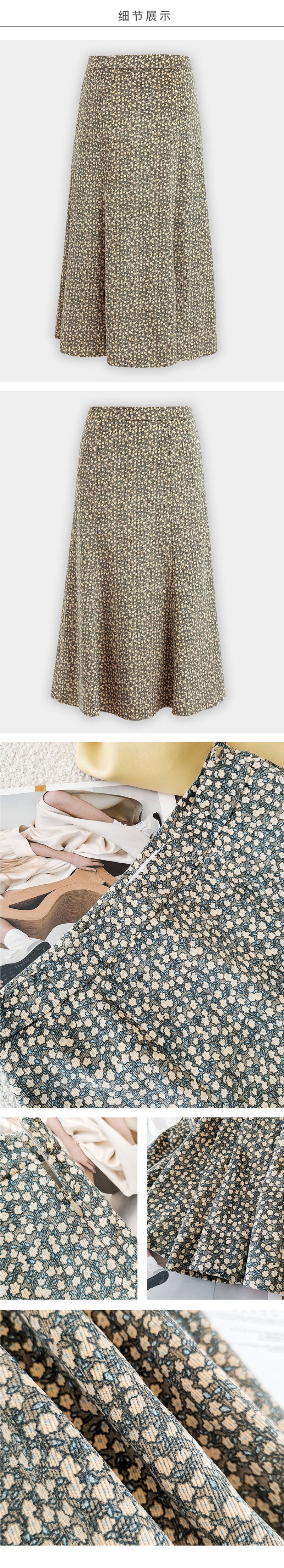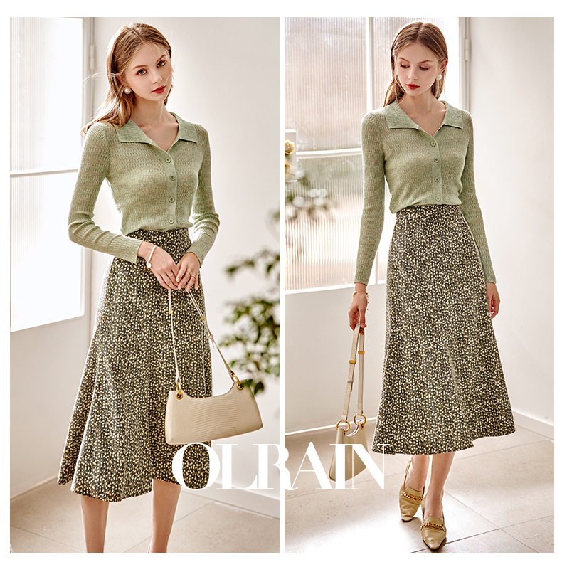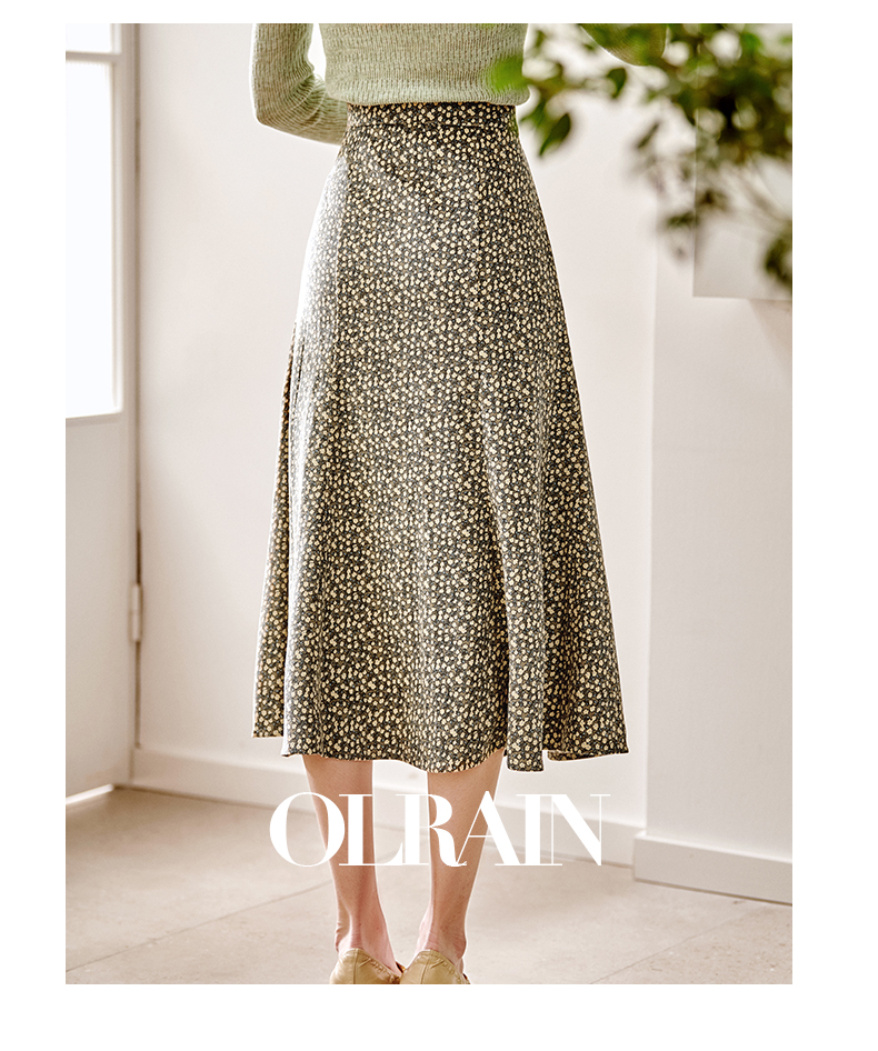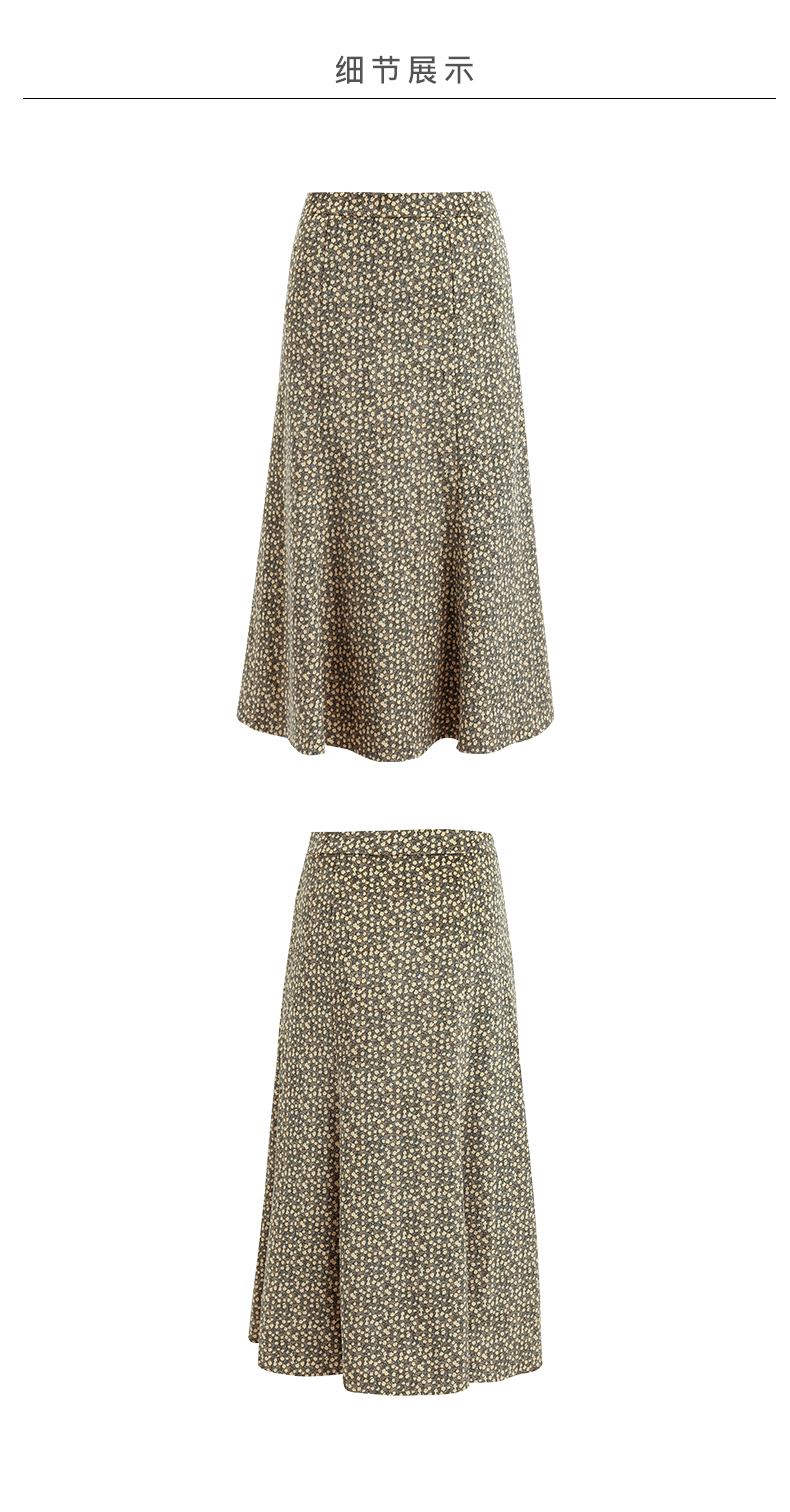 欧芮儿雪纺碎花半身裙女春季新款高腰显瘦年轻时髦优雅绿色鱼尾裙