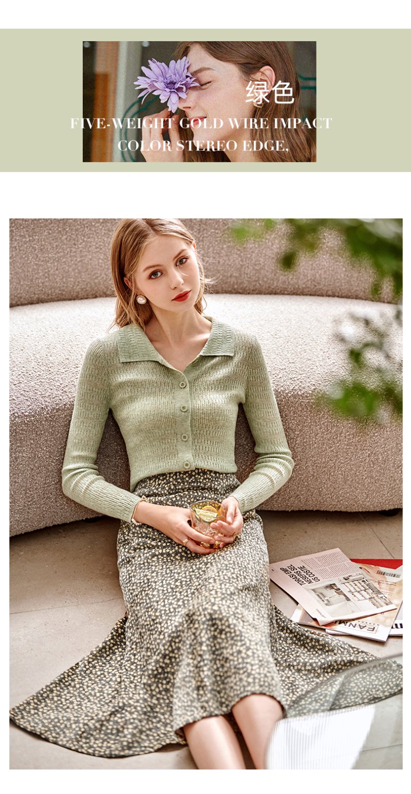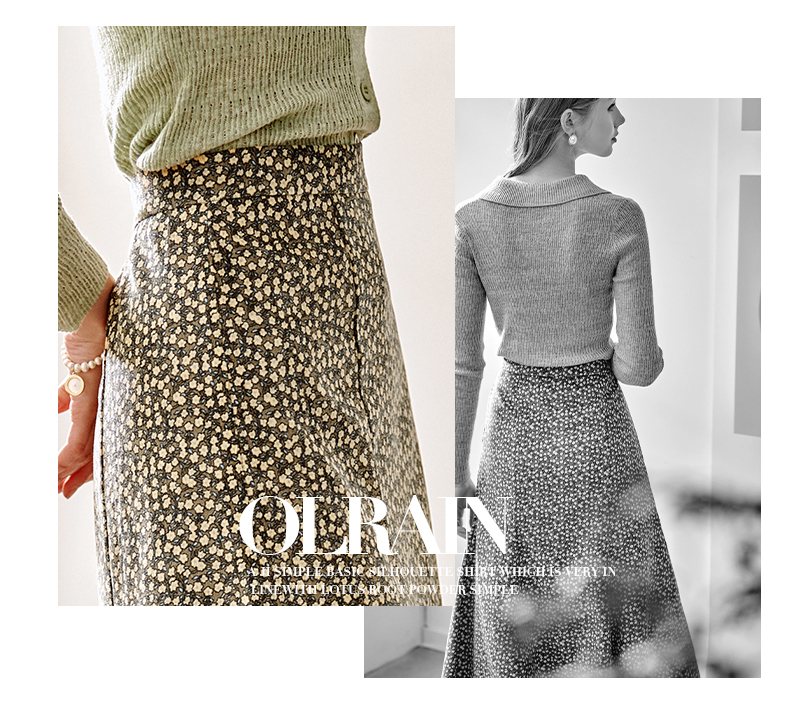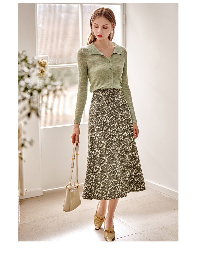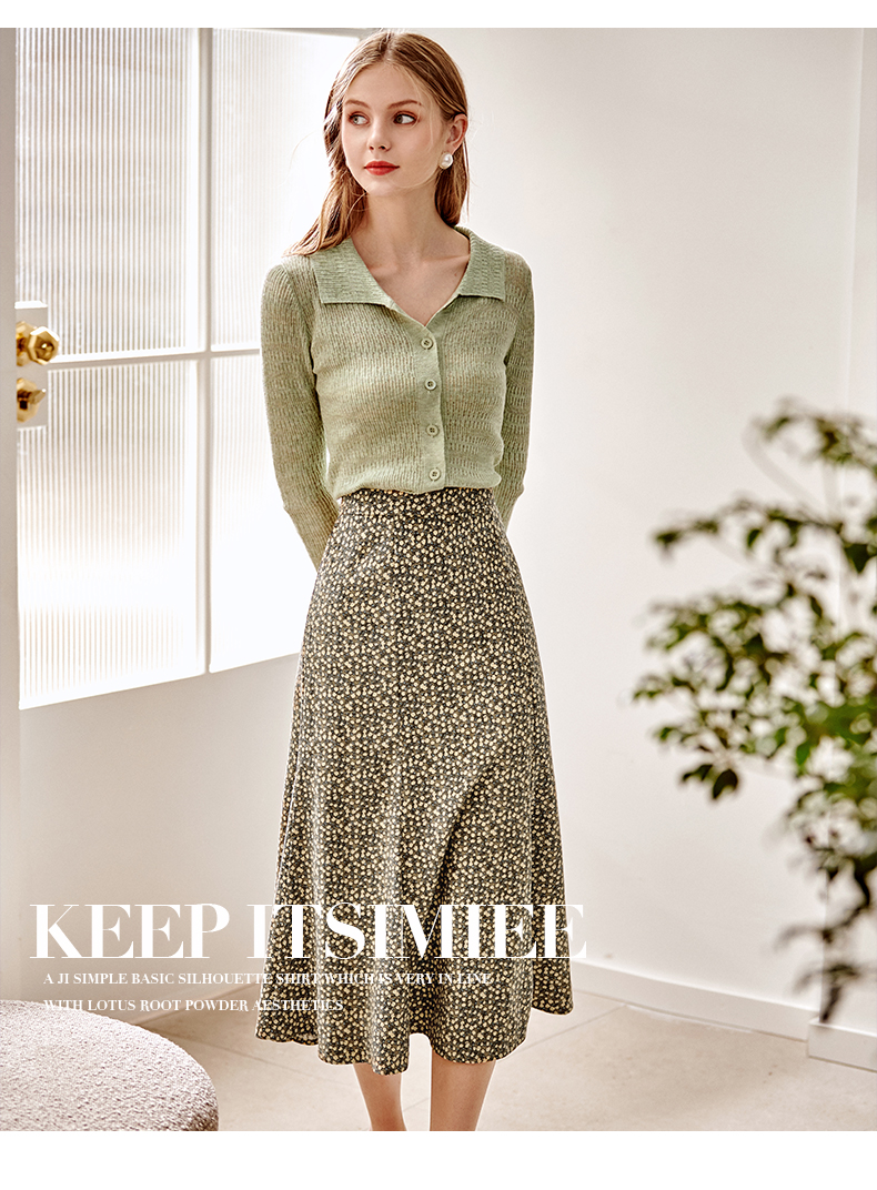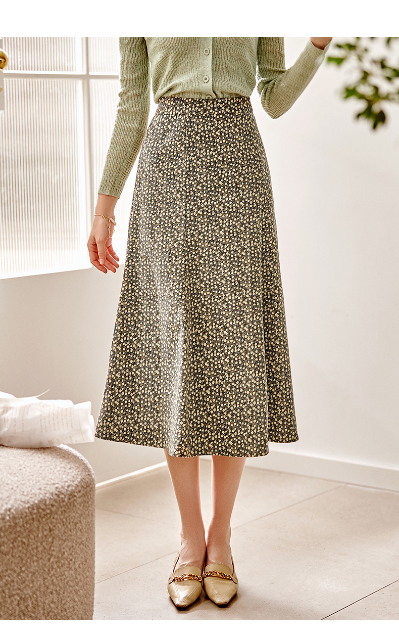 欧芮儿雪纺碎花半身裙女春季新款高腰显瘦年轻时髦优雅绿色鱼尾裙