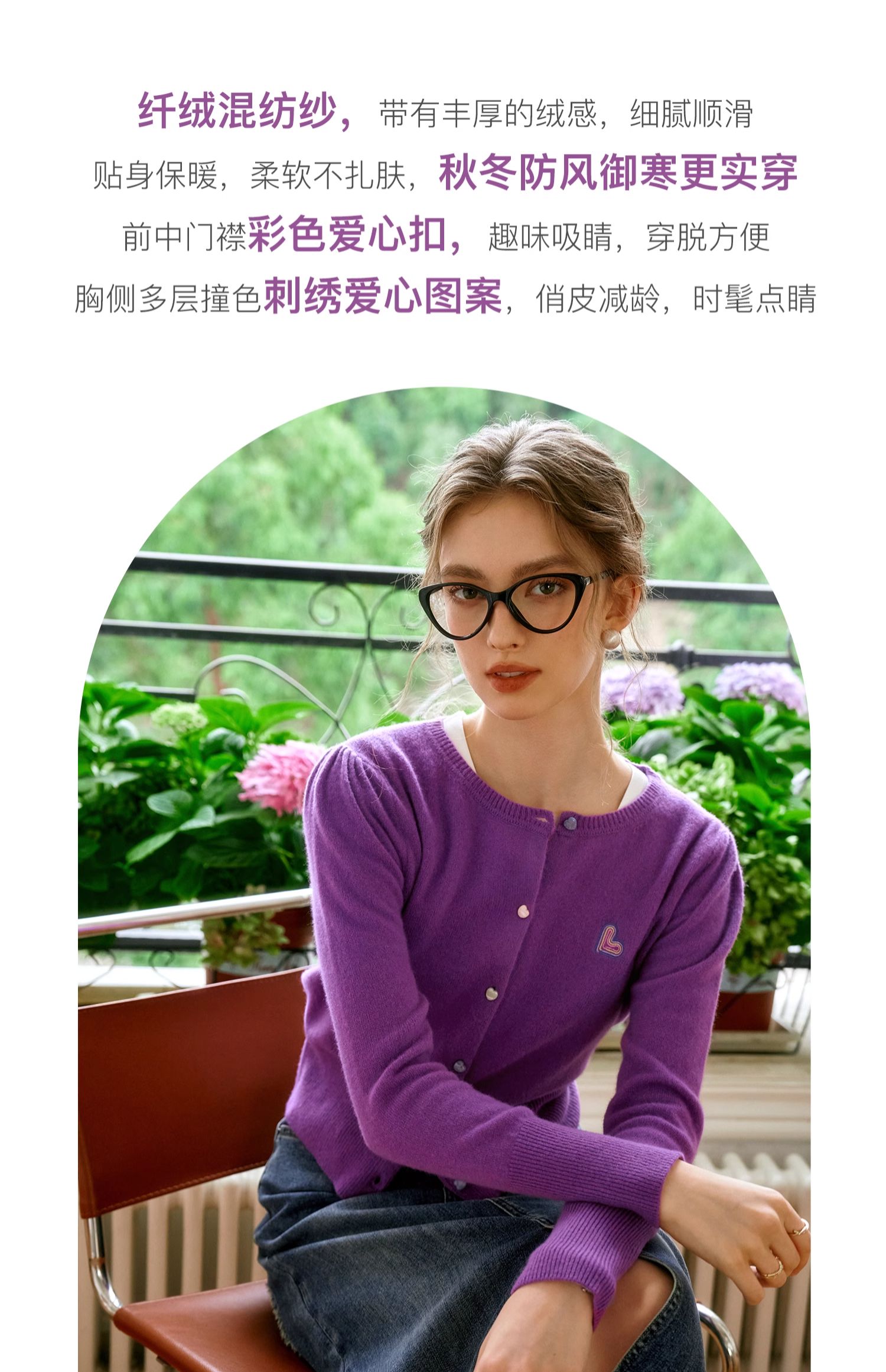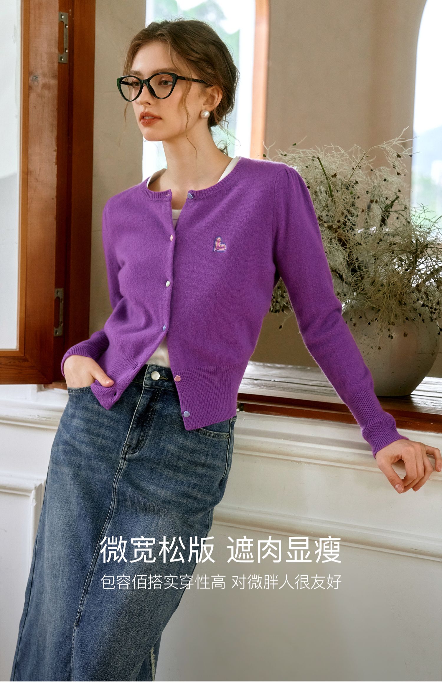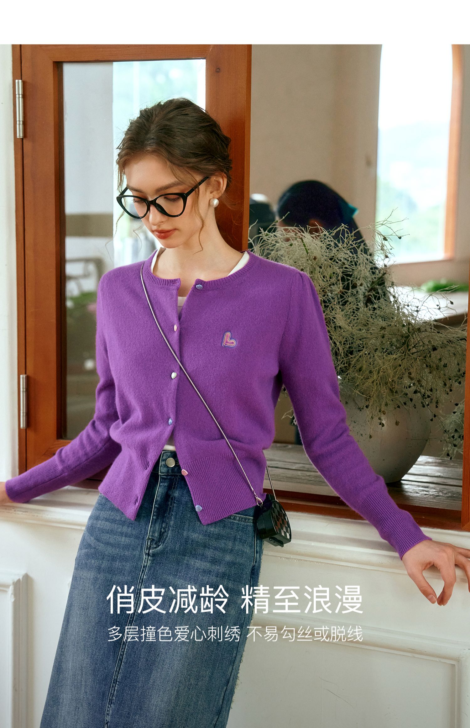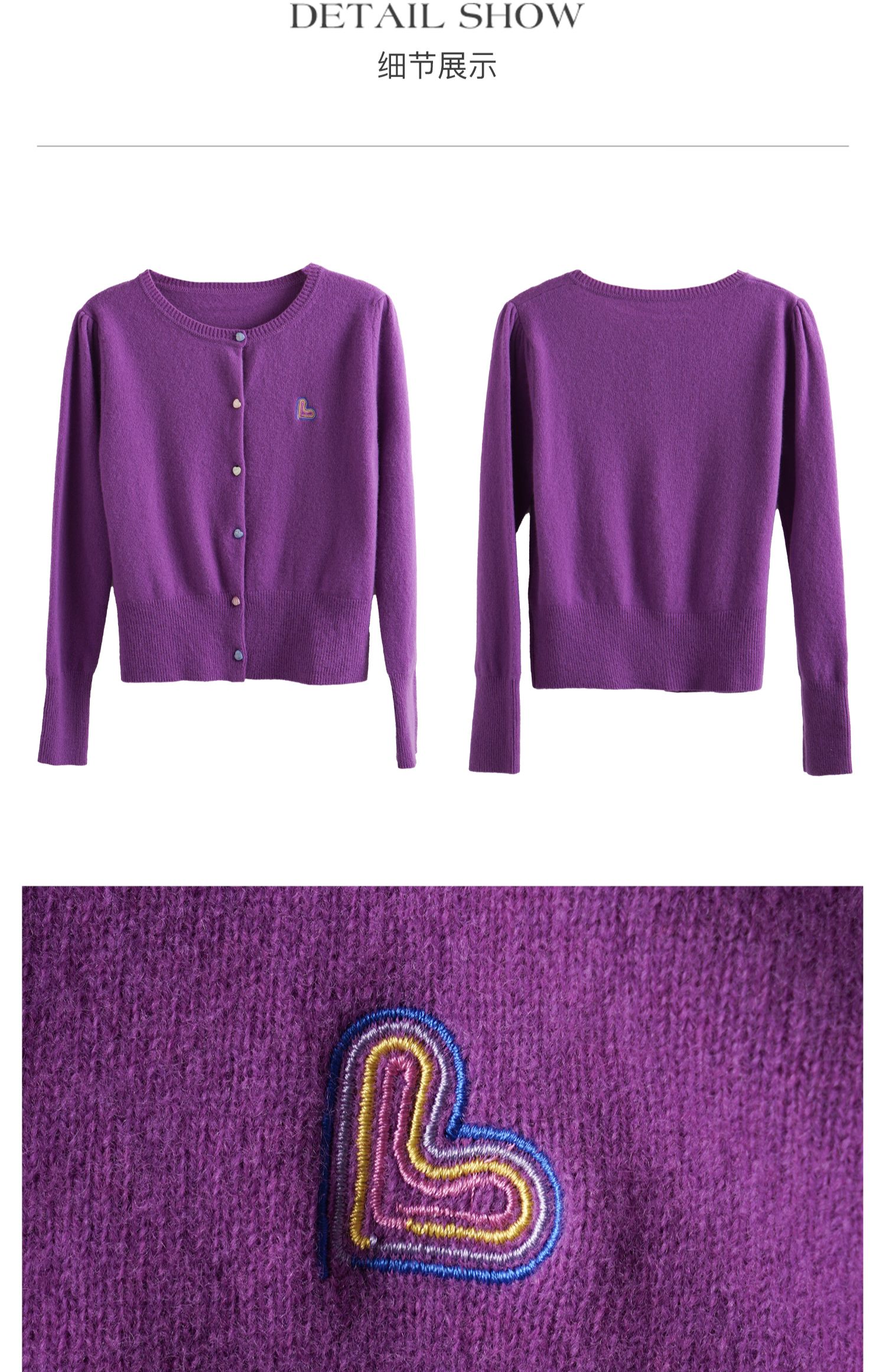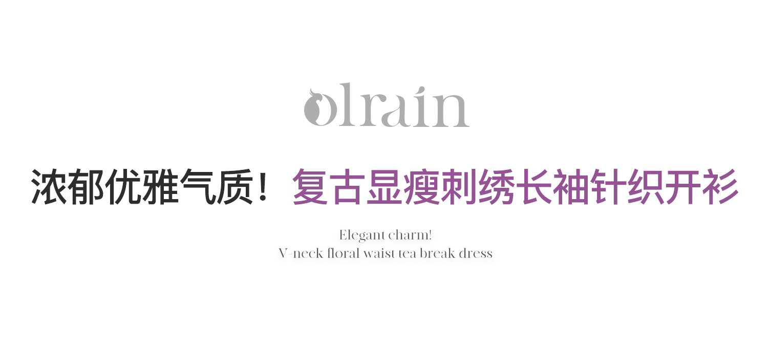 OLrain欧芮儿法式紫色针织开衫女早秋2024年新款复古刺绣显瘦上衣