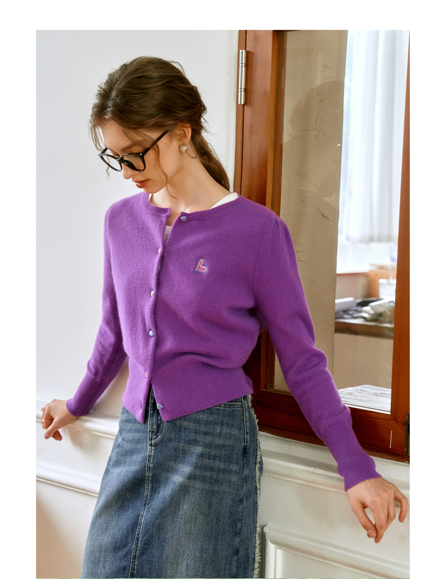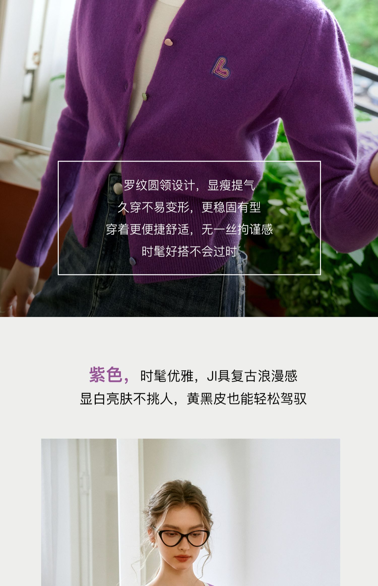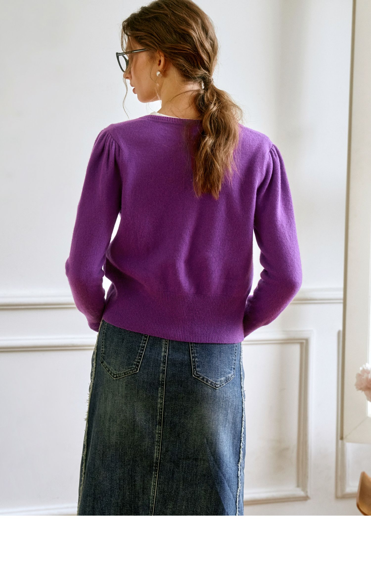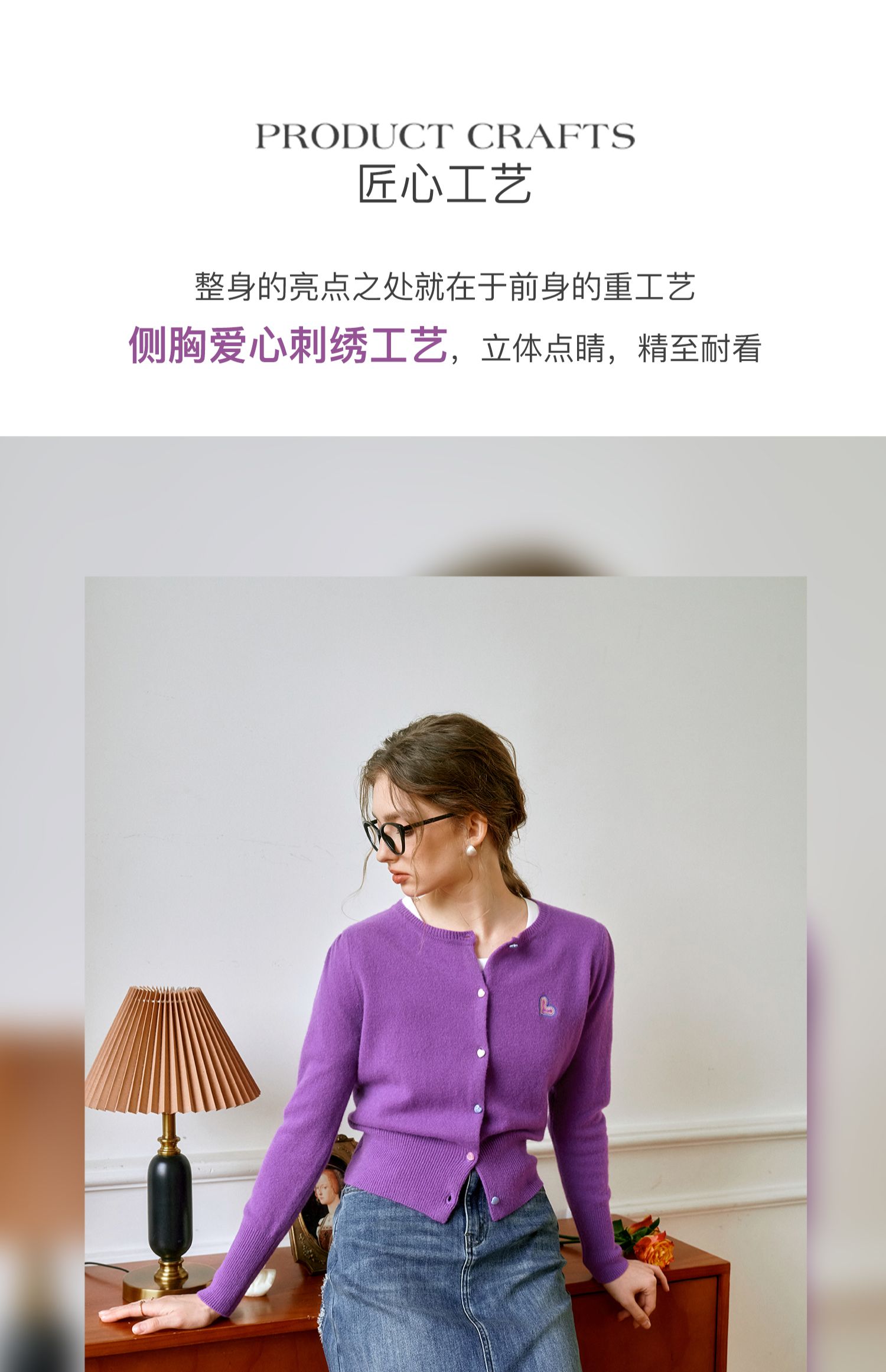 OLrain欧芮儿法式紫色针织开衫女早秋2024年新款复古刺绣显瘦上衣