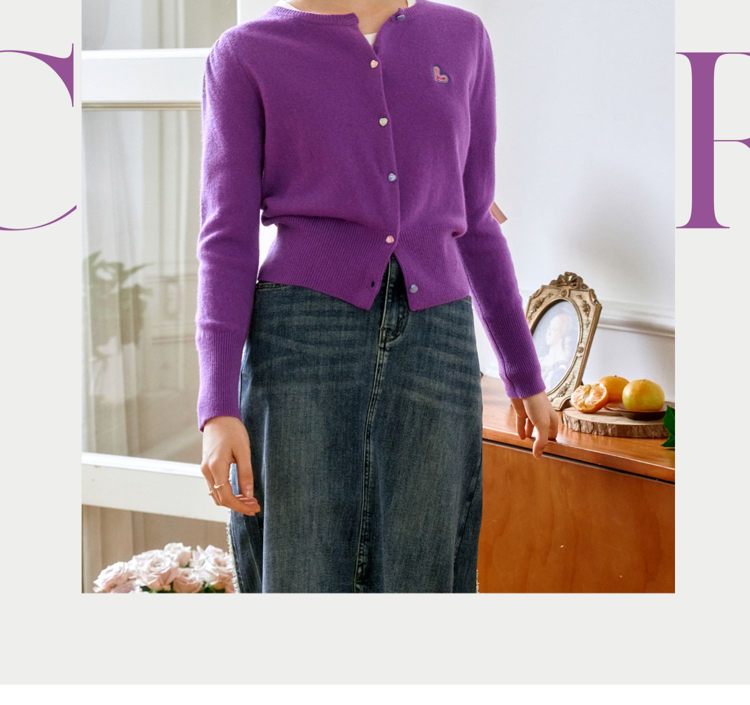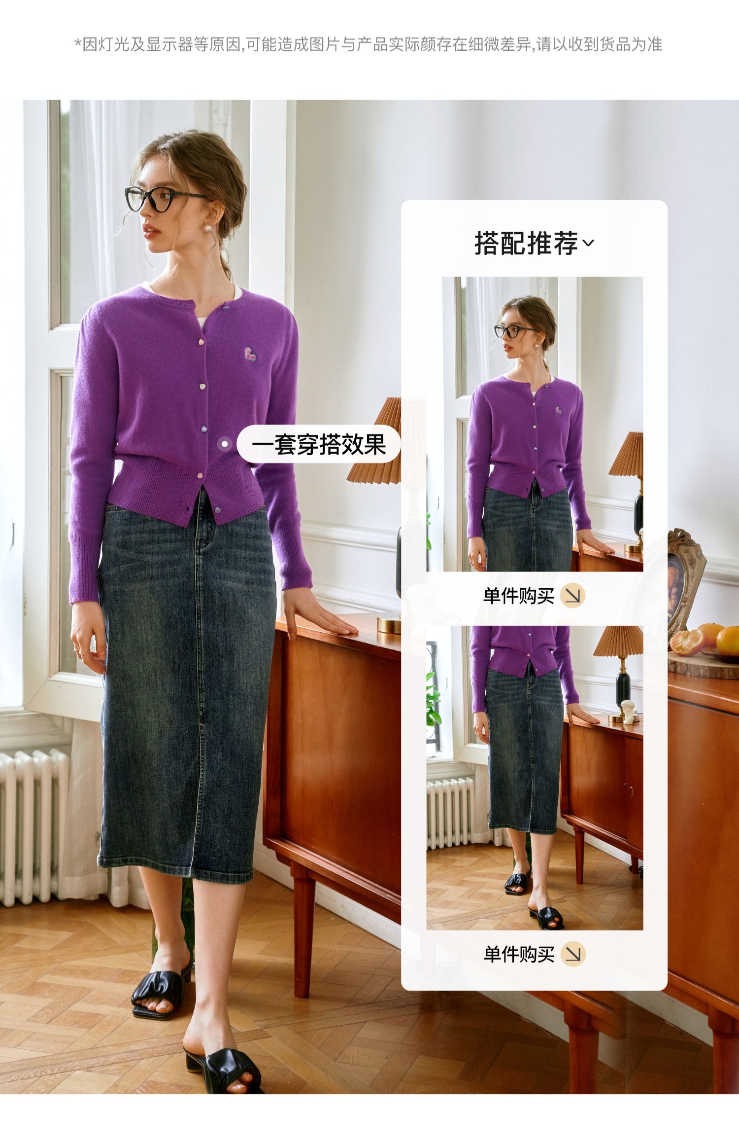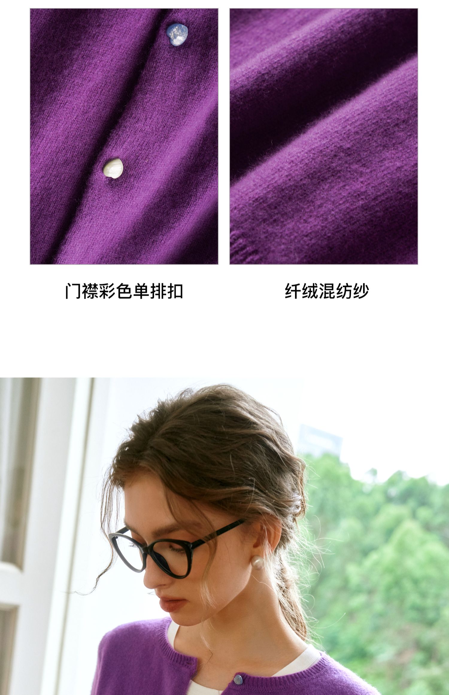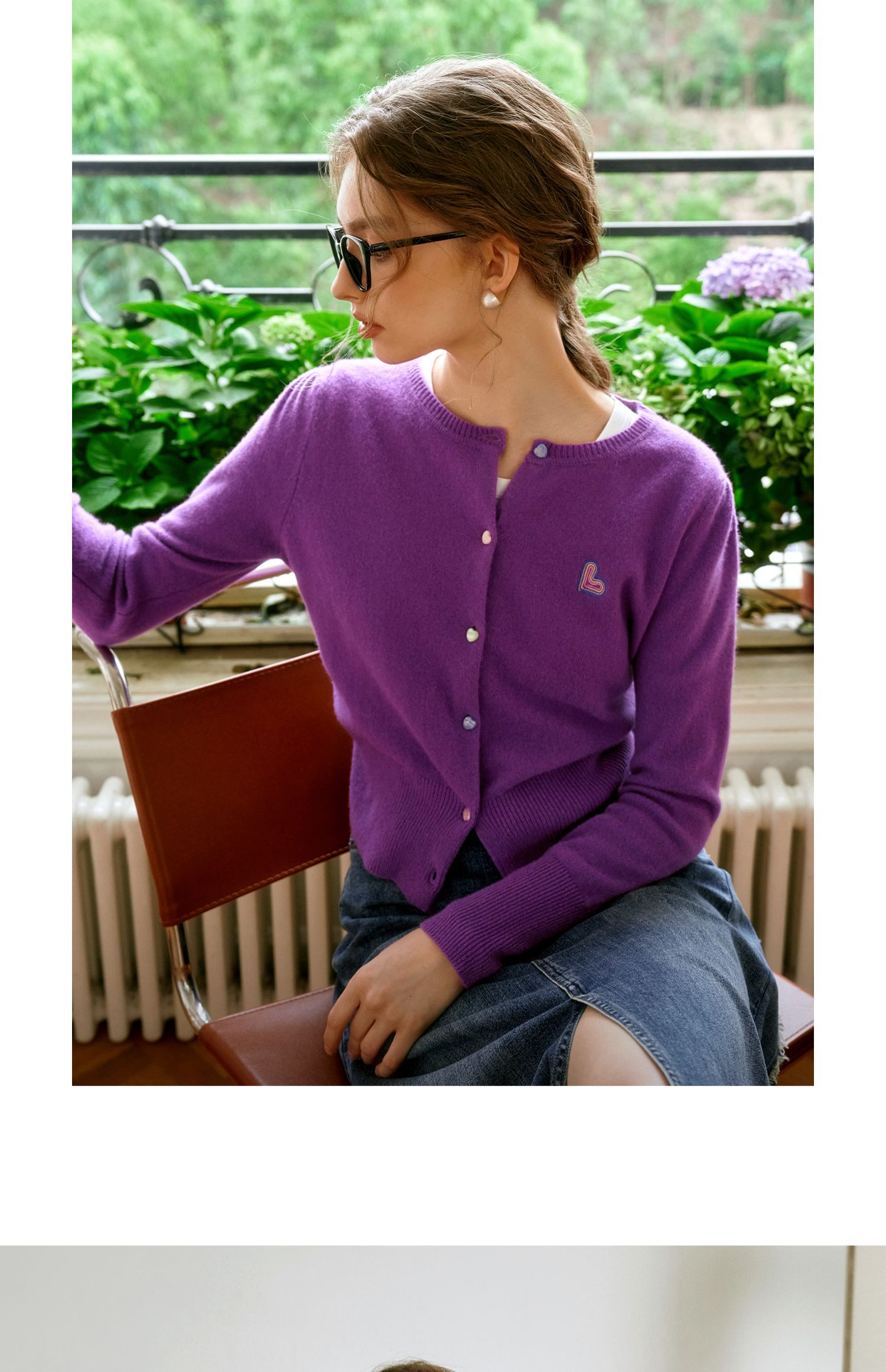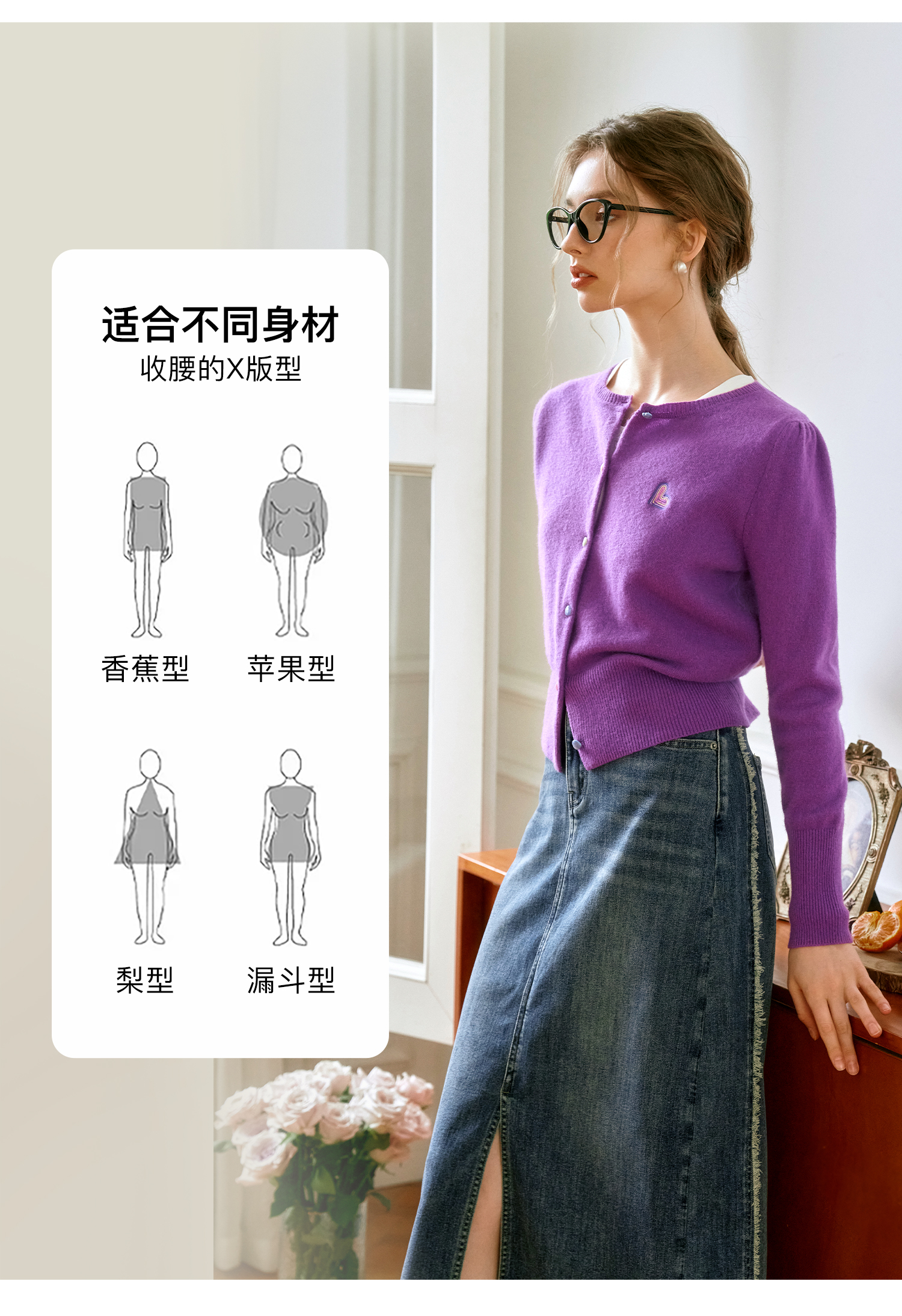 OLrain欧芮儿法式紫色针织开衫女早秋2024年新款复古刺绣显瘦上衣