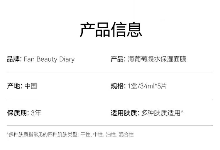 FanBeautyDiary 美黎汎海葡萄凝水保湿面膜(5片装)