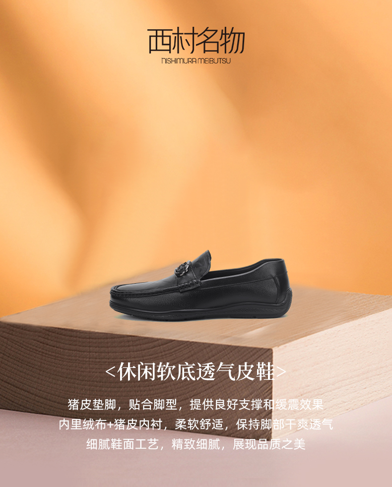 西村名物2024夏季新品真皮复古软底舒适透气高档中年休闲男士皮鞋X14AW13881