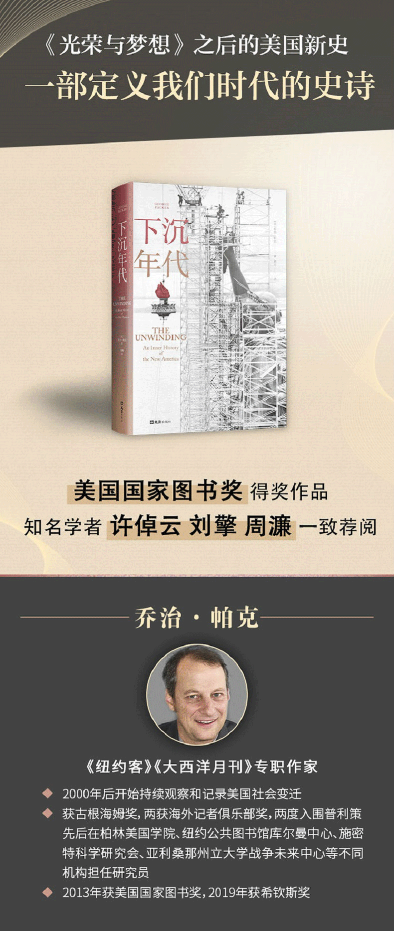 下沉年代 乔治帕克著 还原美国的解体和衰败 写尽美国梦碎三十年 剖解拜登 许倬云 刘擎 周濂 获美国图书奖 社会分析