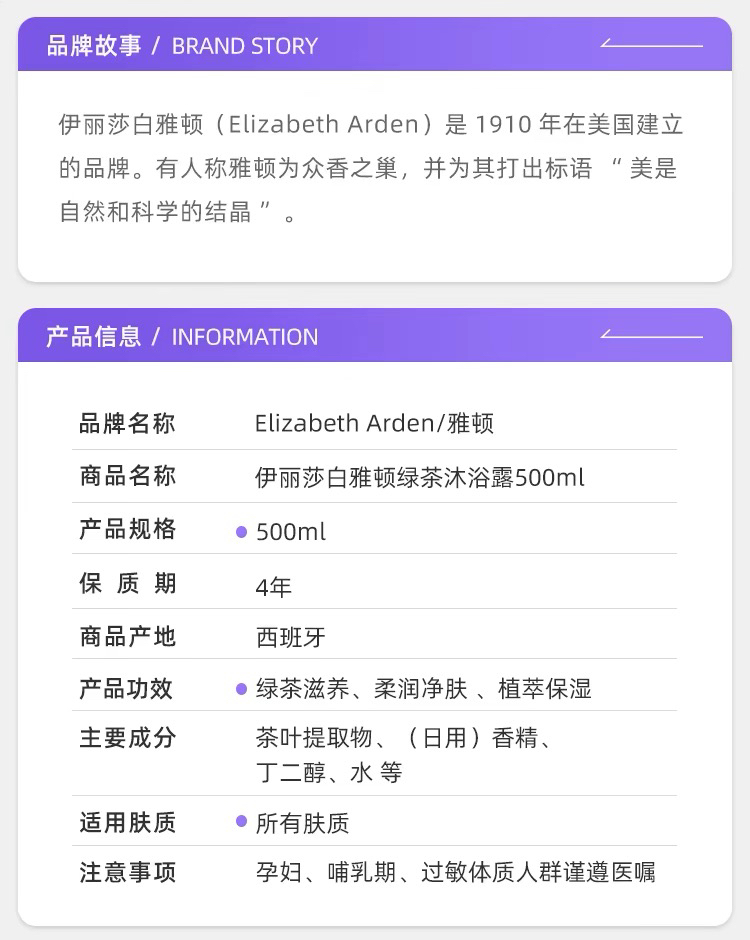 【海关保税直发】雅顿绿茶沐浴露Elizabeth Arden/500ml 绿茶清香-会员5折