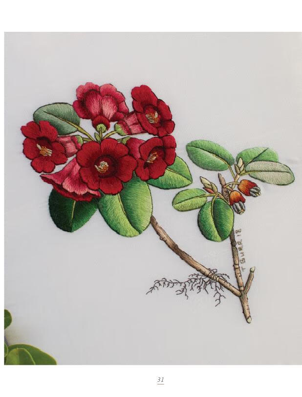 刺绣名师崔西的这本新书正是依据邱园的植物学插图创作的11个刺绣项目,它一如既往展现了崔西精妙绝伦的针绘刺绣技艺,作品既有惟妙惟肖的生动鲜活气息,又融入了当代刺绣设计艺术的时尚感。针绘刺绣,形象地说即以针线作画的技巧,绣针如同画笔一般神奇。崔西尤其擅长于运用针绘刺绣的代表性针法——长短针绣来表现细微阴影和柔和的油画色彩效果,她也在这本书中由浅入深、循序渐进地给学习者提供了这方面的专业技术指导。