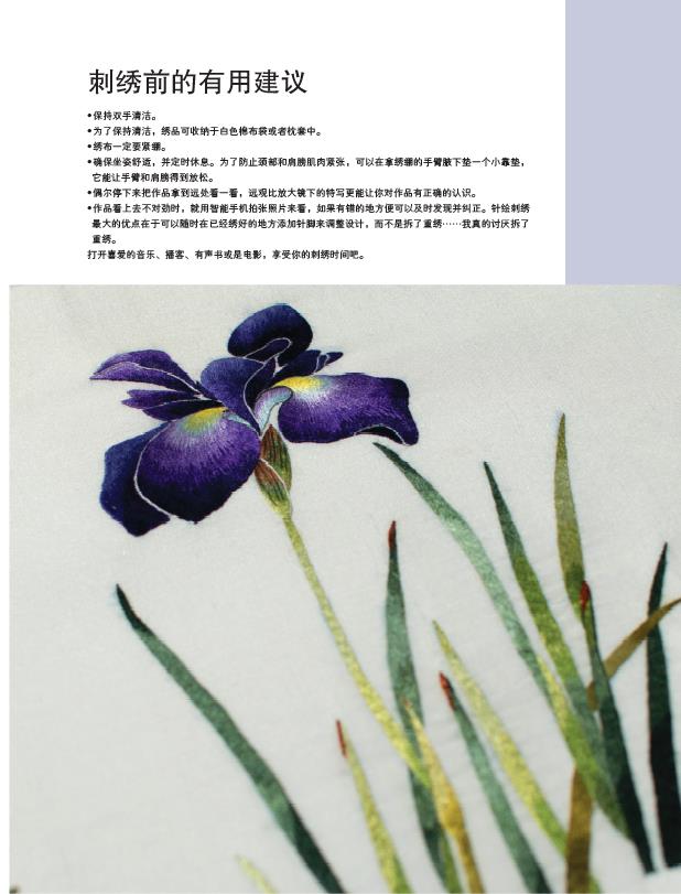 如果你发现本书中一些内容和以往的书里略有不同,那是因为我一直在学习新方法、尝试新材料。我希望书中的练习能激发鼓励你对刺绣的热爱,希望你的刺绣作品能带给你和后来者无尽的快乐。