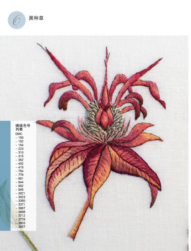 本书是植物艺术的刺绣版本。如果你熟悉我的作品,就会知道我是自学成才,自成风格。我本身也有着丰富的经验,可以指导任何人学习我的刺绣风格。如果你是初学者,别紧张,动手去绣吧!刺绣并不难,只要你稍加练习,很快就能上手。重要的是,要允许做自己,不要做自己的差评师。刺绣不是千篇一律的,如果你的作品和我的或者你邻居的不太一样,没关系!只要你自己喜欢,就是成功了——希望你能享受自由刺绣的过程,不要纠结成品的外观。