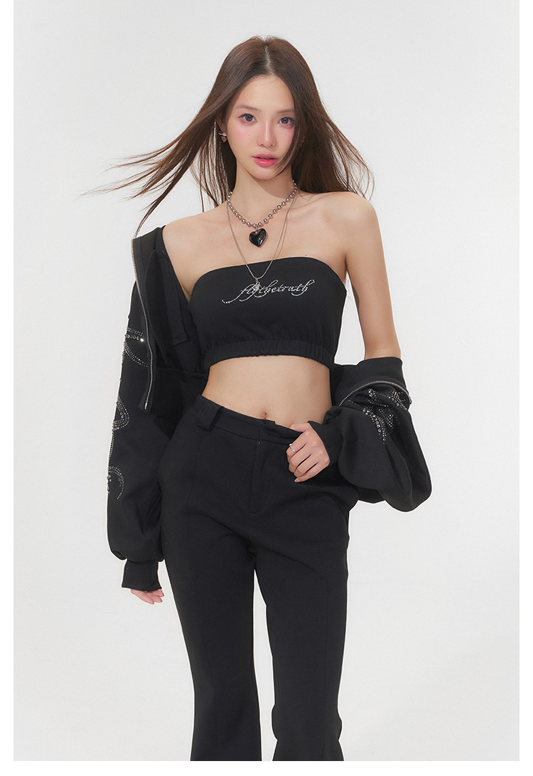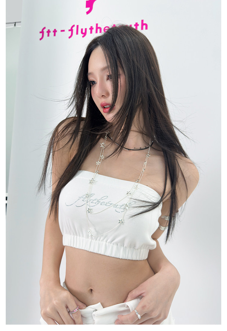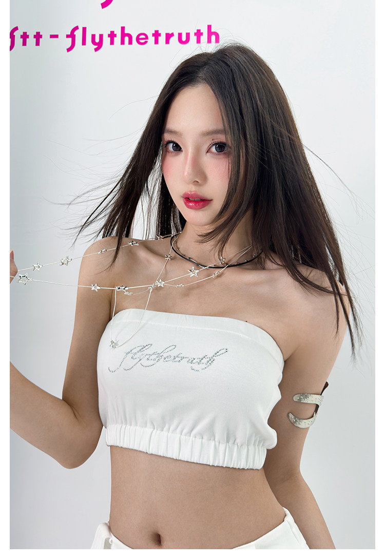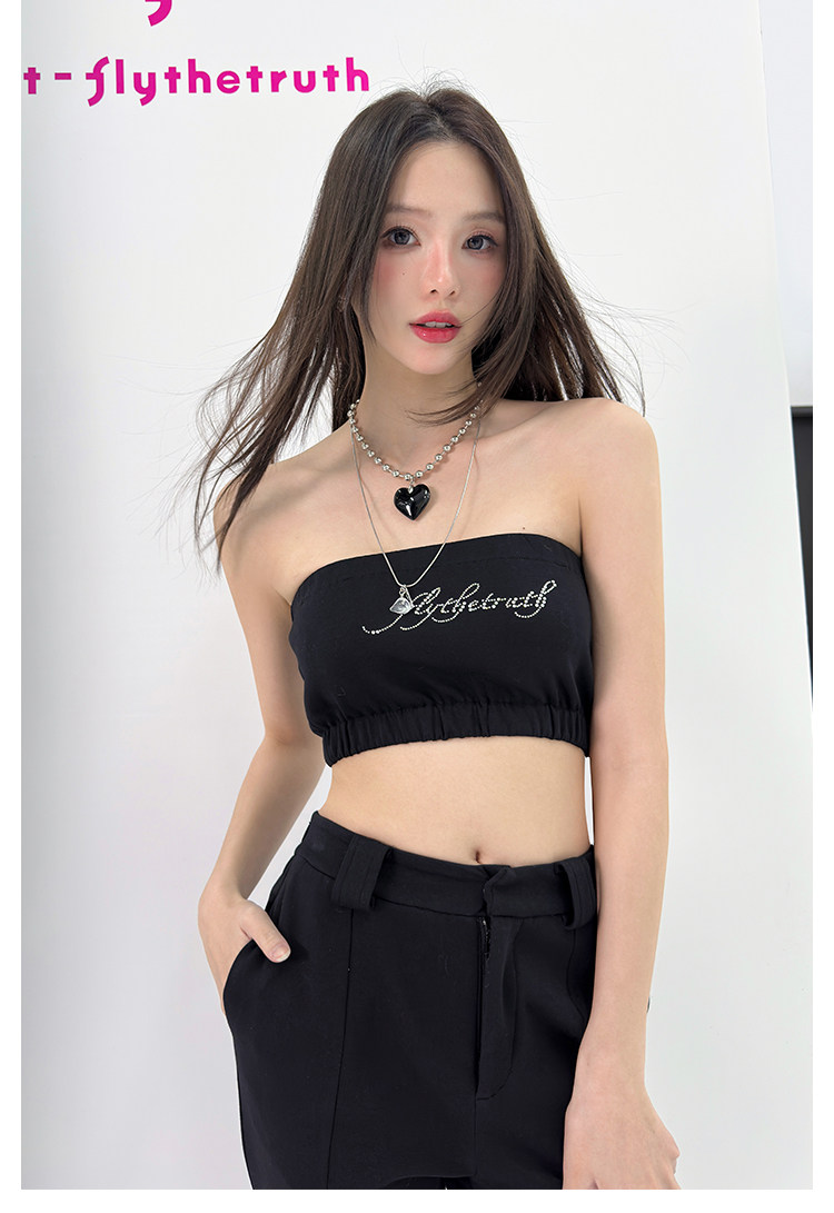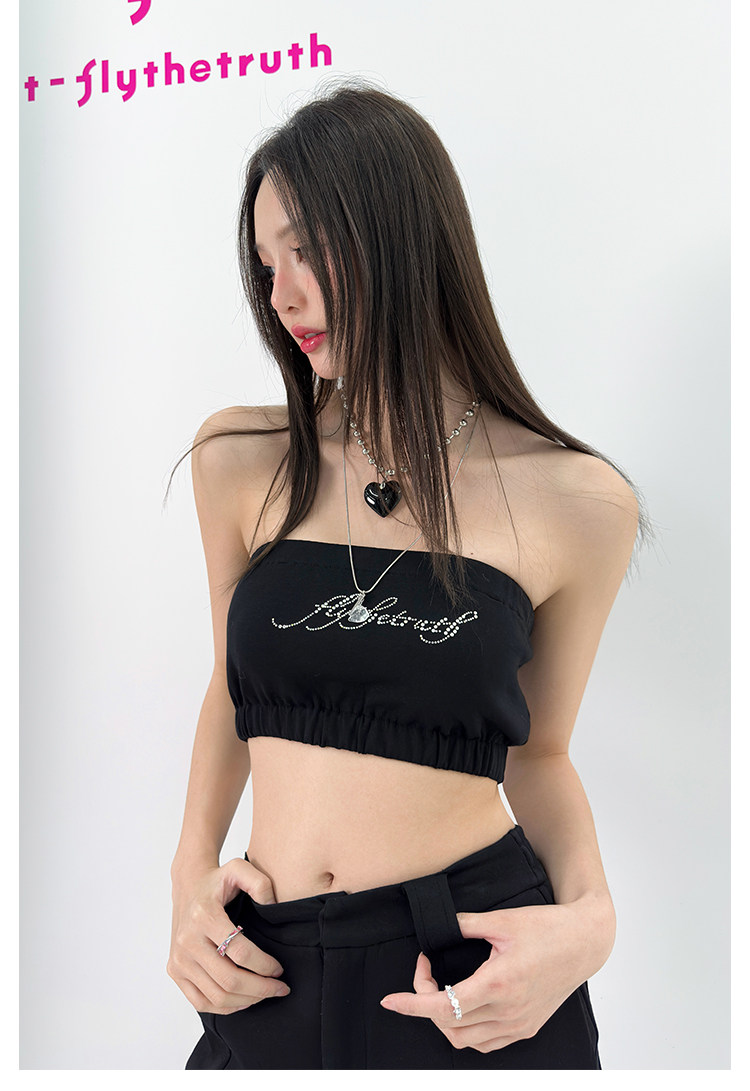 FTT FlyTheTruth『行走荷尔蒙』 辣妹烫钻抹胸女秋无肩带无袖上衣