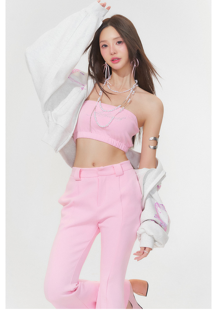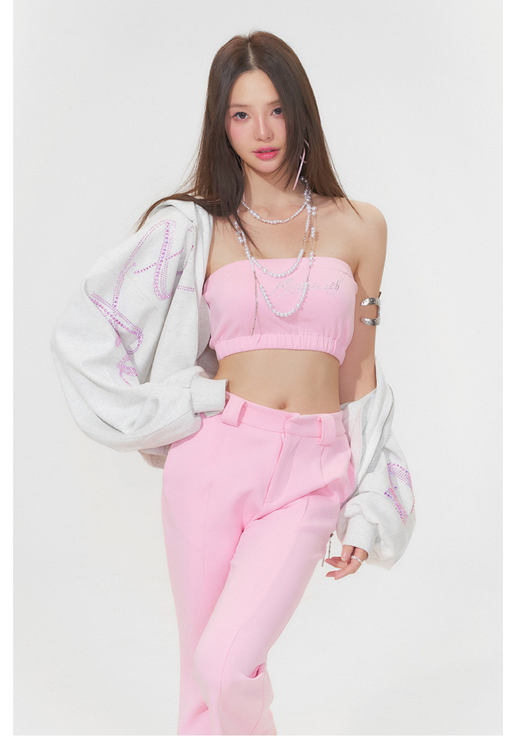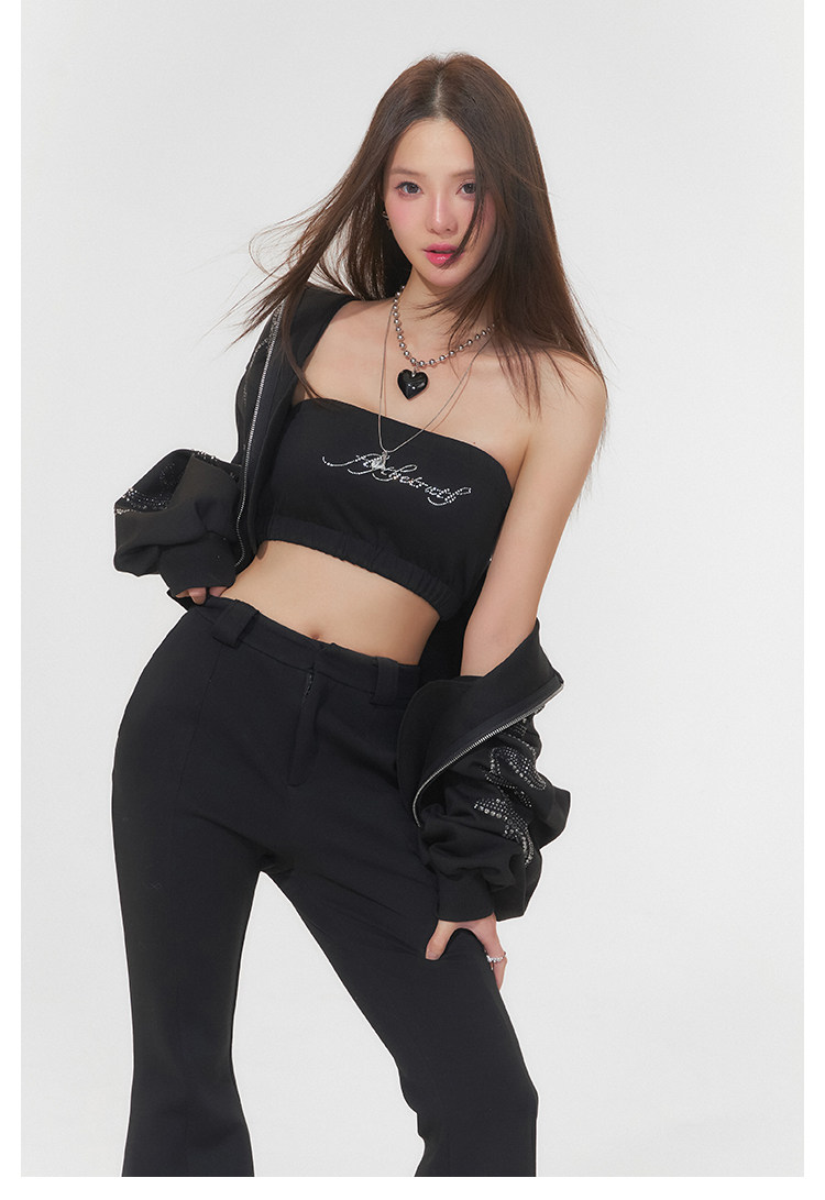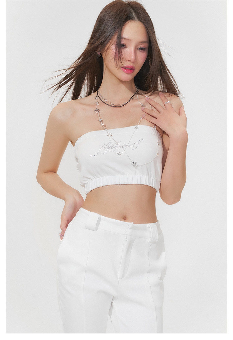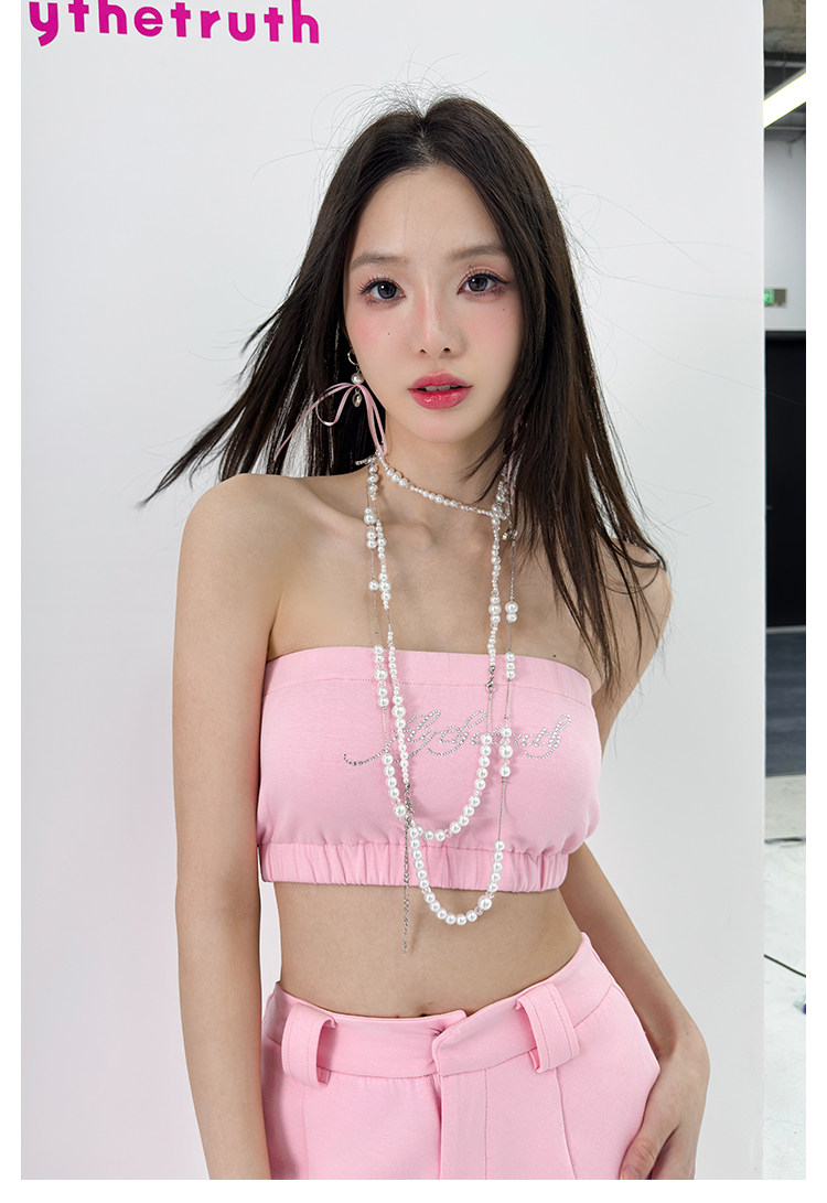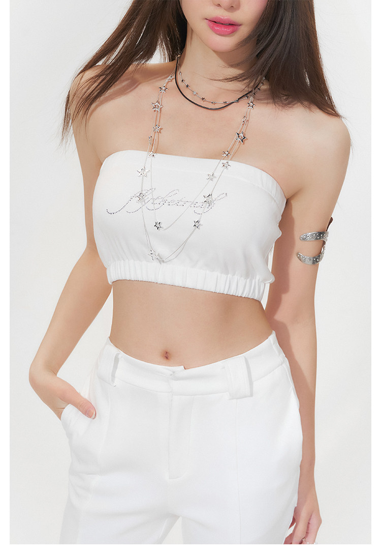 FTT FlyTheTruth『行走荷尔蒙』 辣妹烫钻抹胸女秋无肩带无袖上衣