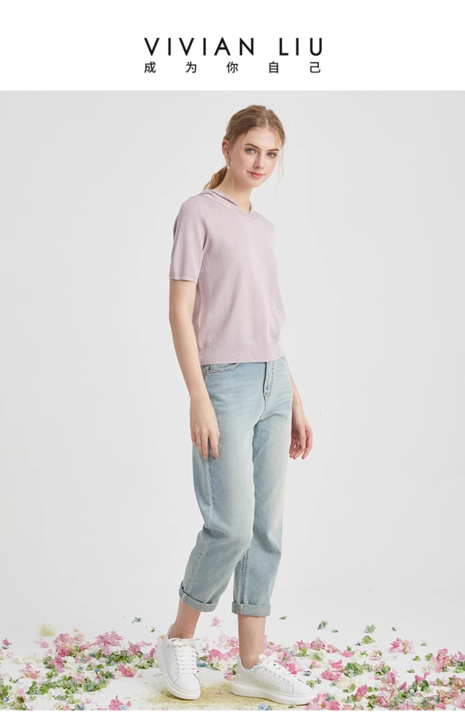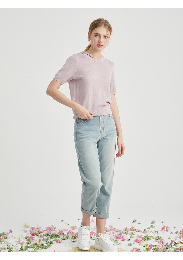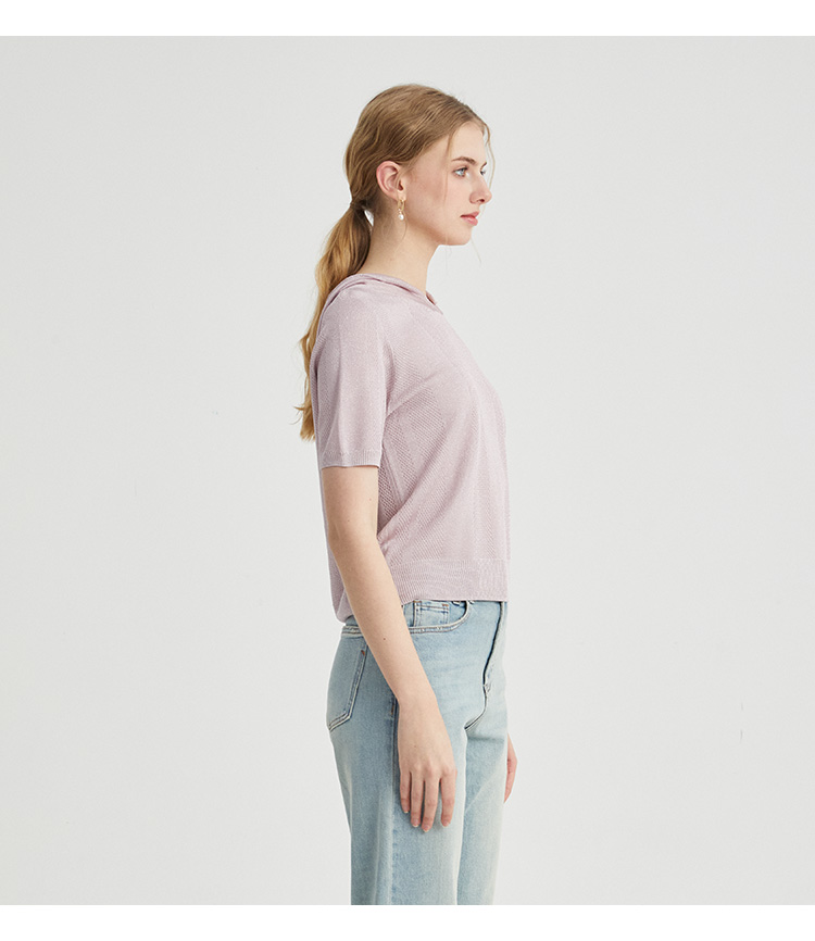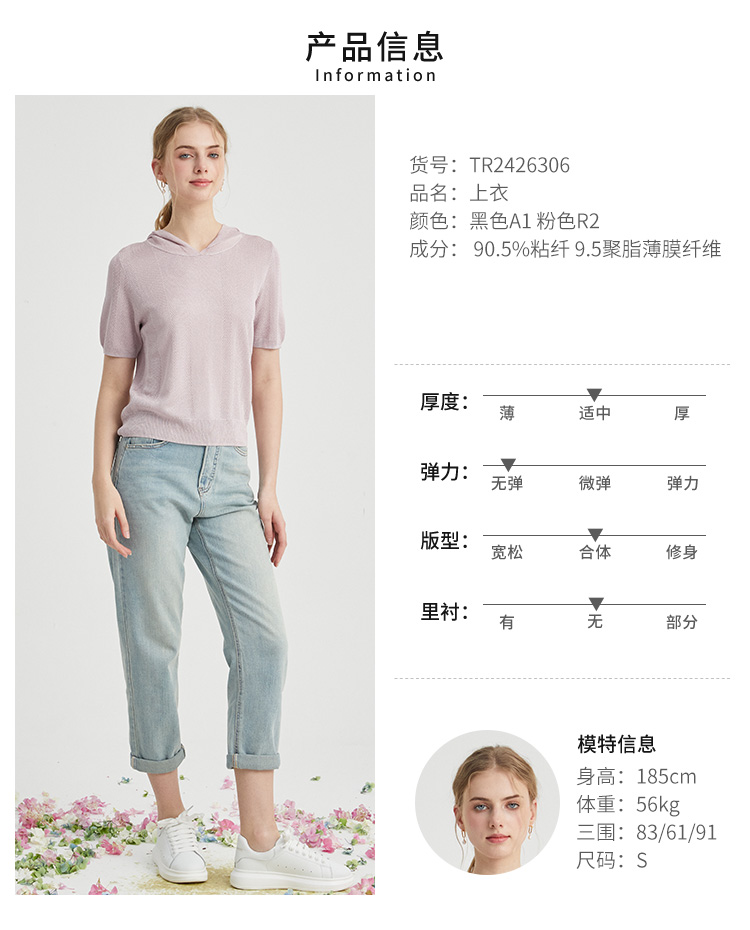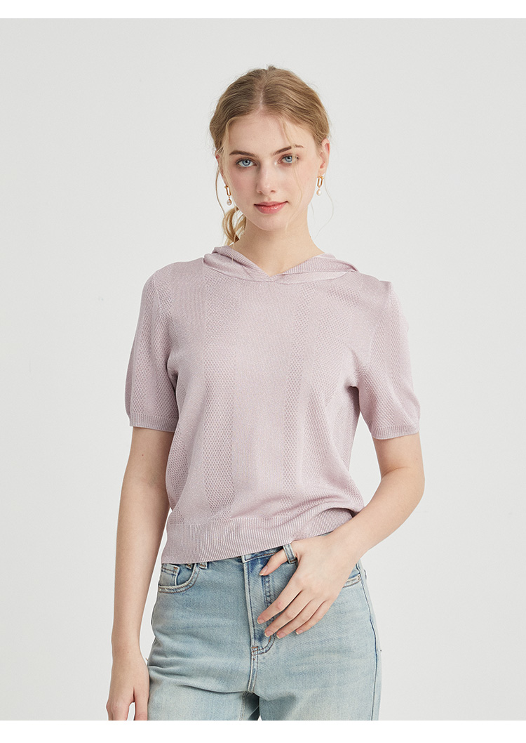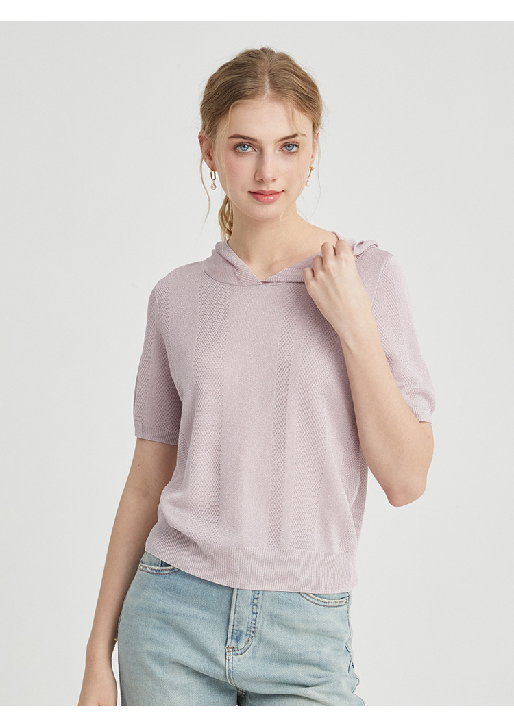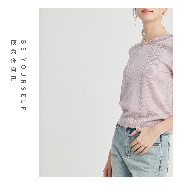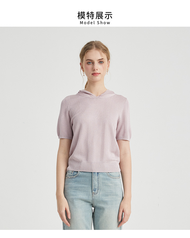 VIVIAN LIU薇薇安刘TR2426306春女装新款连帽短袖休闲时尚针织衫