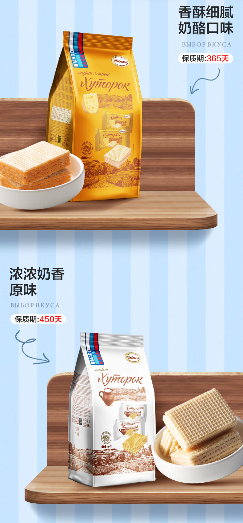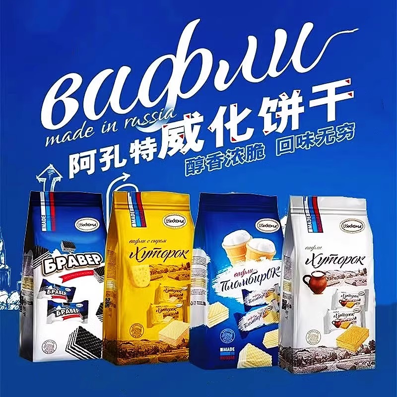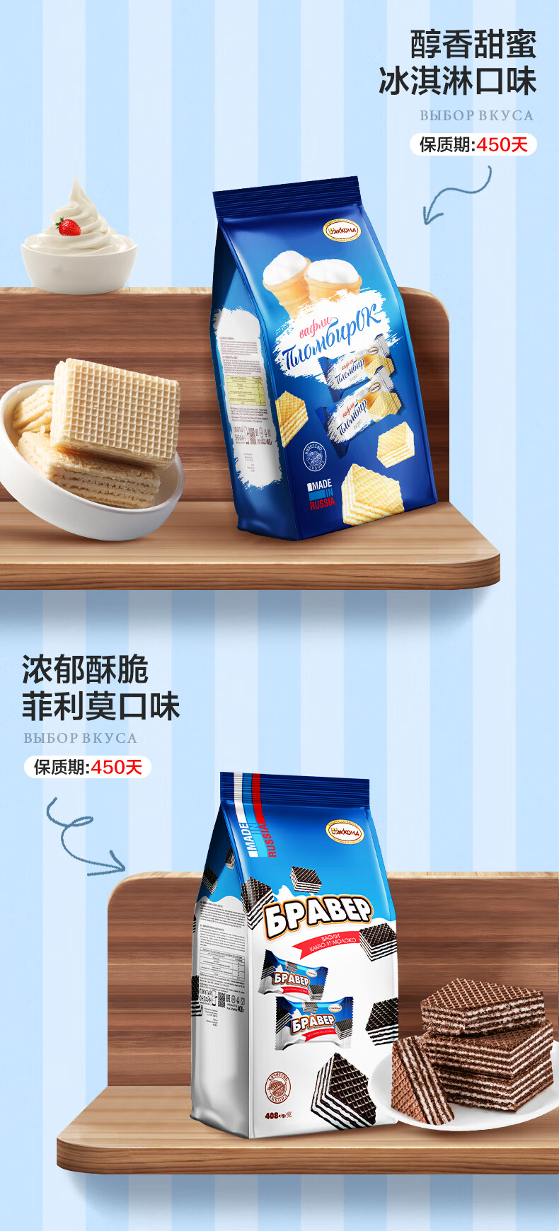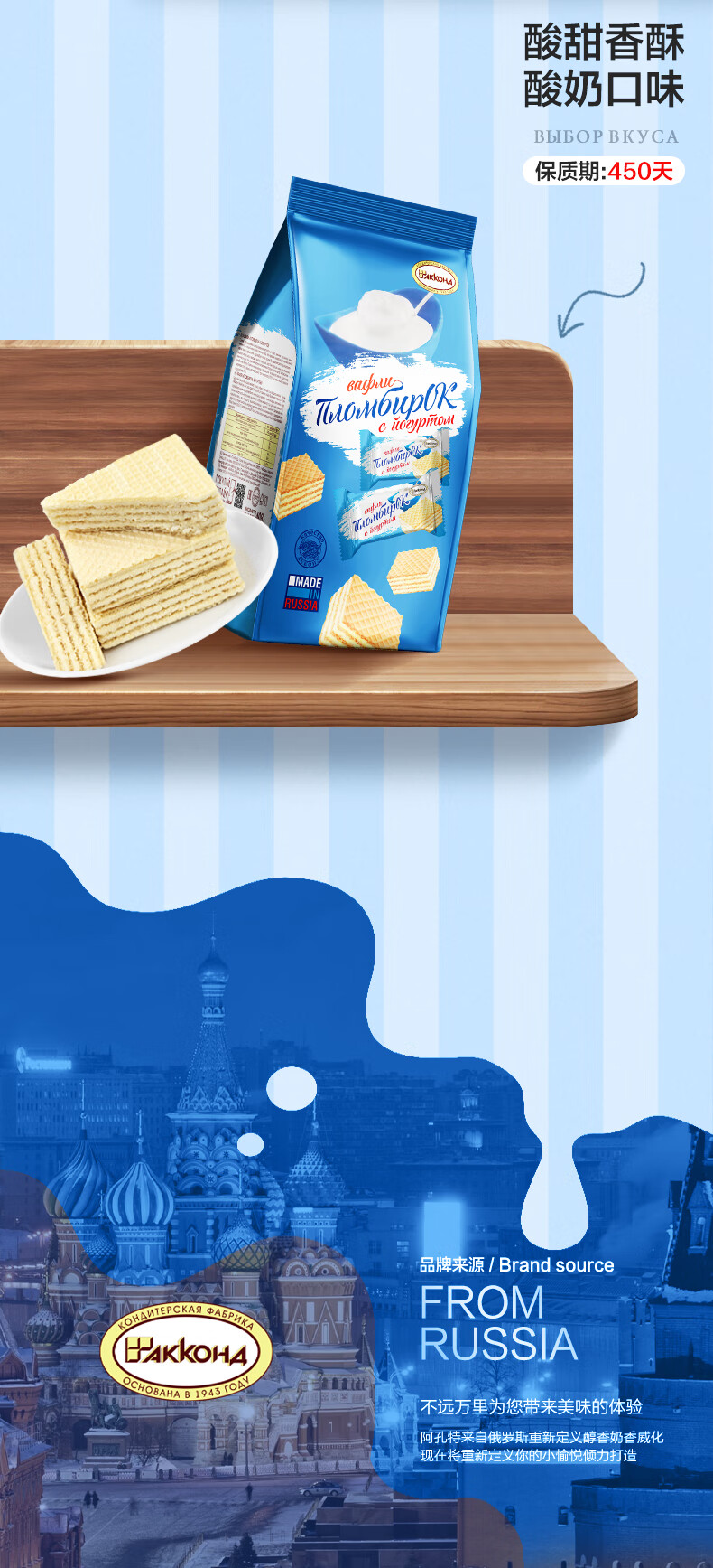 【中欧班列精选】俄罗斯阿孔特小农庄冰淇淋奶酪威化饼软口奶油夹心威化饼干408g/袋 原装进口