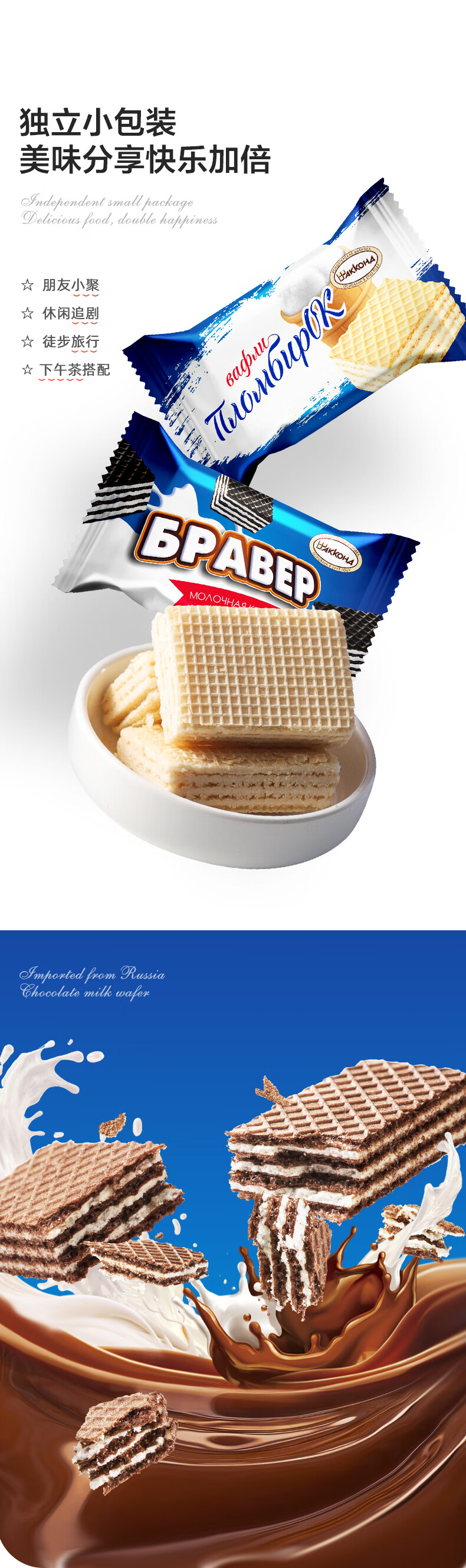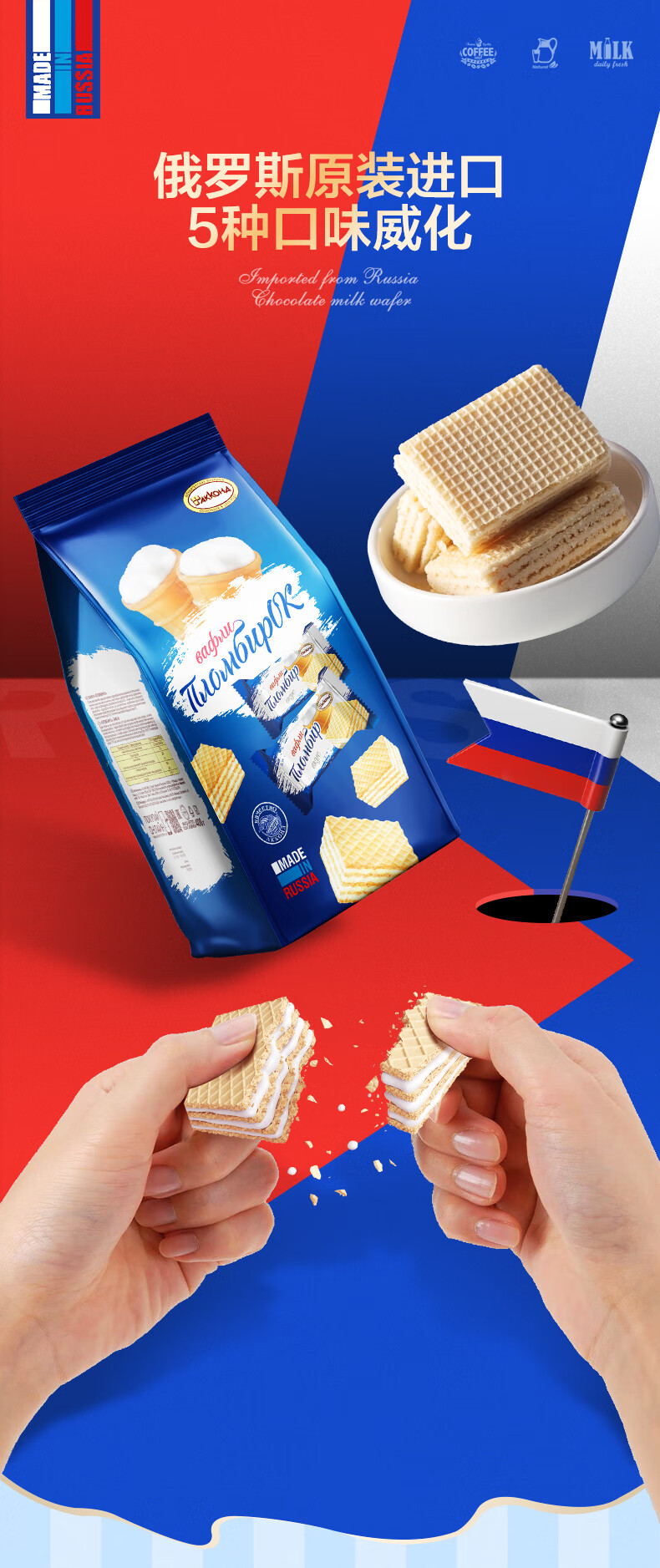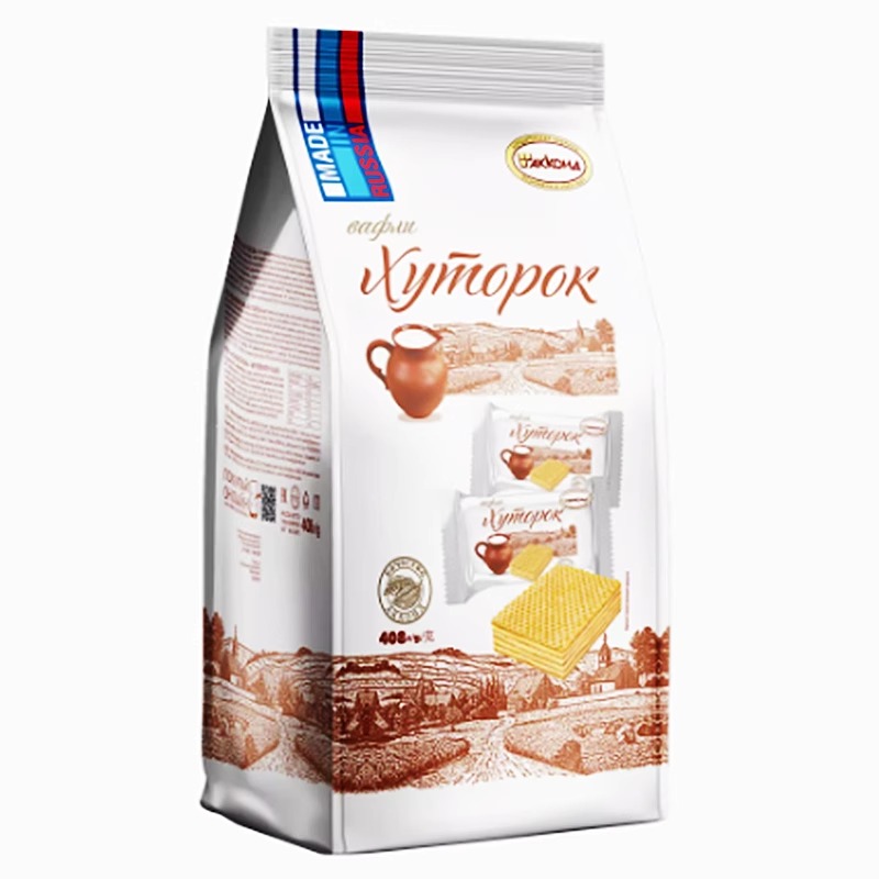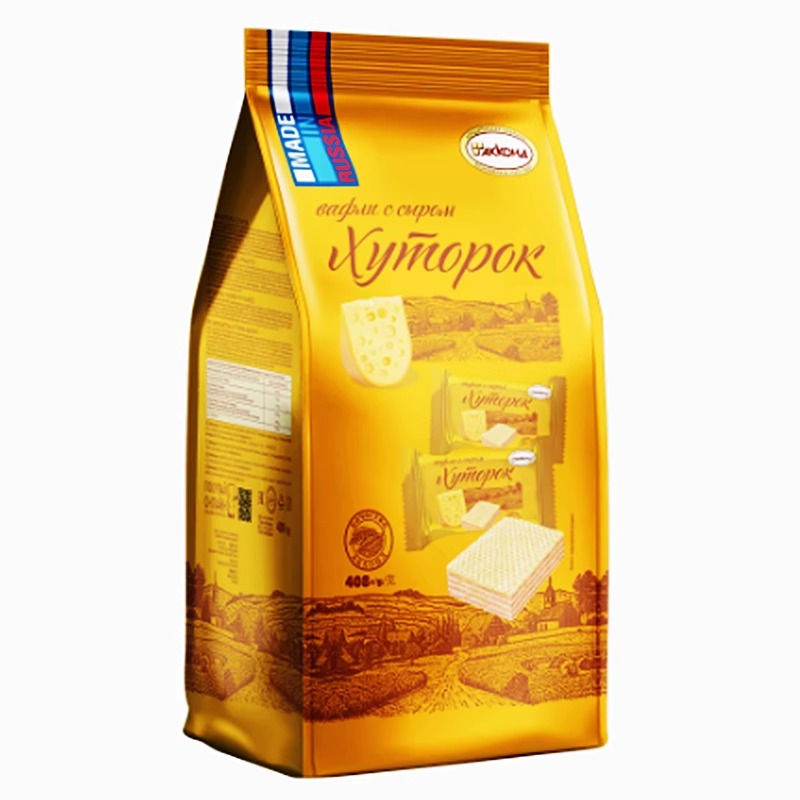 【中欧班列精选】俄罗斯阿孔特小农庄冰淇淋奶酪威化饼软口奶油夹心威化饼干408g/袋 原装进口