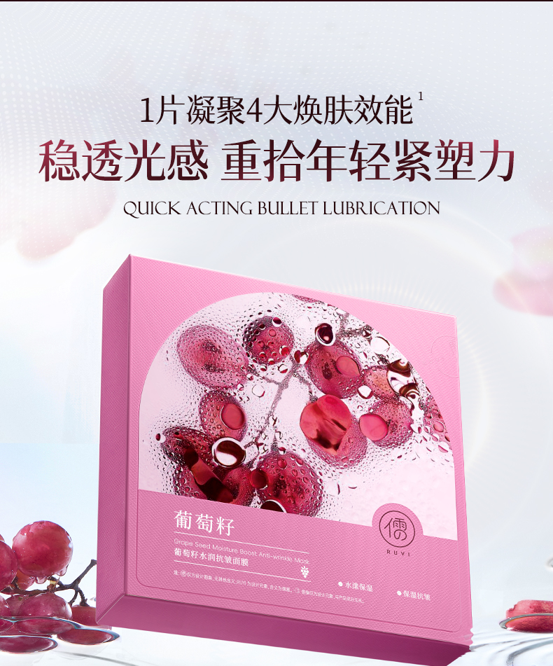 儒意葡萄籽水润抗皱面膜10片/盒 胶原蛋白面膜抗皱紧致抗衰老补水美白|儒意官方商城