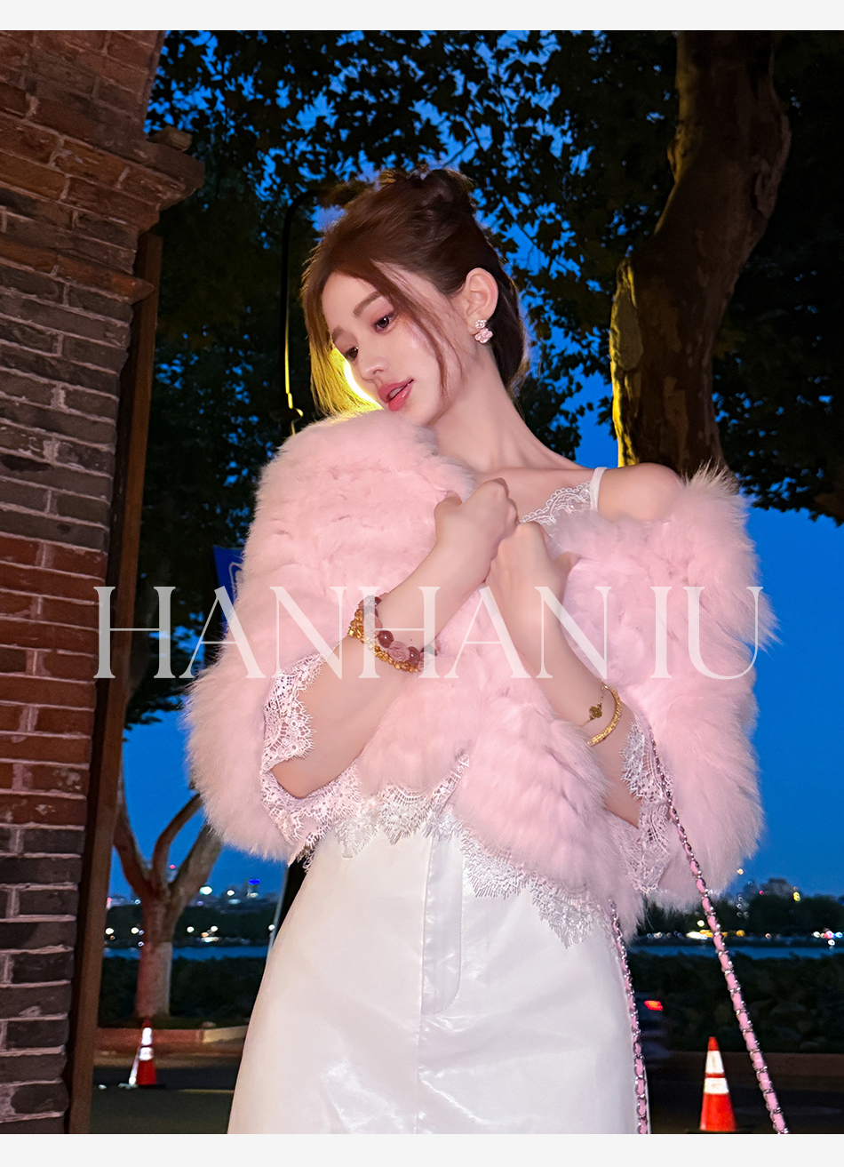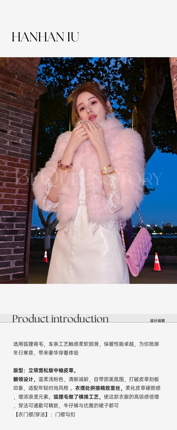 【孤品样衣,不退不换】【英茶千金】时尚优雅清新减龄狐狸腹毛立领宽松版外套秋冬款