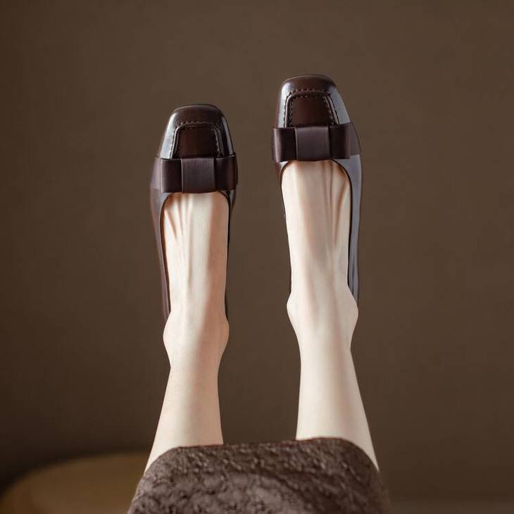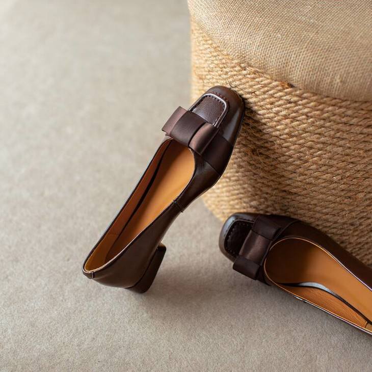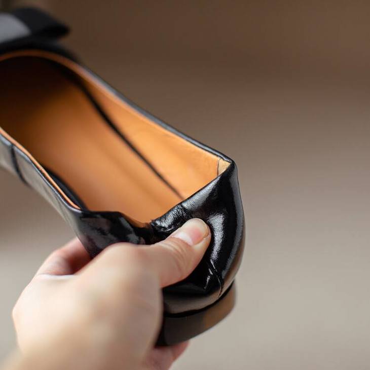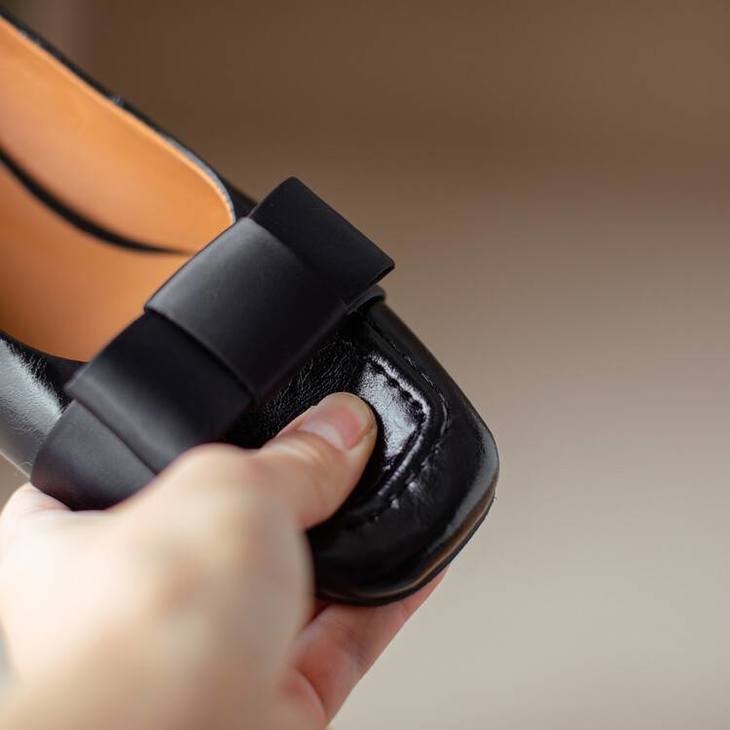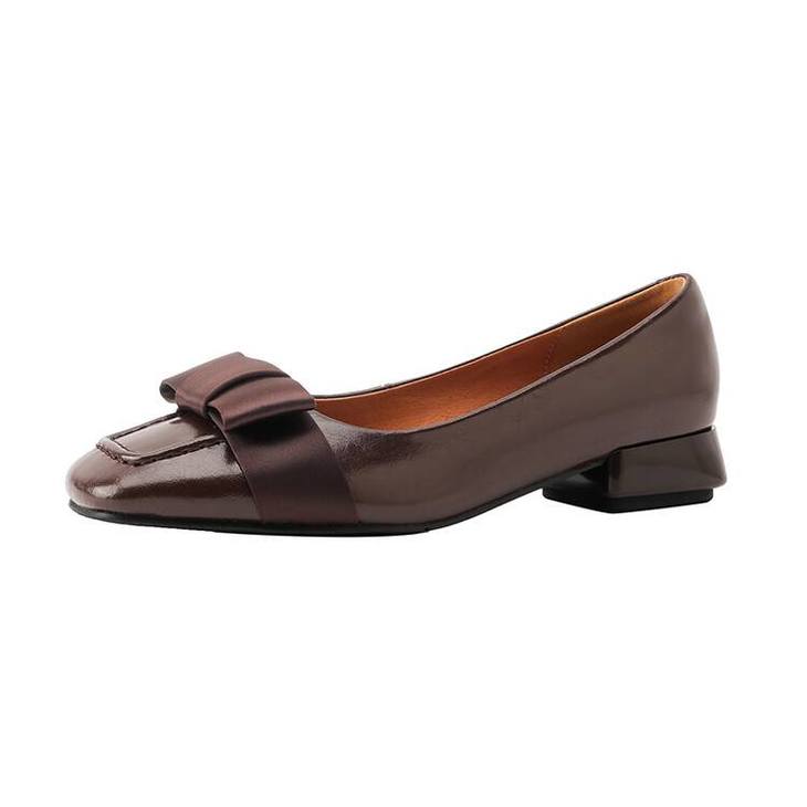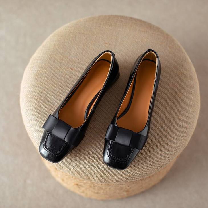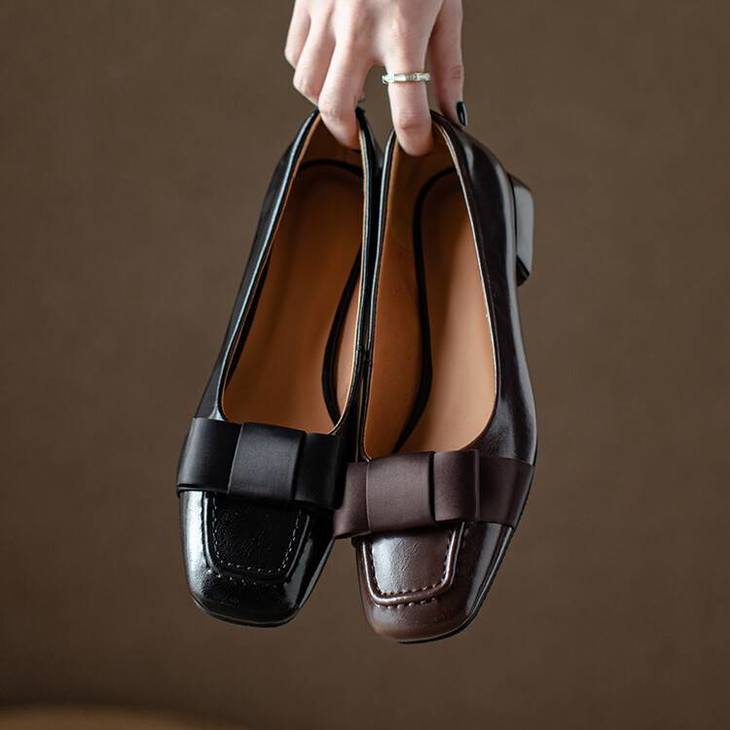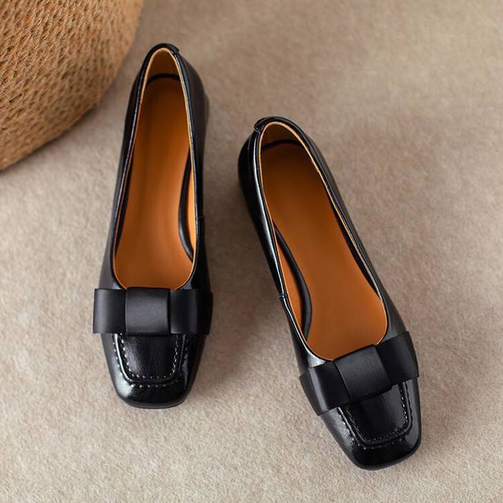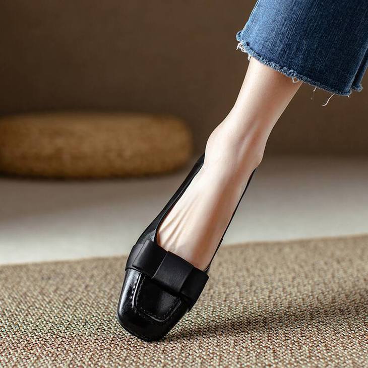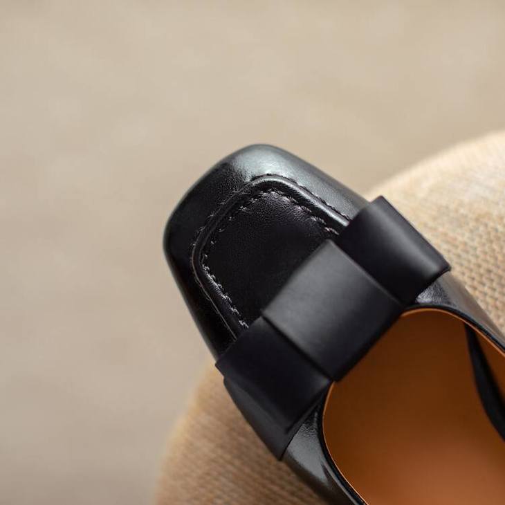 【预售5天】真皮浅口单鞋低跟圆头,蝴蝶结复古平底休闲工作鞋XMN&3272