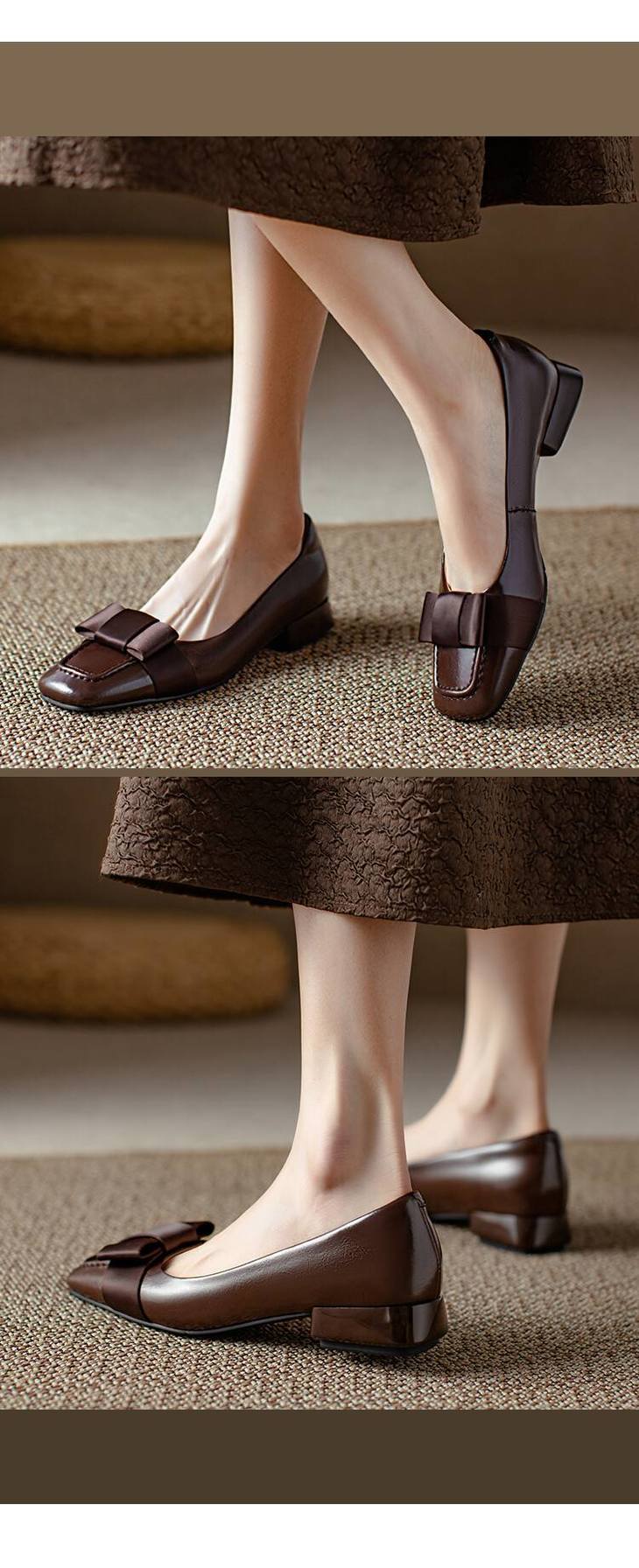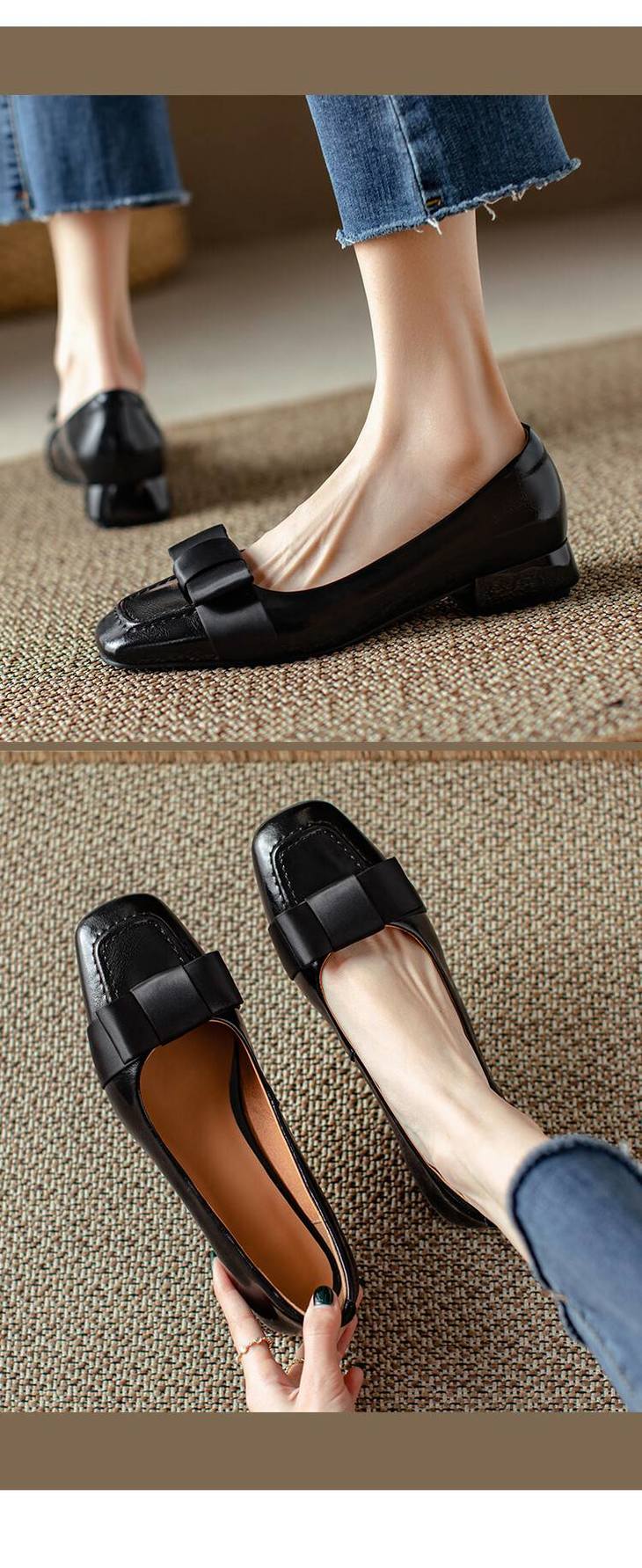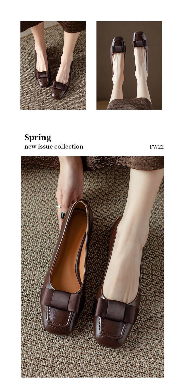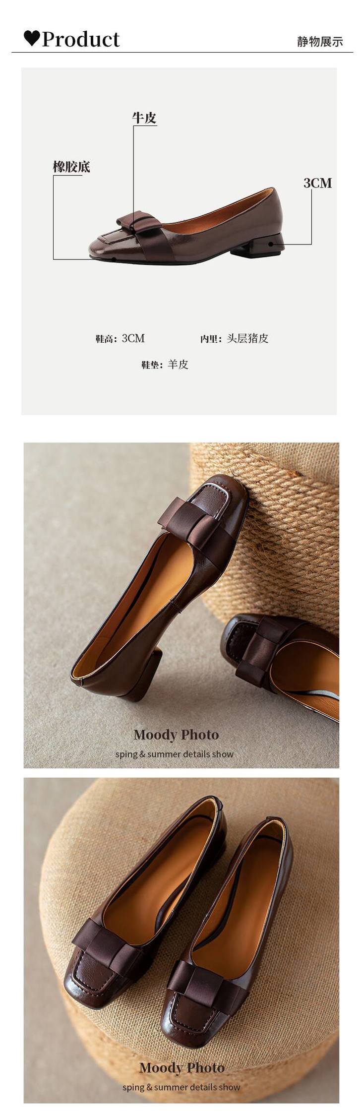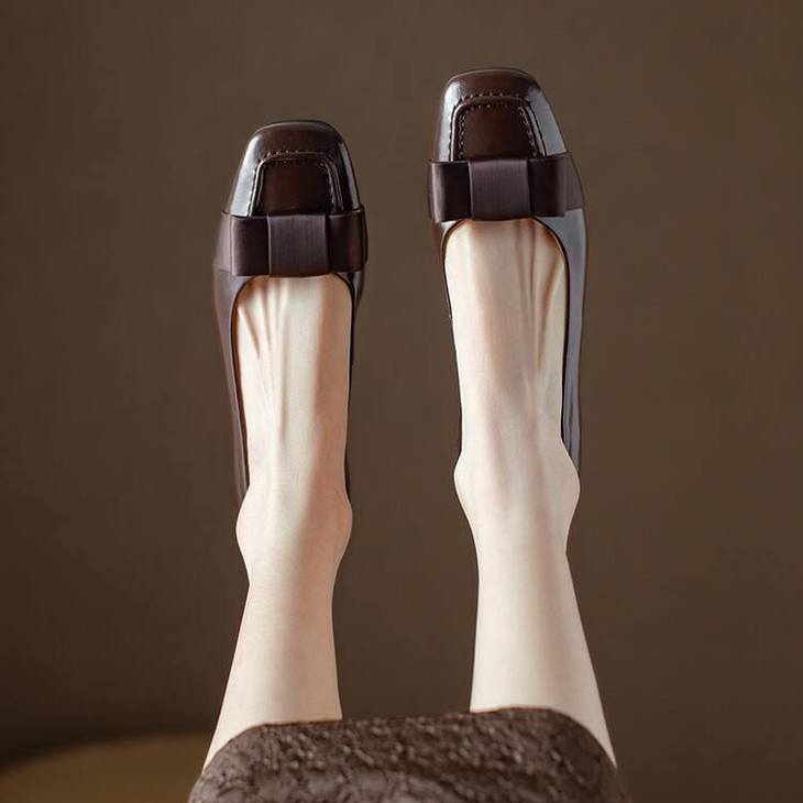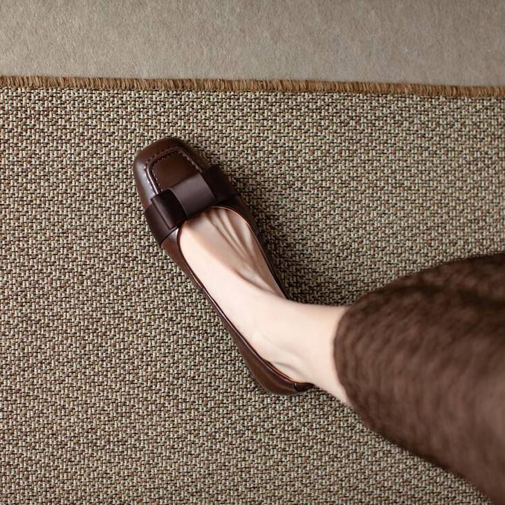【预售5天】真皮浅口单鞋低跟圆头,蝴蝶结复古平底休闲工作鞋XMN&3272