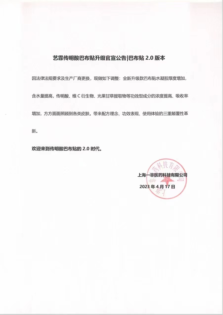 【新版】艺霏传明酸巴布贴脸颊型 14袋共56贴/盒