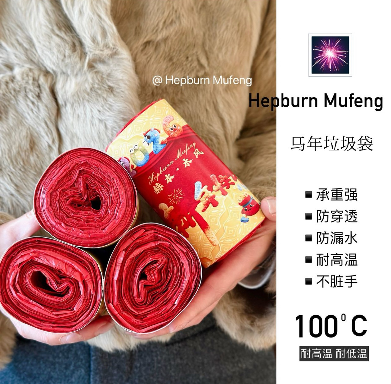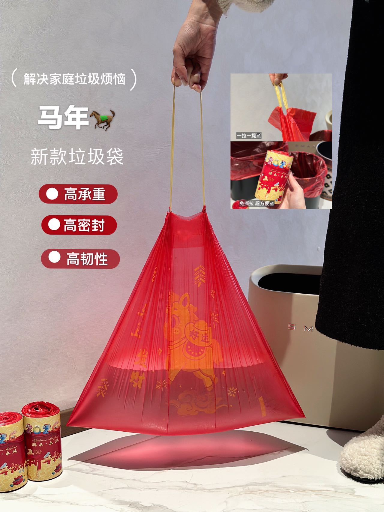 赫本木风新年花香垃圾袋 垃圾袋中的爱马仕巨厚实,到手200个 诚意满满!马年新款垃圾袋