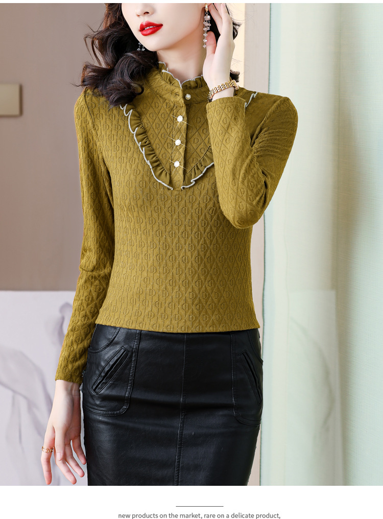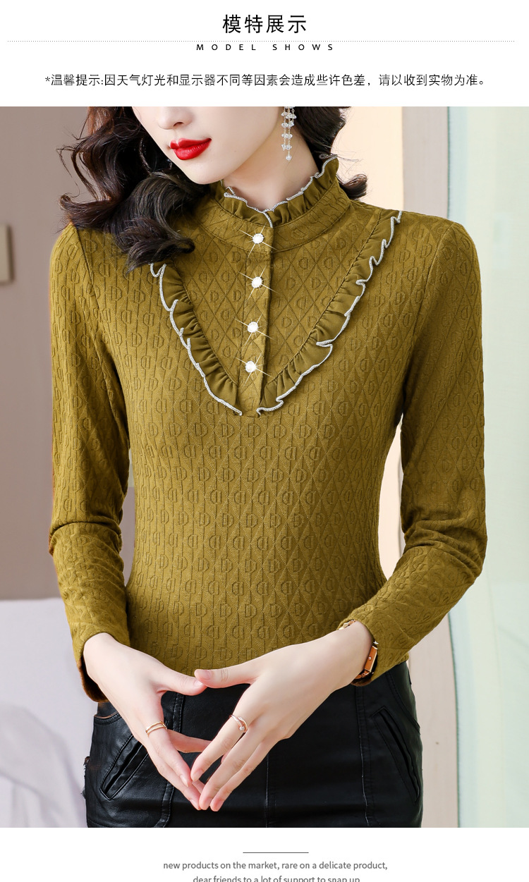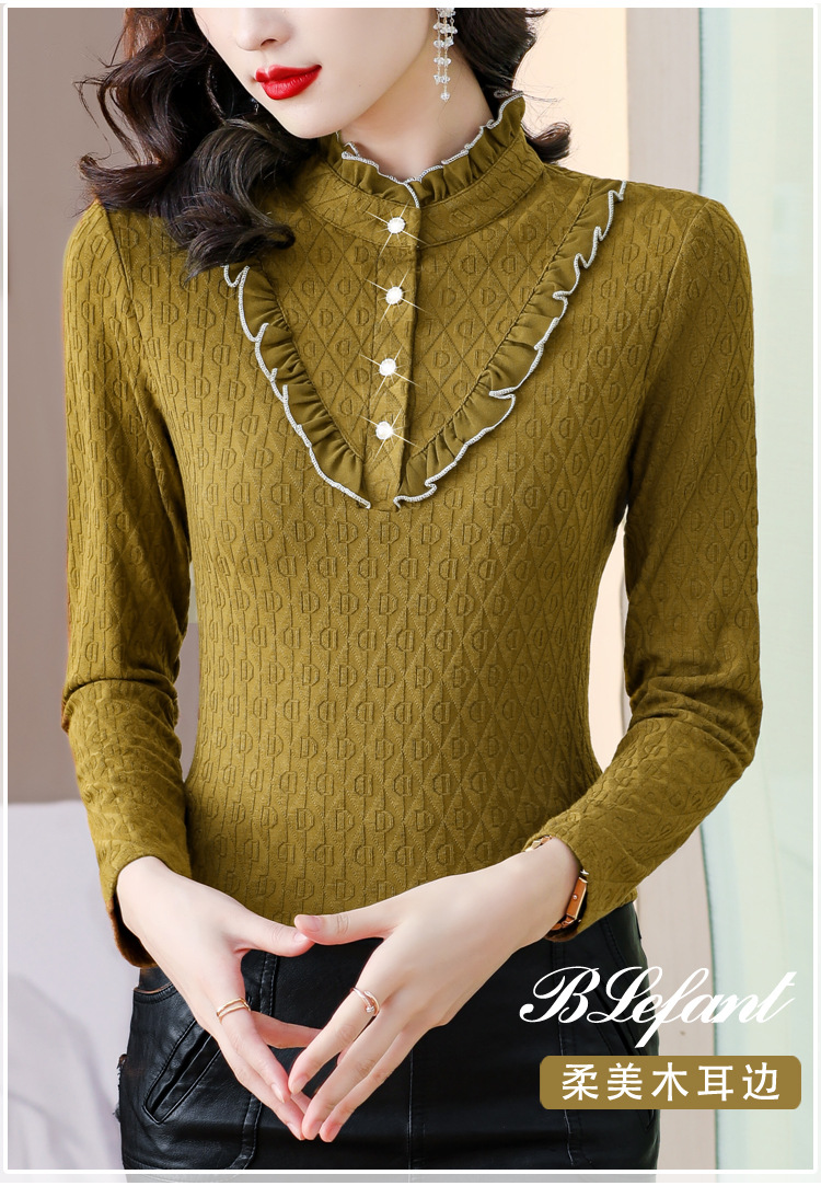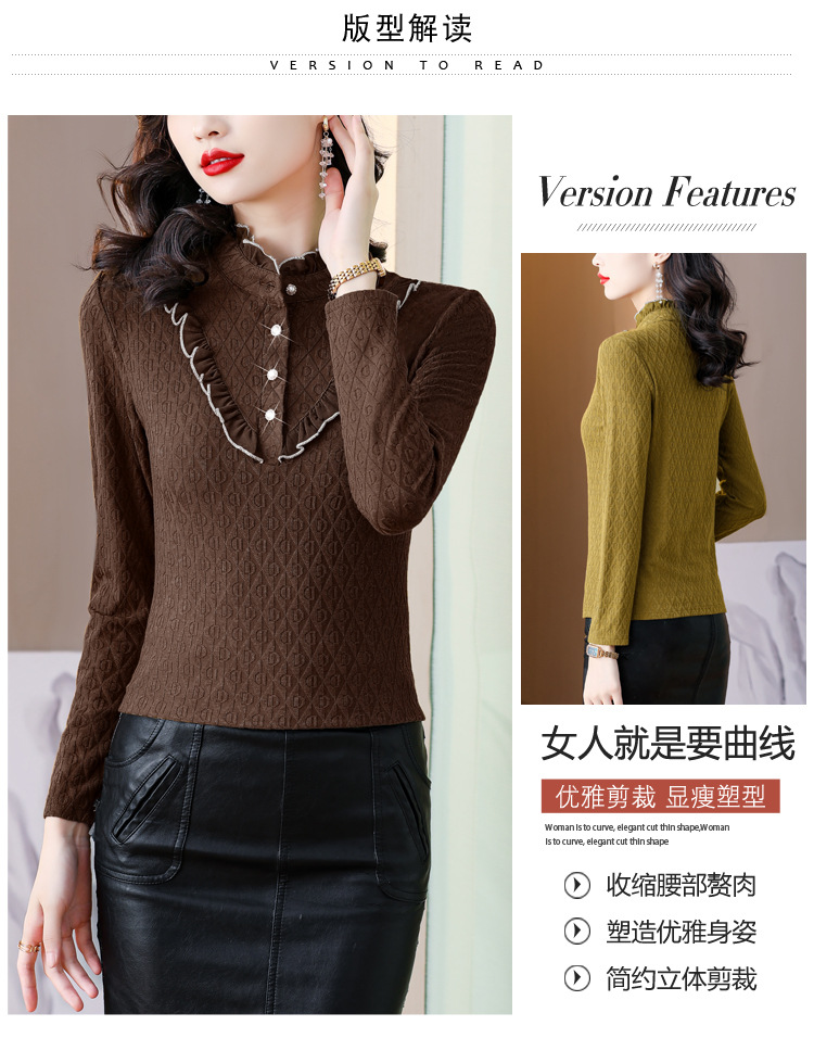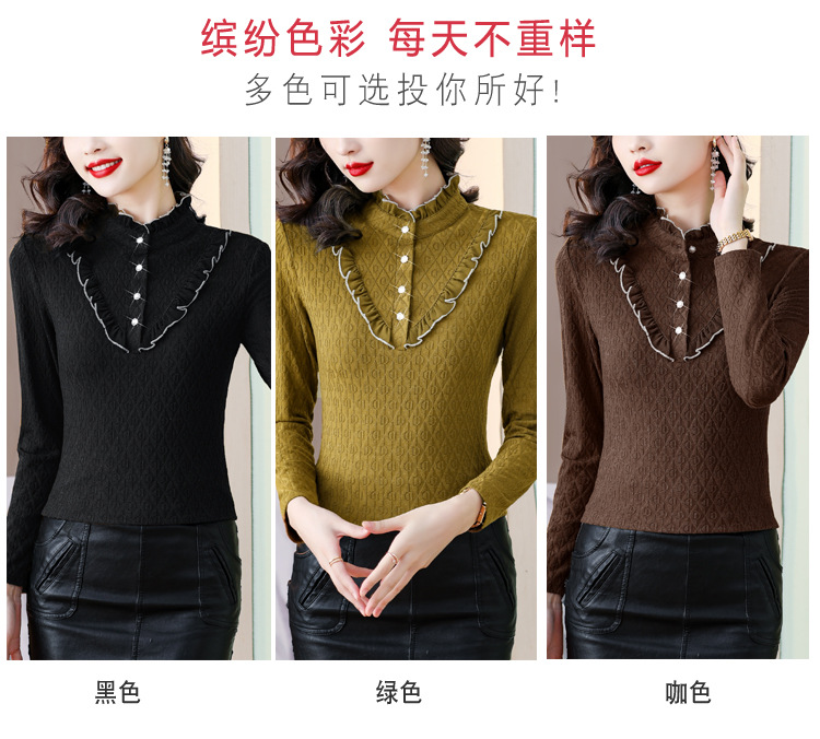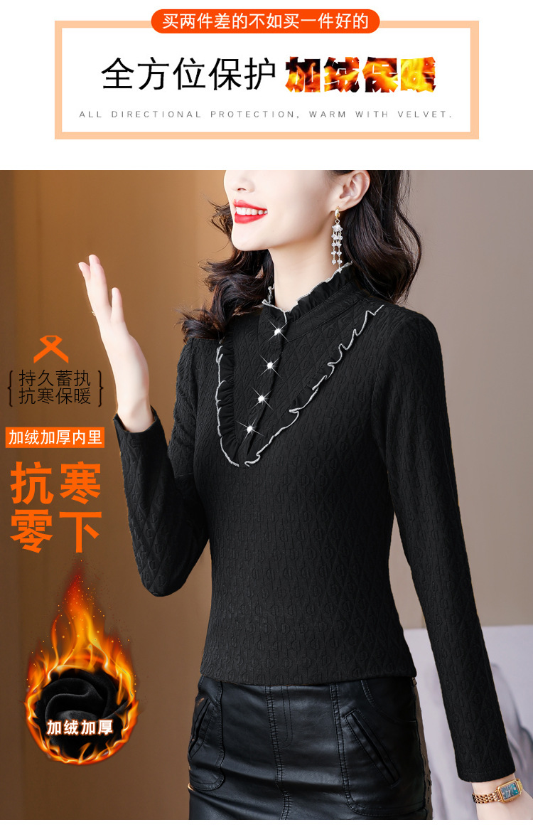 秋冬新款,半高领木耳边小衫加绒加厚打底衫 TYL210