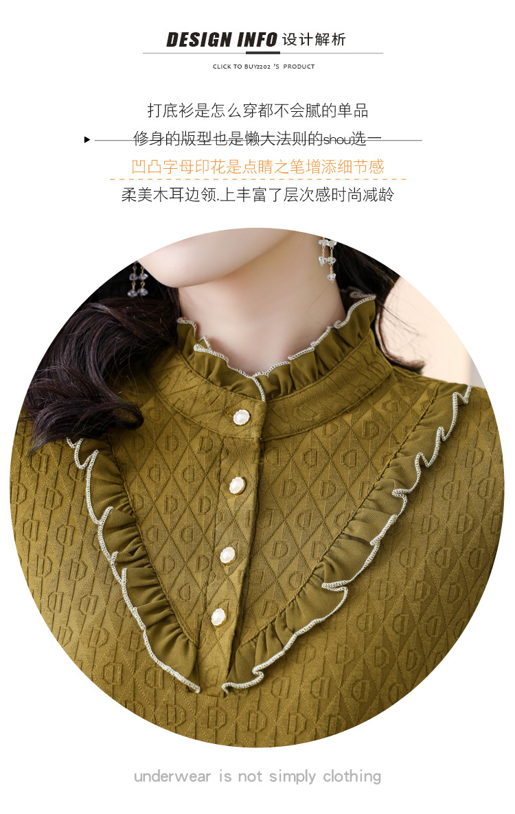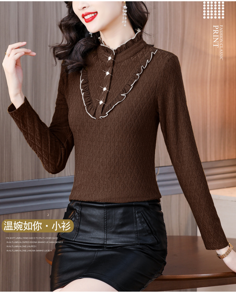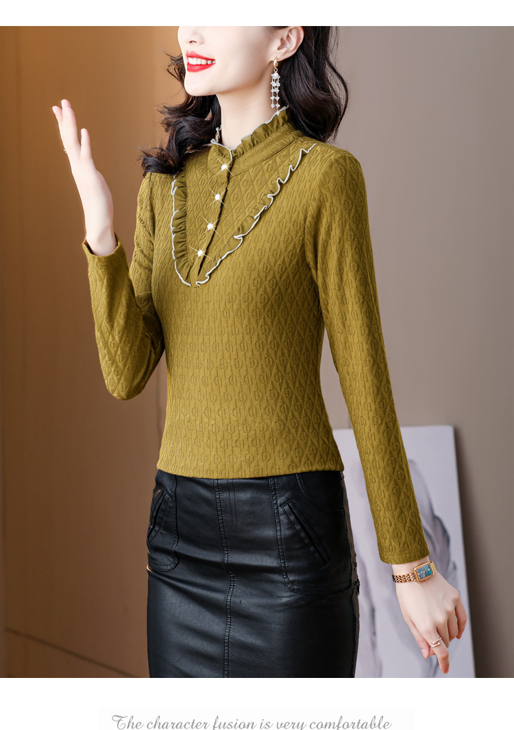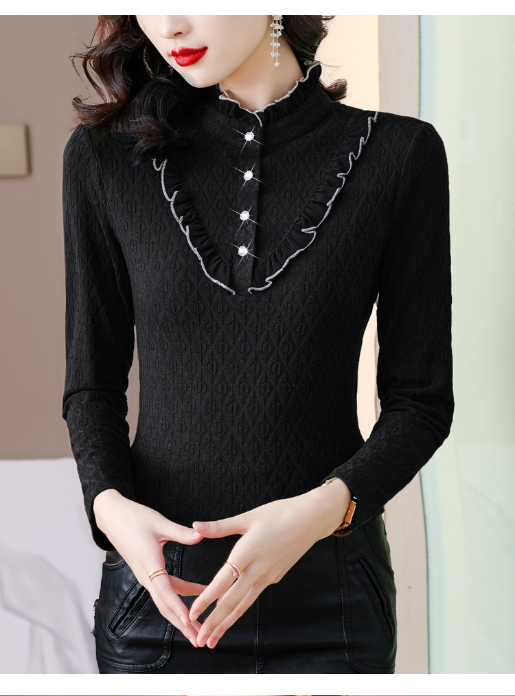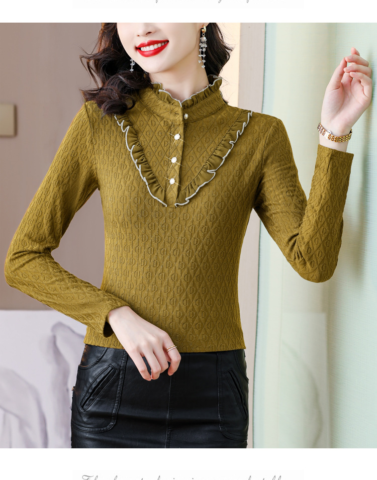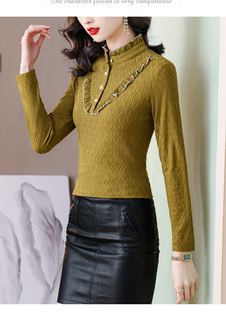 秋冬新款,半高领木耳边小衫加绒加厚打底衫 TYL210