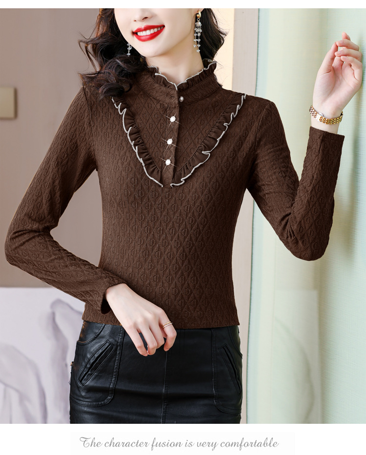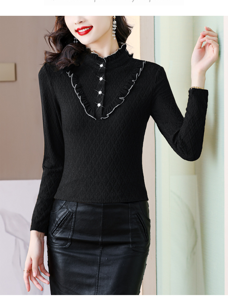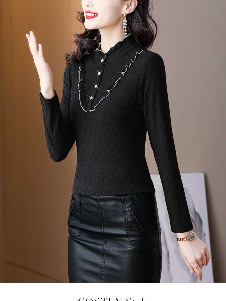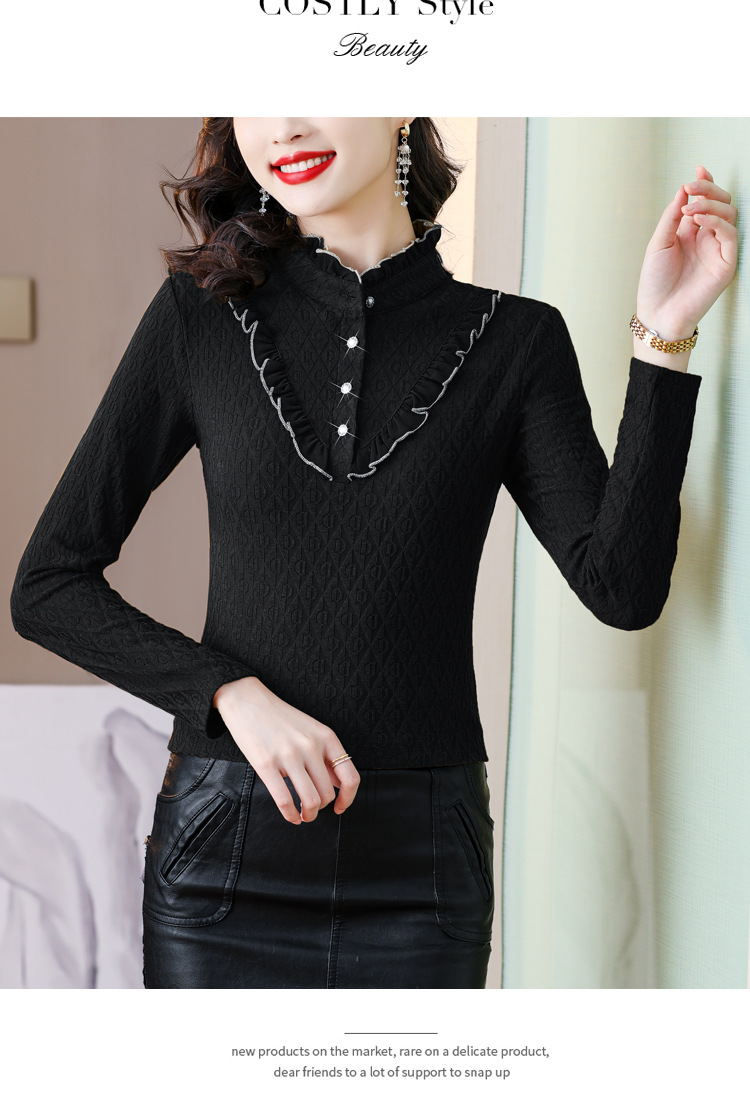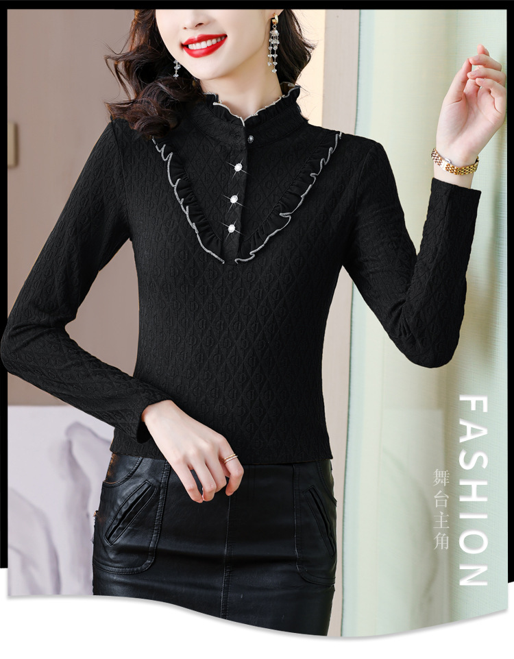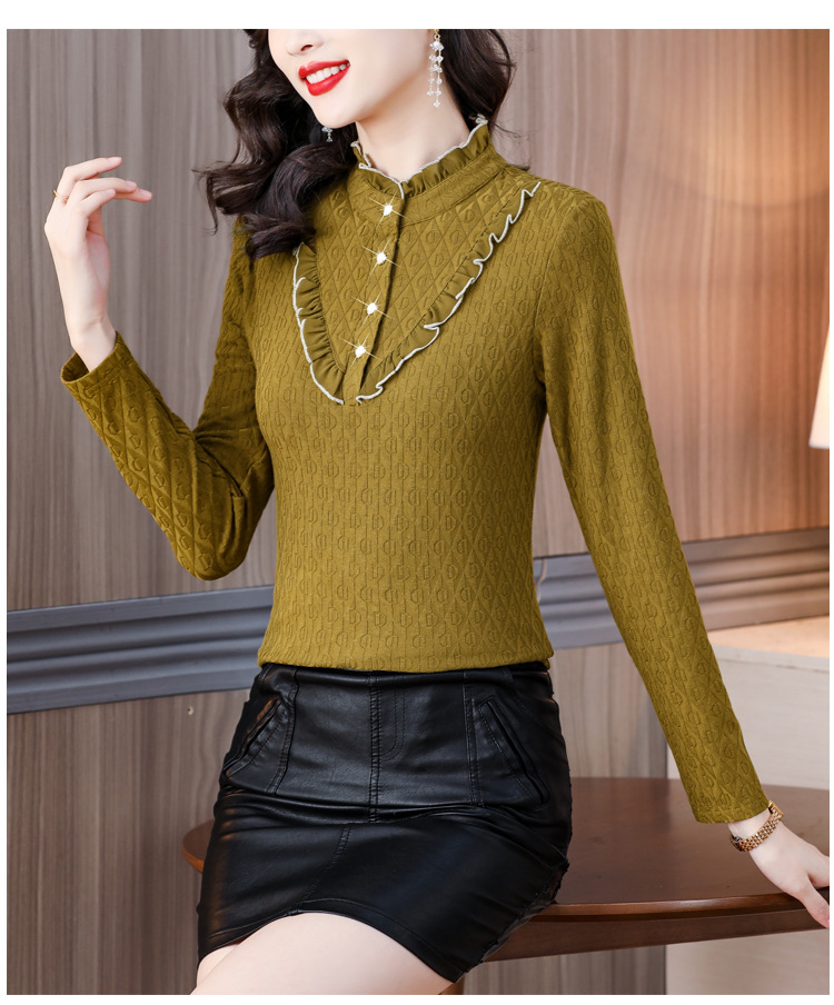 秋冬新款,半高领木耳边小衫加绒加厚打底衫 TYL210