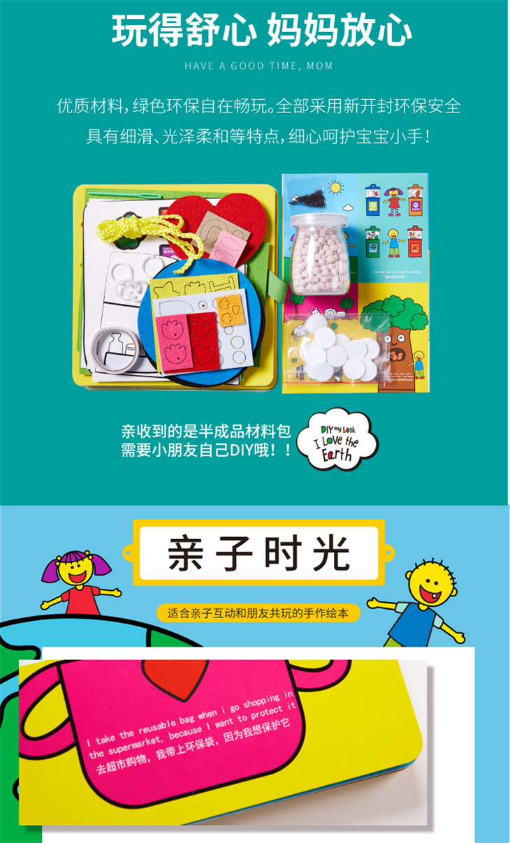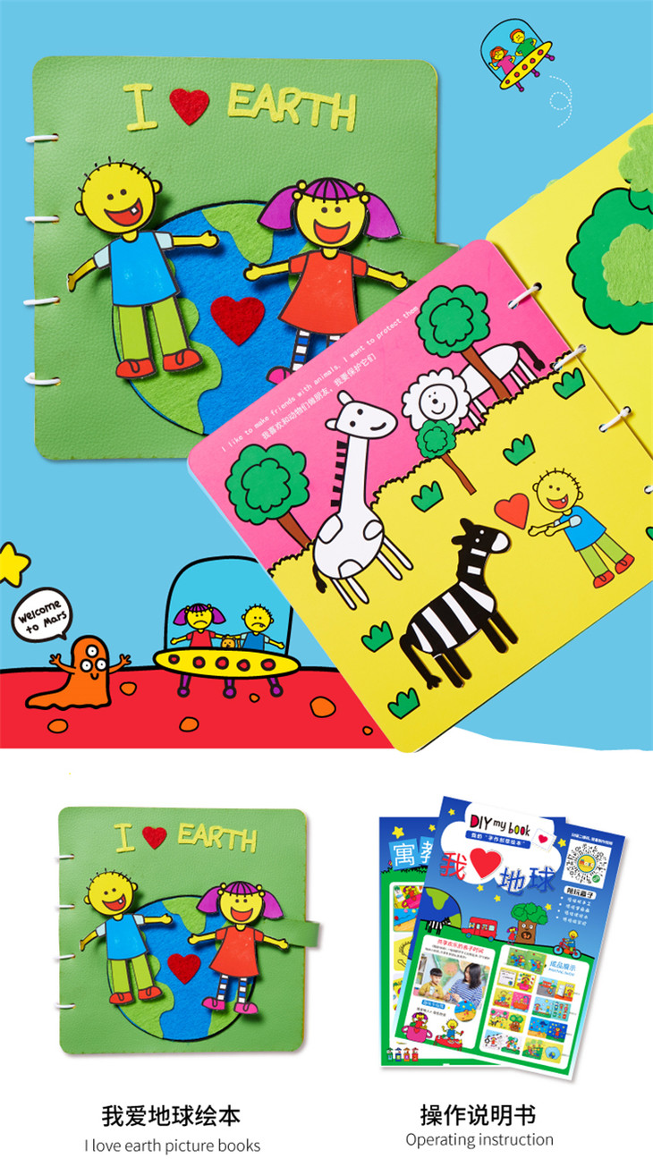 美可diy 儿童手工自制故事绘本我爱地球不织布立体图书制作布书