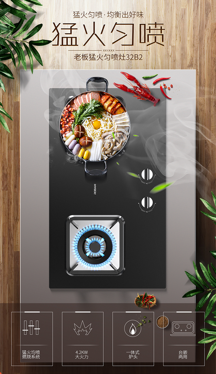老板 (Robam)燃气灶 嵌入式灶具 家用双灶具嵌可用天然气 猛火匀喷 4.2kW钢化玻璃 JZT-32B2(天然气)