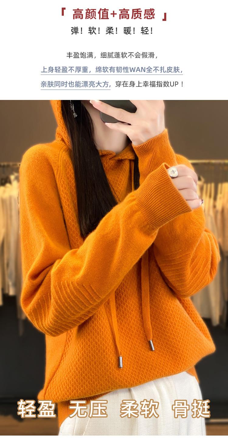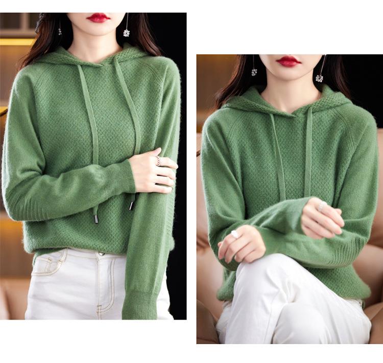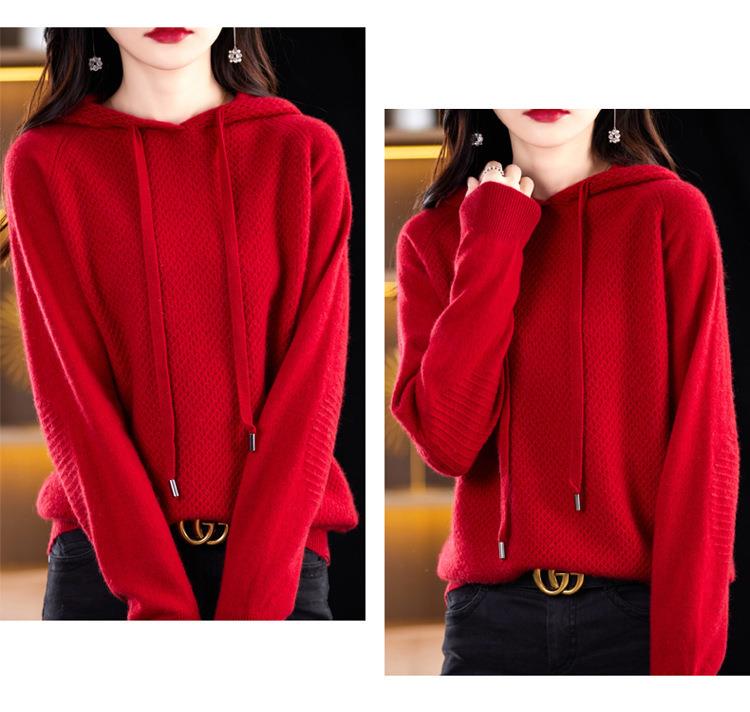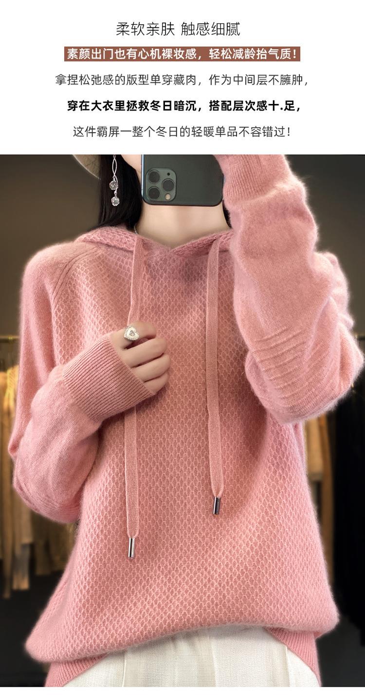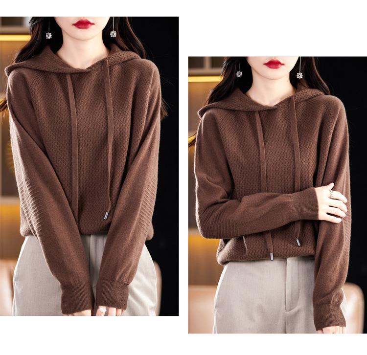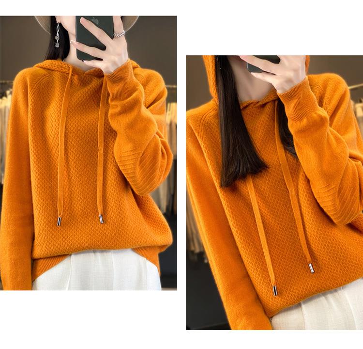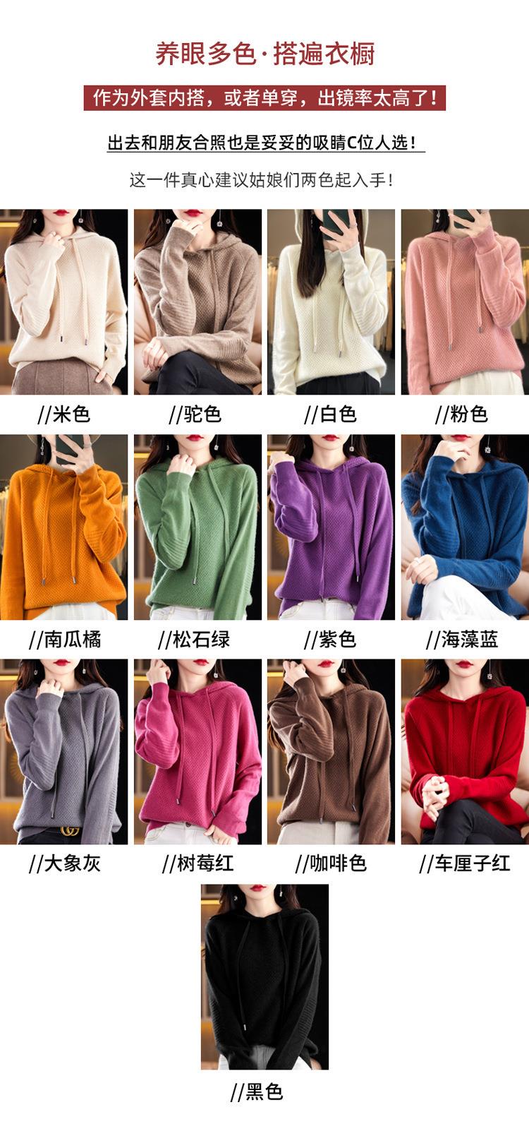 2023秋冬新款针织衫上衣韩版女士连帽长袖卫衣套头纯色针织帽衫女