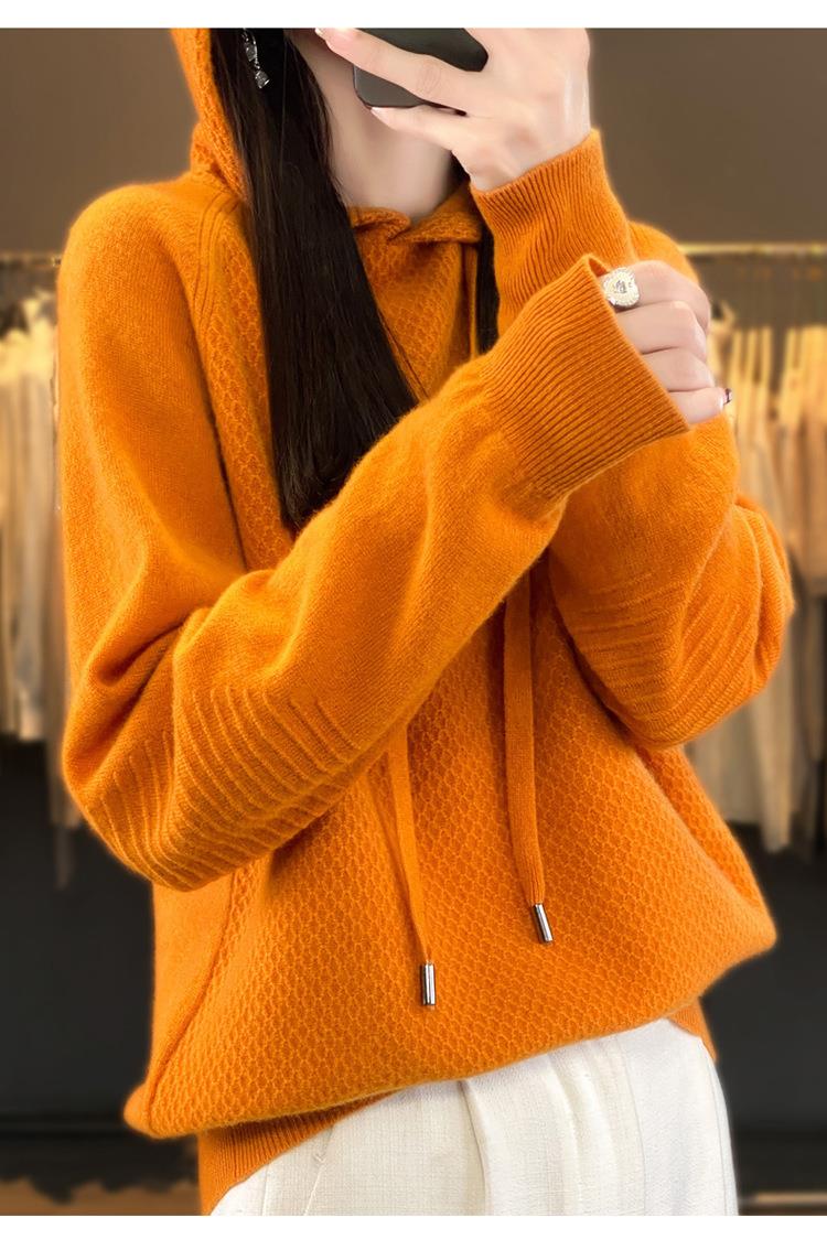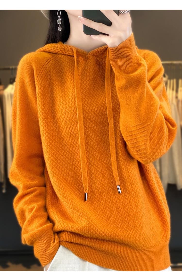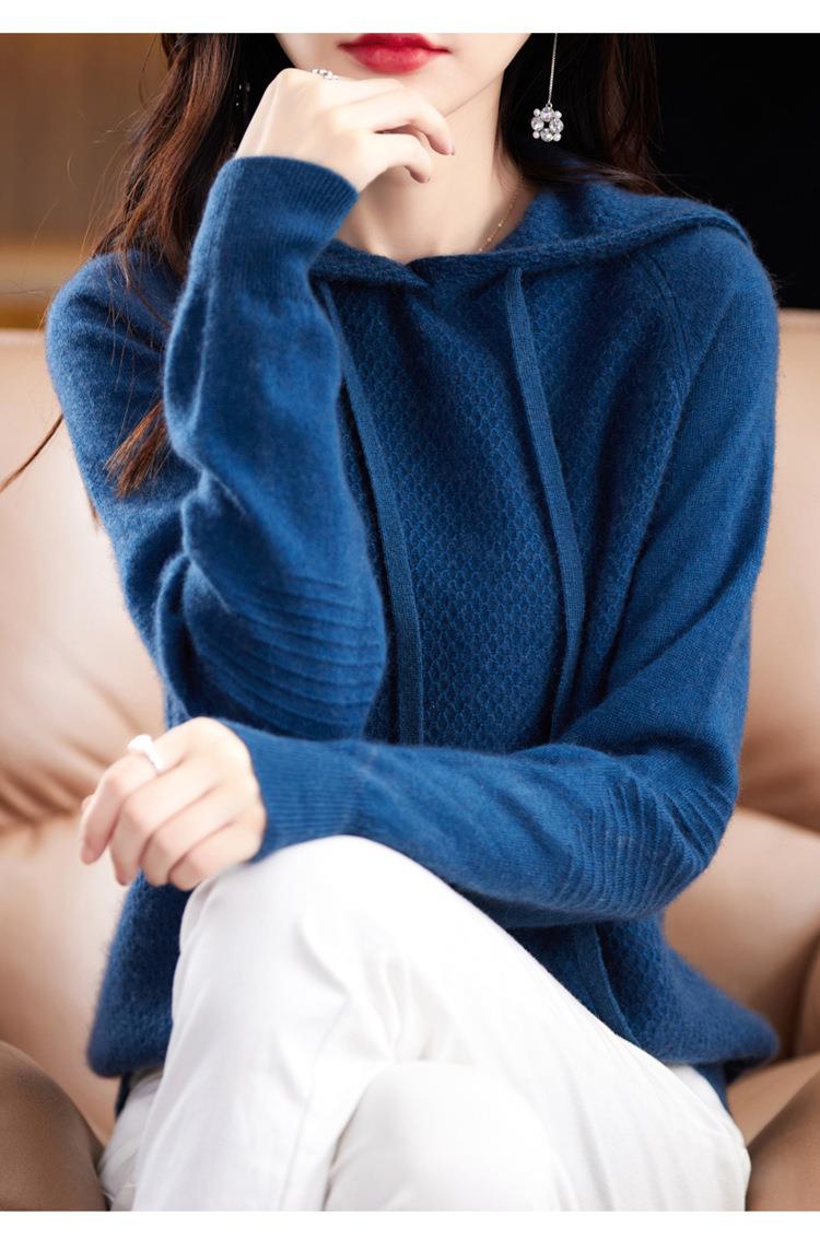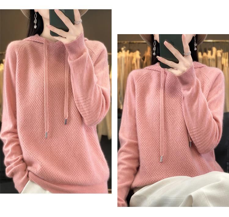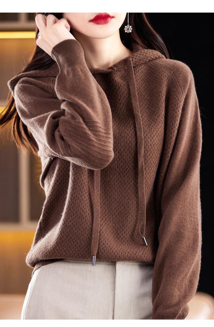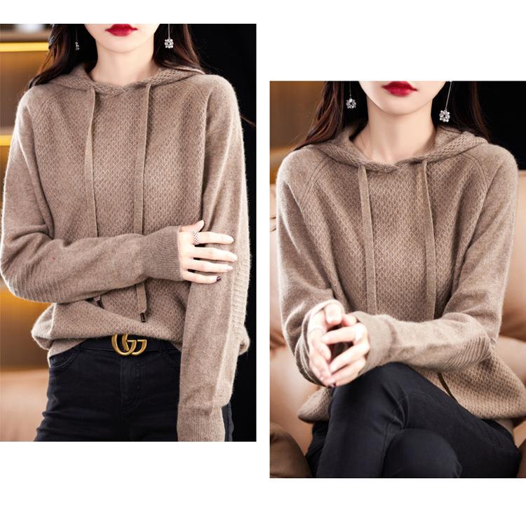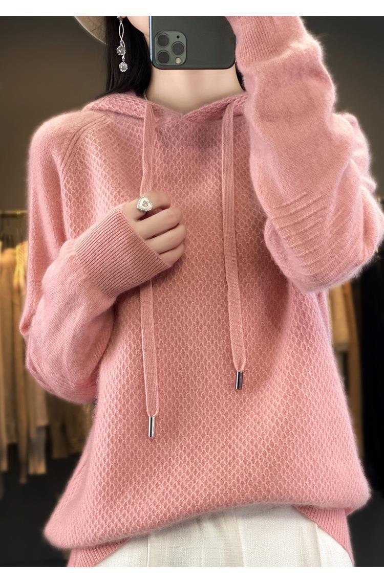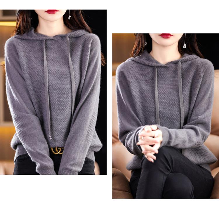 2023秋冬新款针织衫上衣韩版女士连帽长袖卫衣套头纯色针织帽衫女