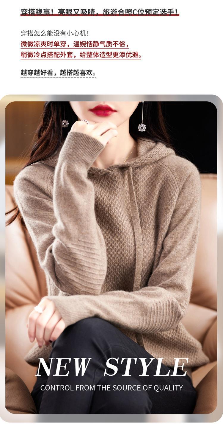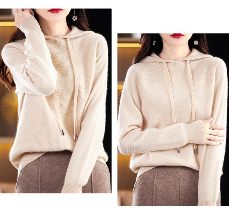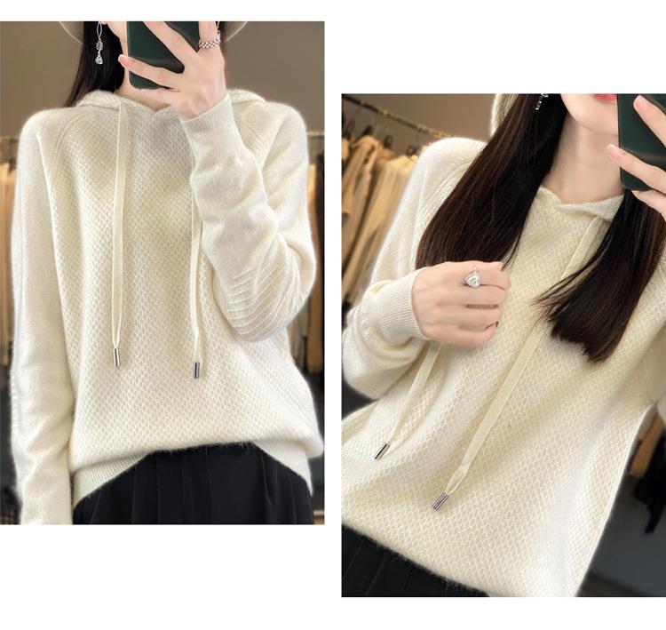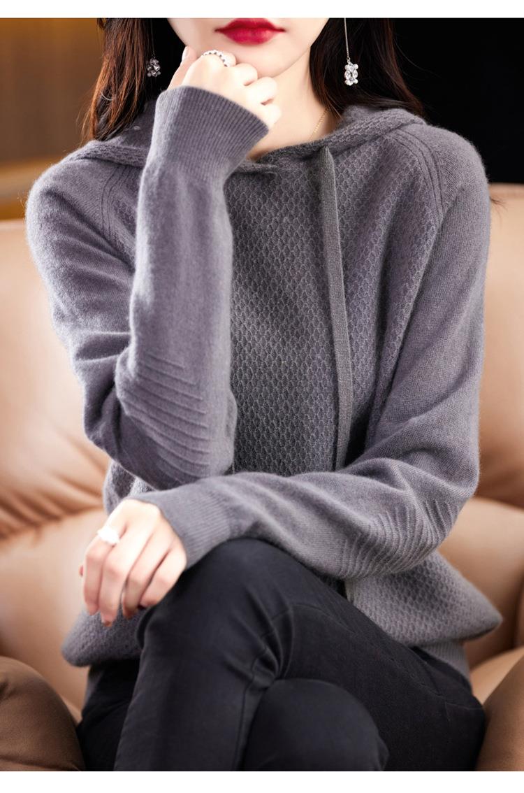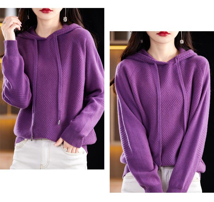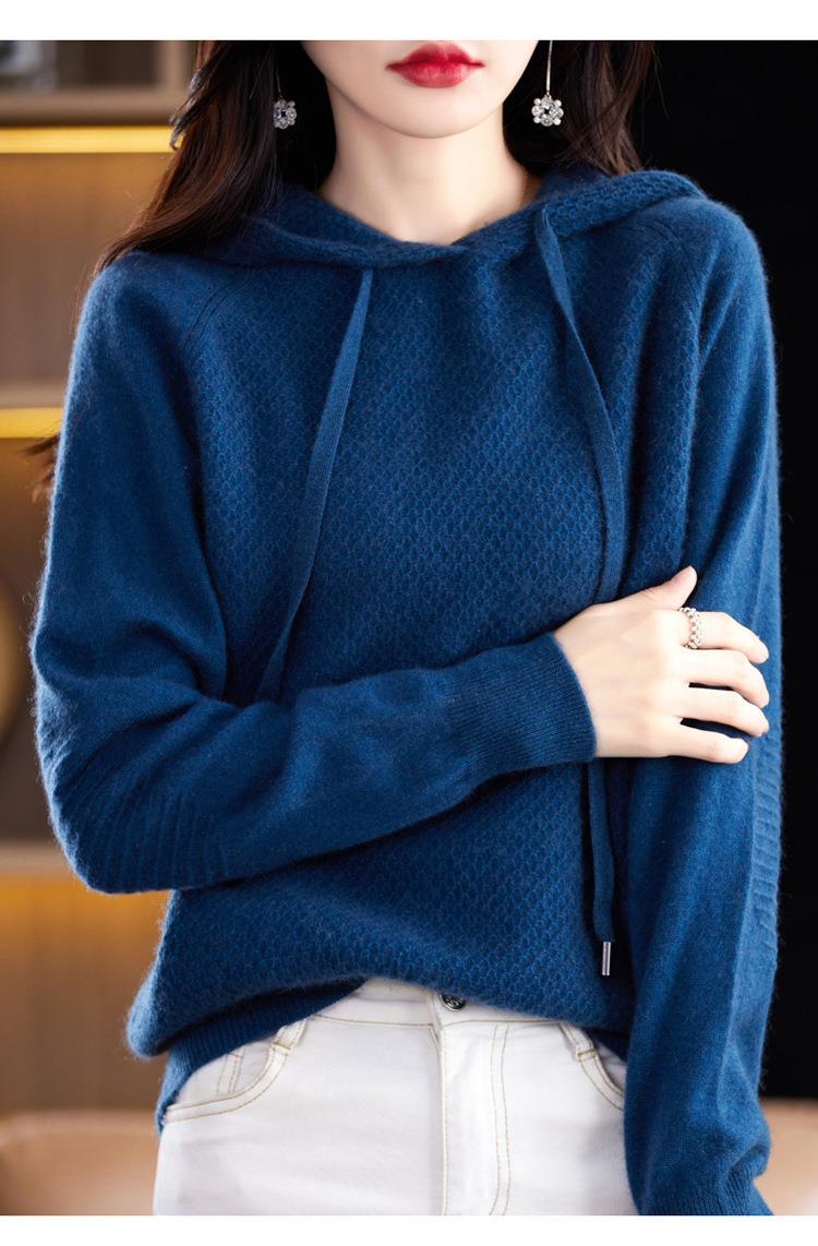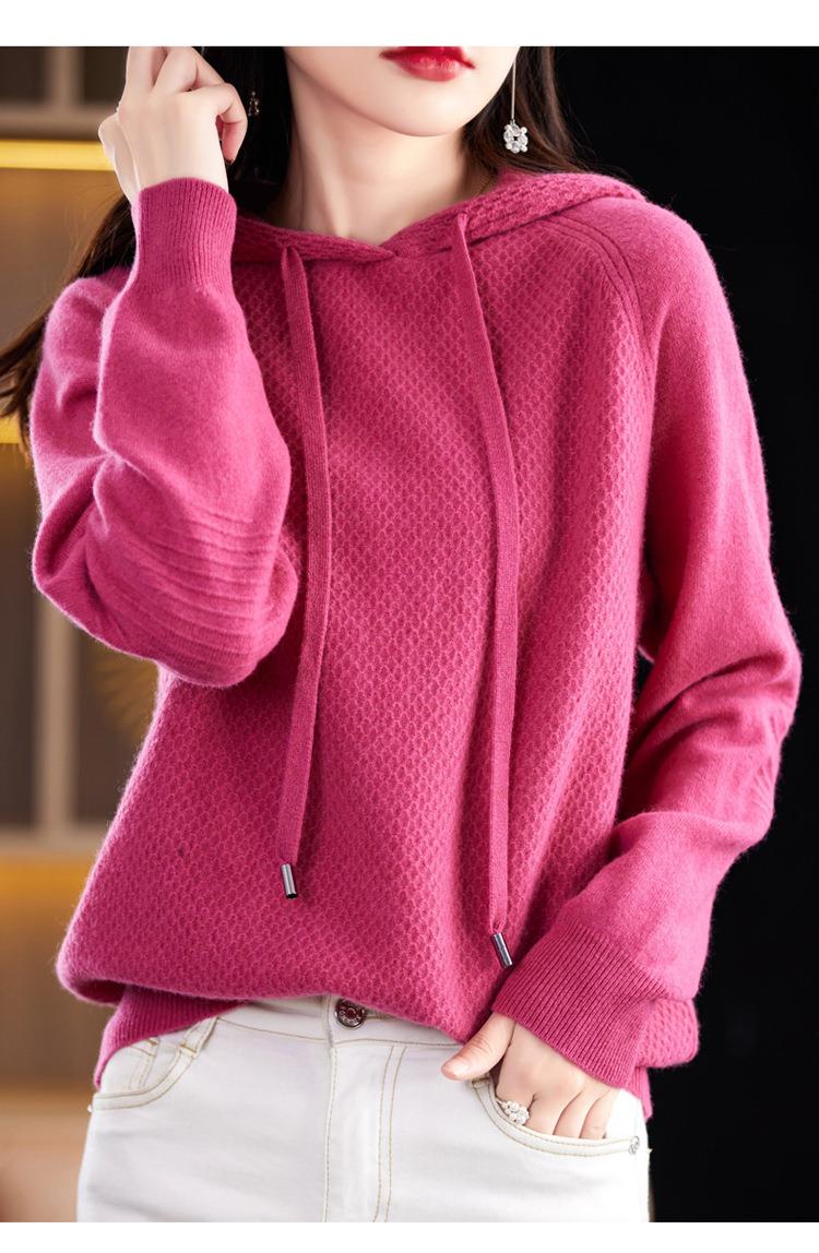 2023秋冬新款针织衫上衣韩版女士连帽长袖卫衣套头纯色针织帽衫女