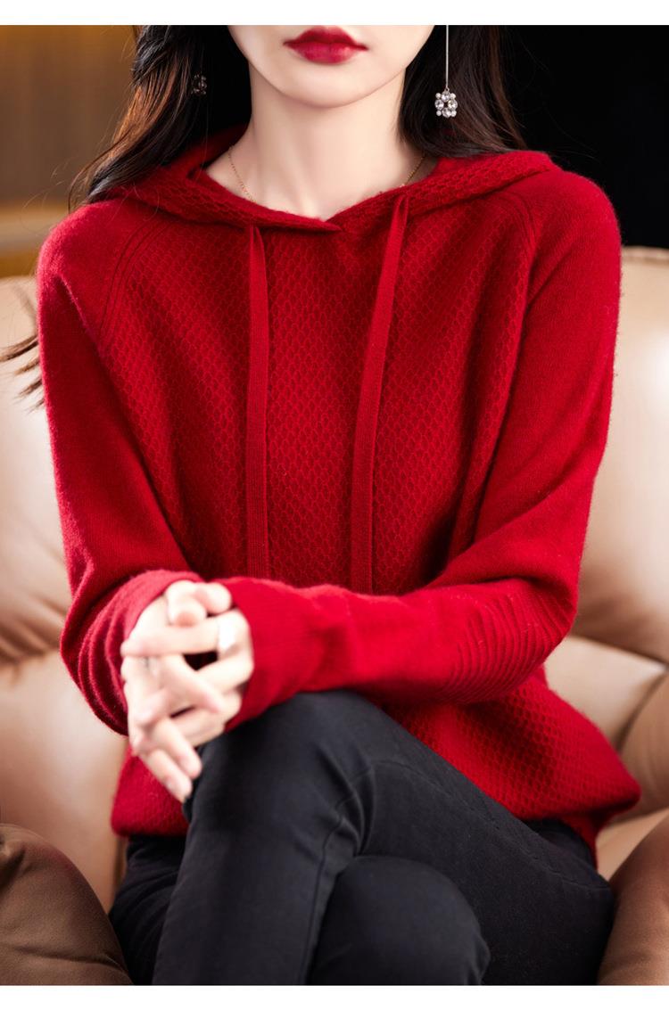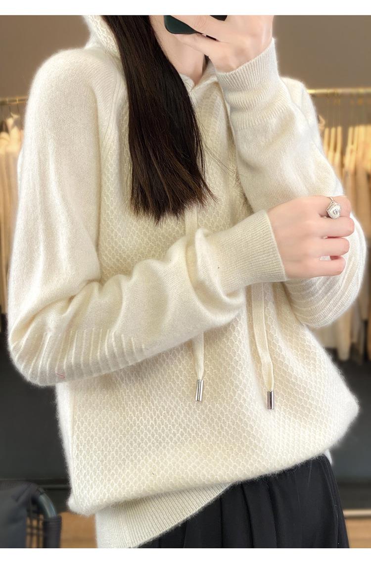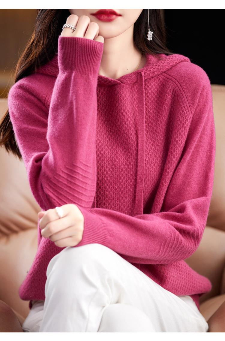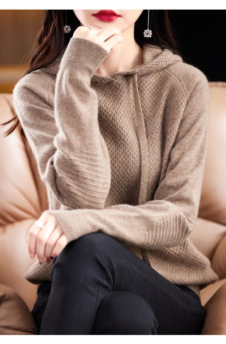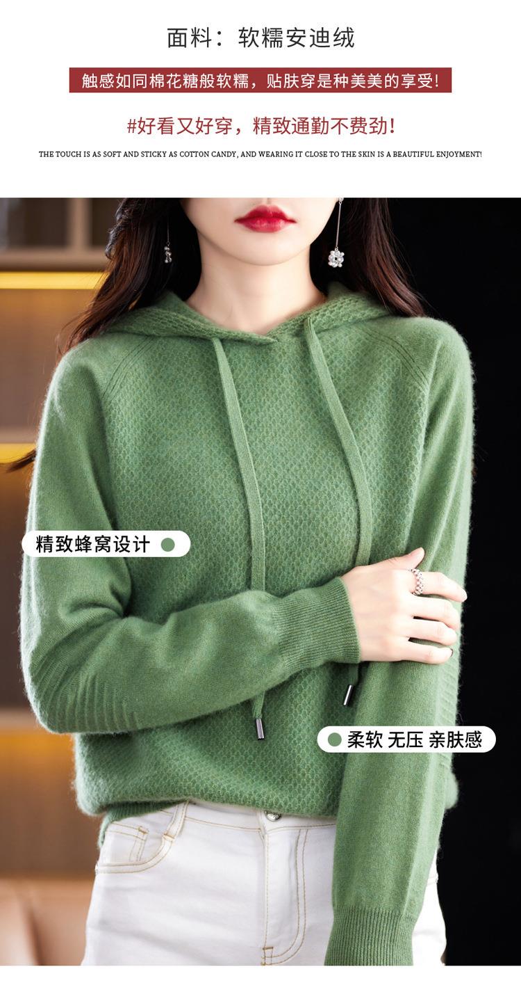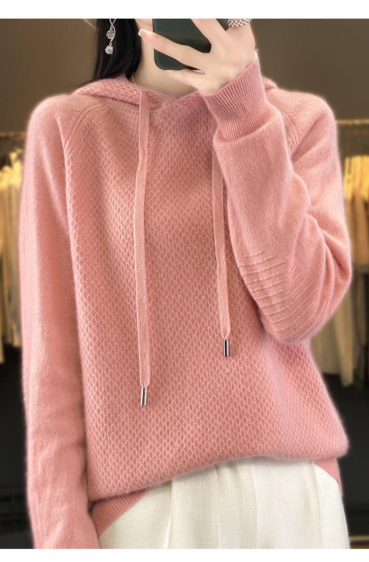 2023秋冬新款针织衫上衣韩版女士连帽长袖卫衣套头纯色针织帽衫女
