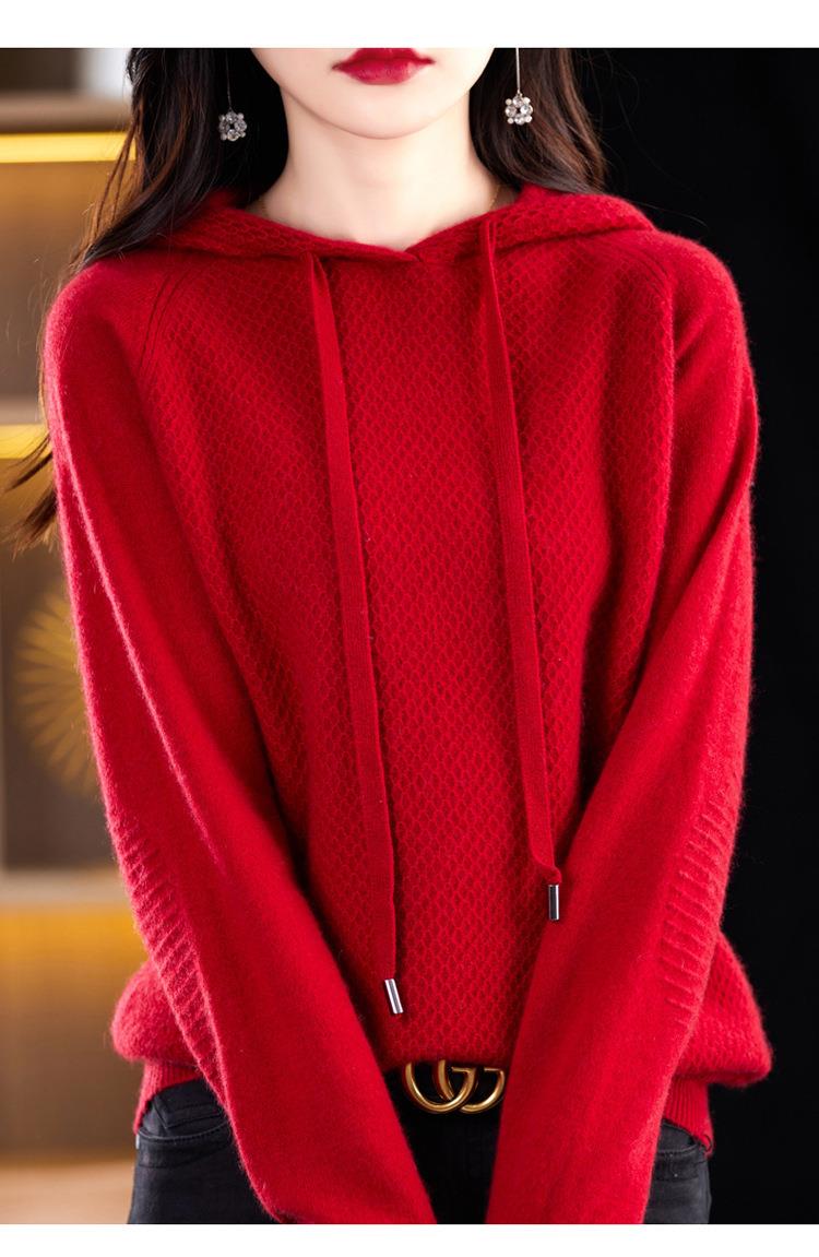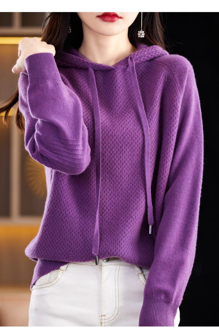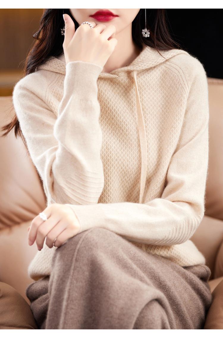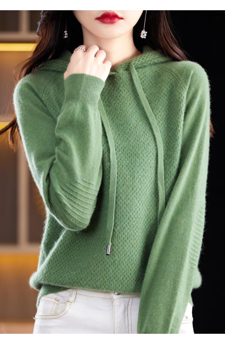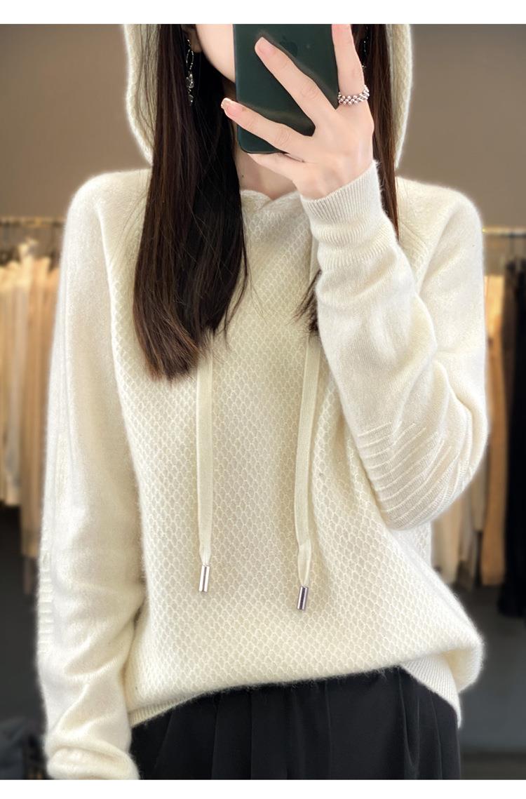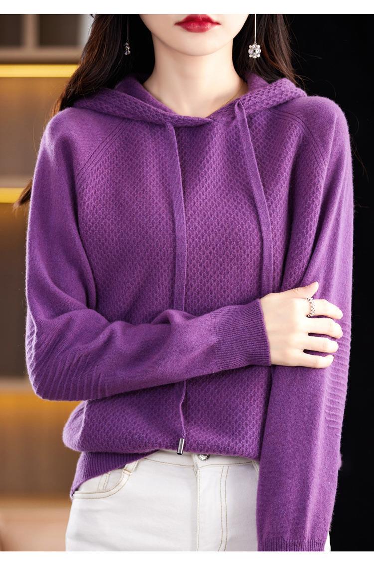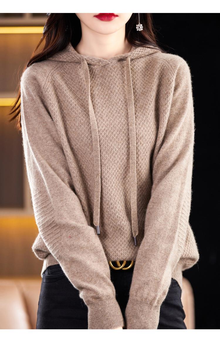 2023秋冬新款针织衫上衣韩版女士连帽长袖卫衣套头纯色针织帽衫女