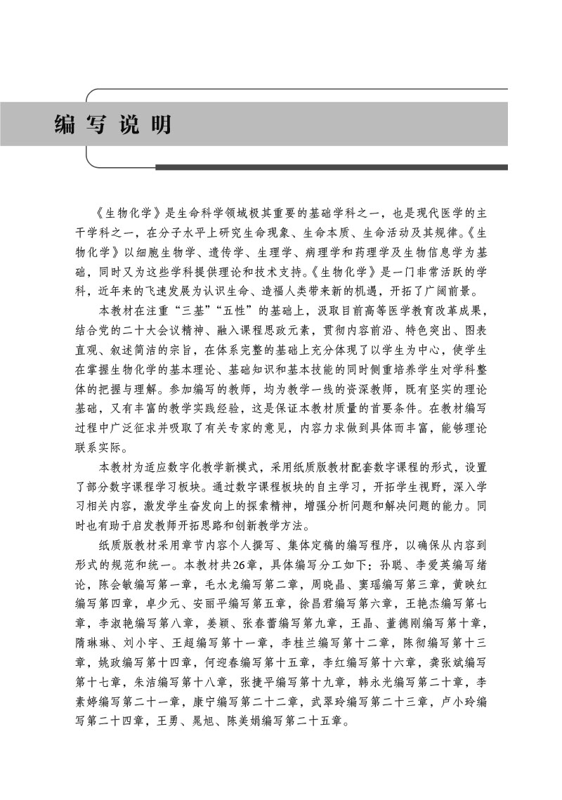 本教材作为科学出版社“十四五”普通高等教育本科规划教材之一,是依据教育部相关文件和要求,紧跟二十大精神,结合相应专业教学要求和课程特点编写而成。全书共26章,在强调生物化学的基本理论、基础知识和基本技能的基础上,引进了本学科的最新进展。章节编排更加合理,教学层次更加清晰,更加符合学生学习的认知规律。本教材采用纸质版教材配合数字化资源的融合出版模式,数字化资源中设置了图文并茂的学习模块,包括思政元素、知识拓展、案例分析、思考题、思维导图和课件等。本教材强化理论与实践的有效衔接,构建知识网络体系,融入课程思政元素,构建了“基础—拓展—实践”三维教学体系,为复合型医药学人才培养提供创新型教学解决方案。