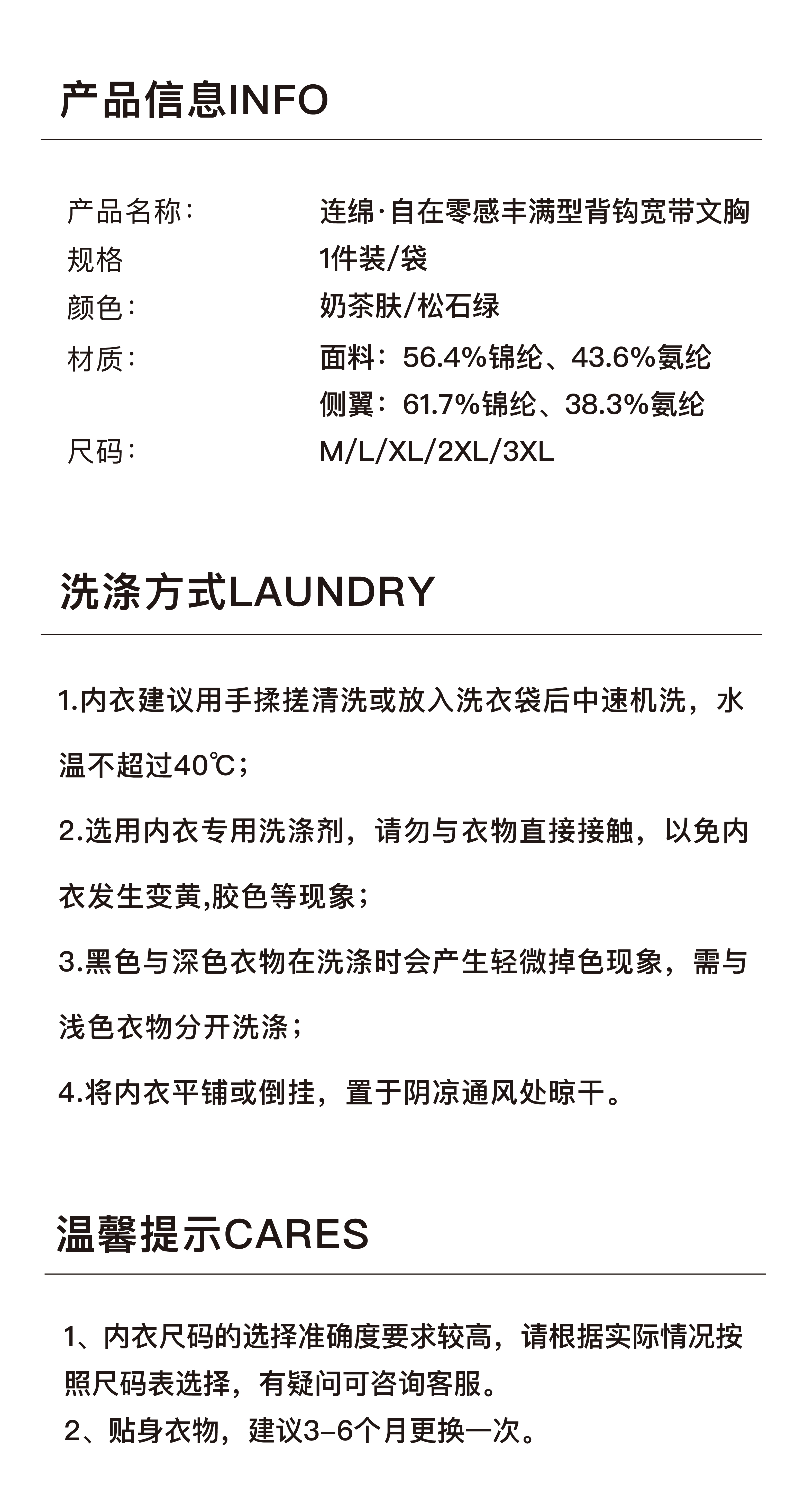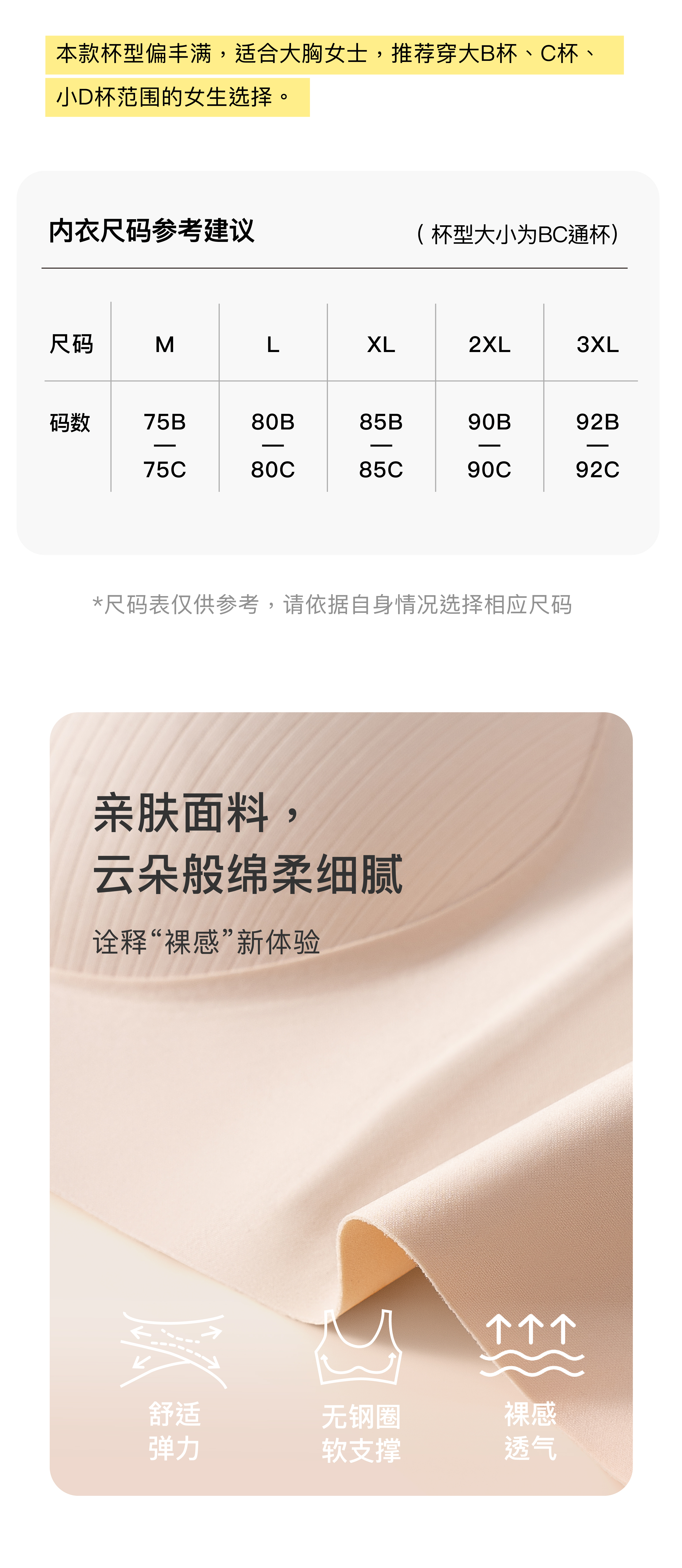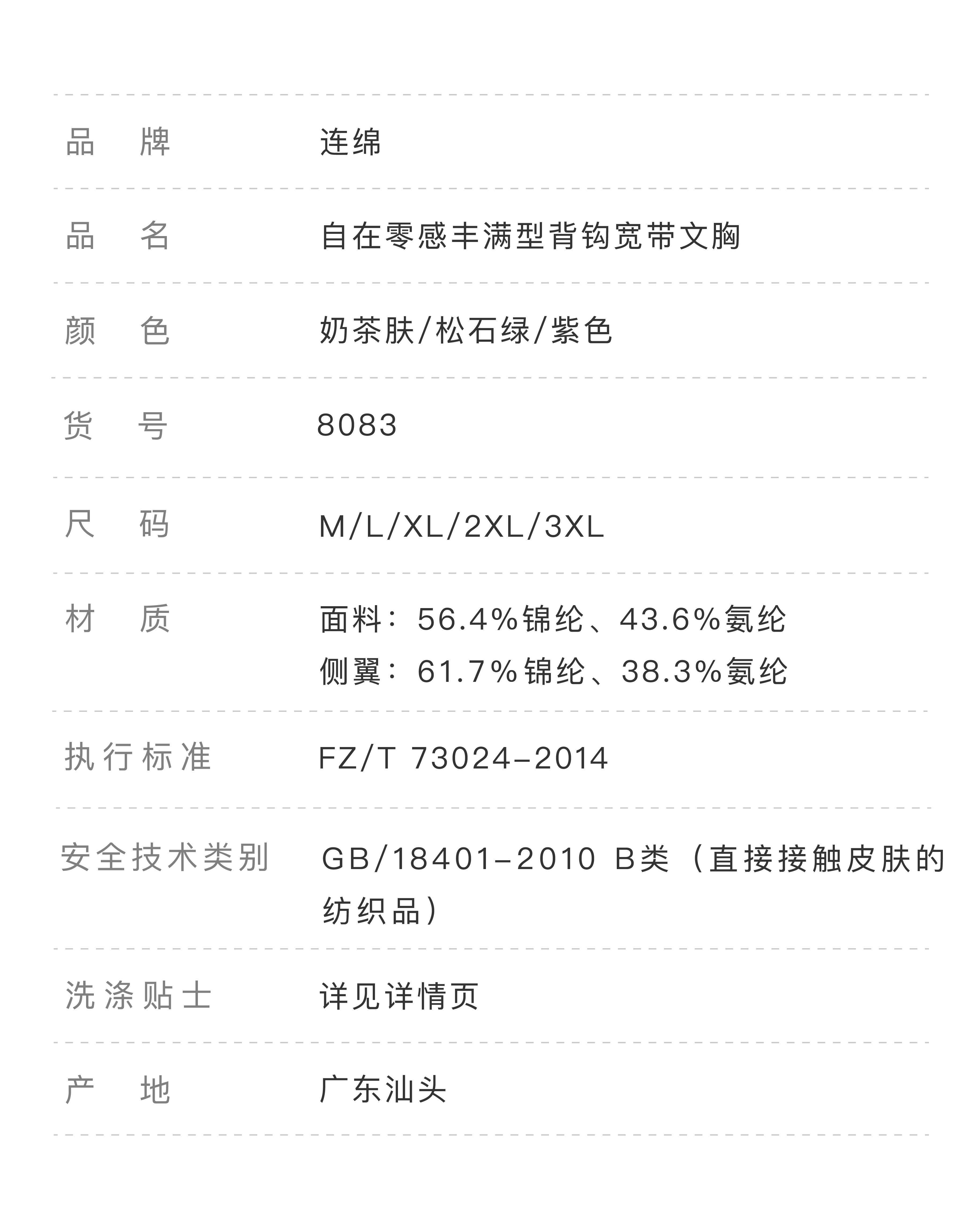 连绵· 自在零感大胸背钩宽带文胸 8083