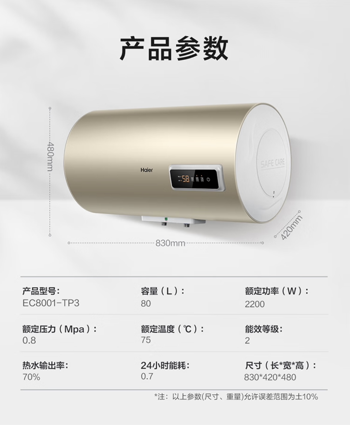 海尔(Haier)热水器 EC8001-TP3