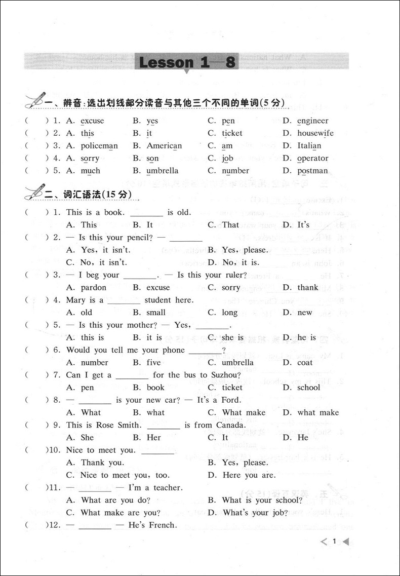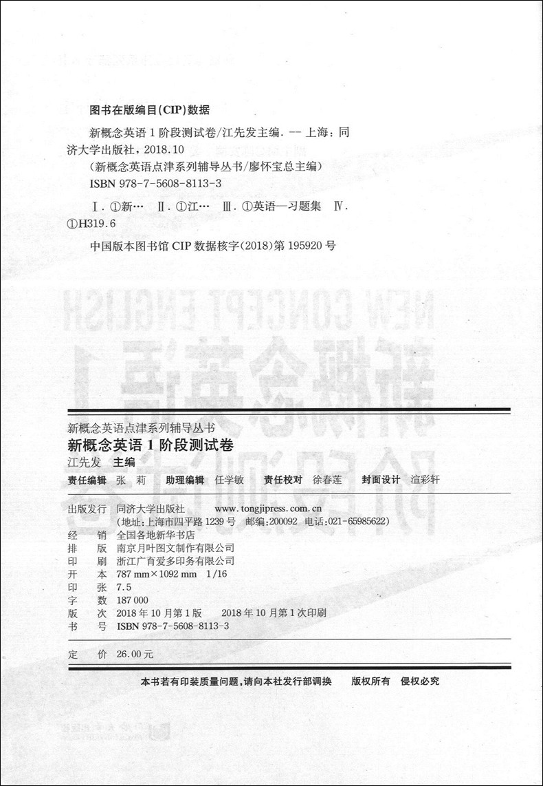 正版 新概念英语1阶段测试卷 第一册 新概念英语第1册配套练习试卷 同济大学出版社 新概念英语点津系列辅导丛书