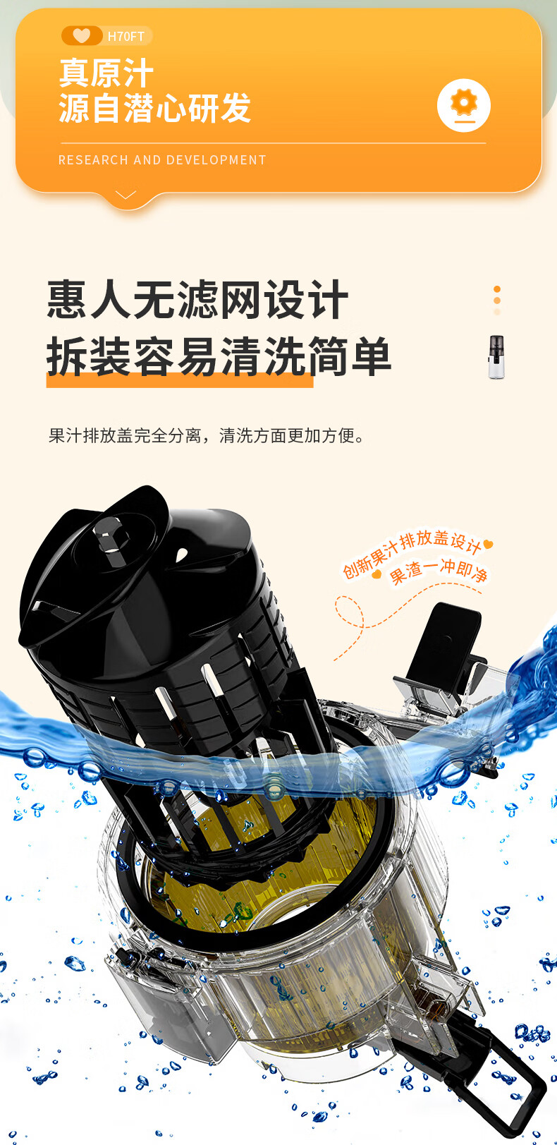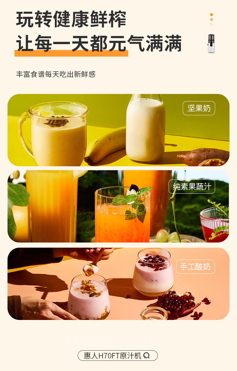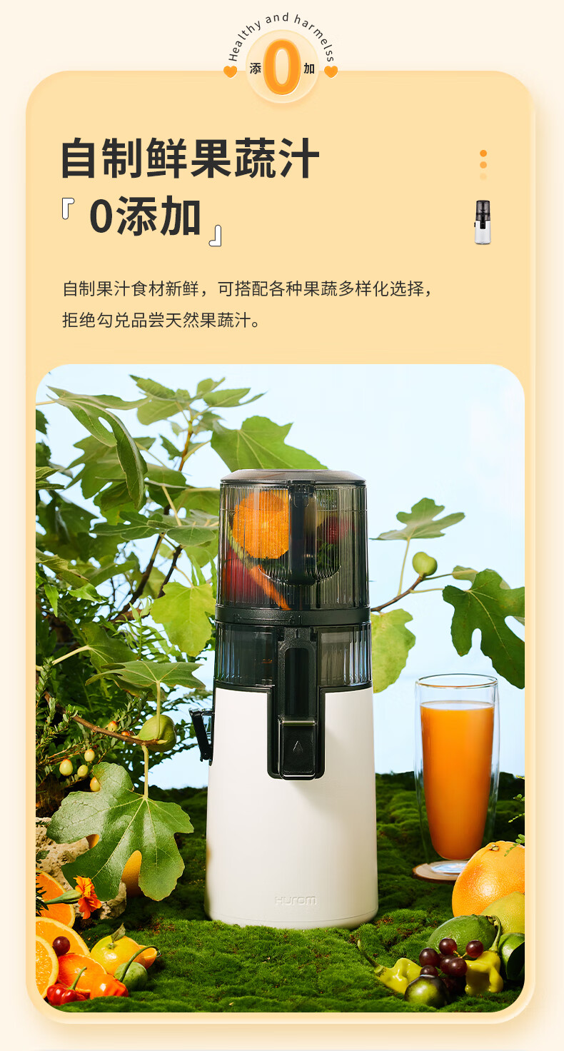惠人(HUROM)原汁机无网多功能大口径家用低速榨汁机果渣汁分离韩国进口冰淇淋机家用 H70FT