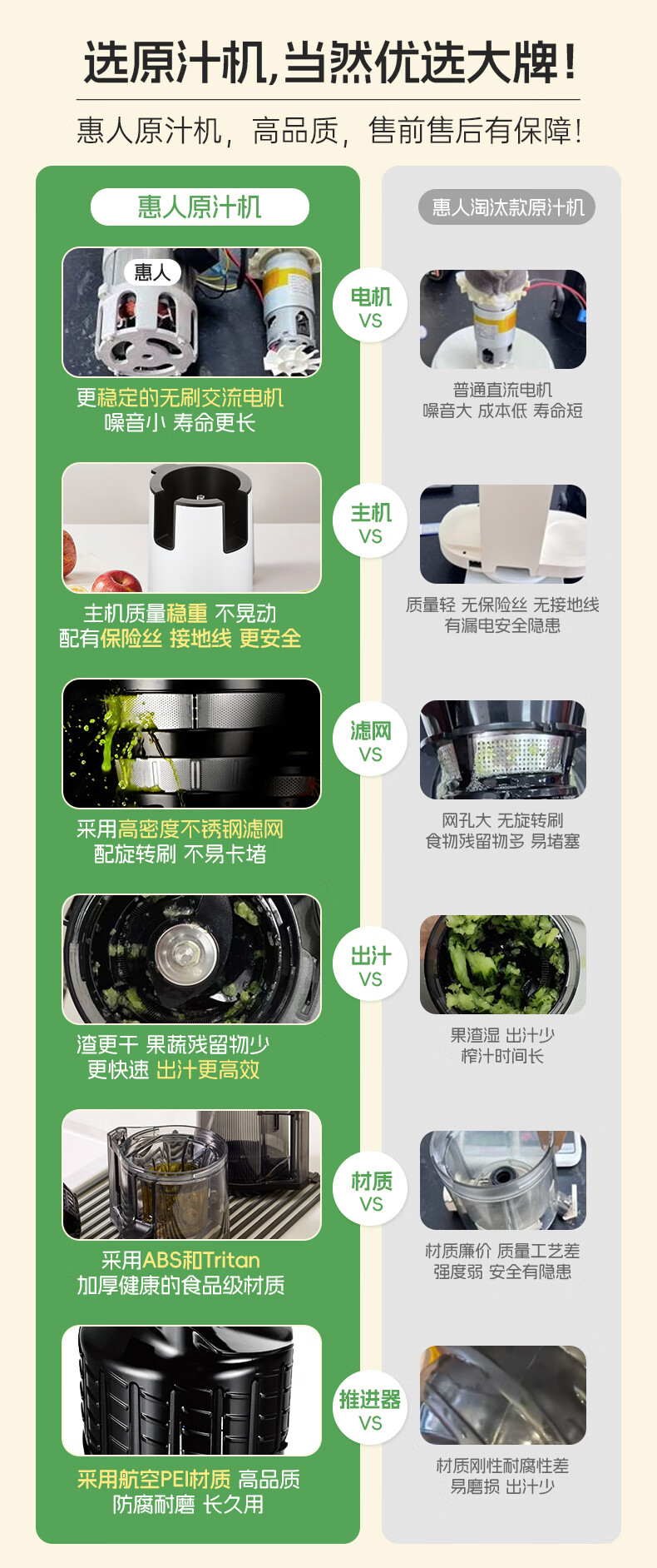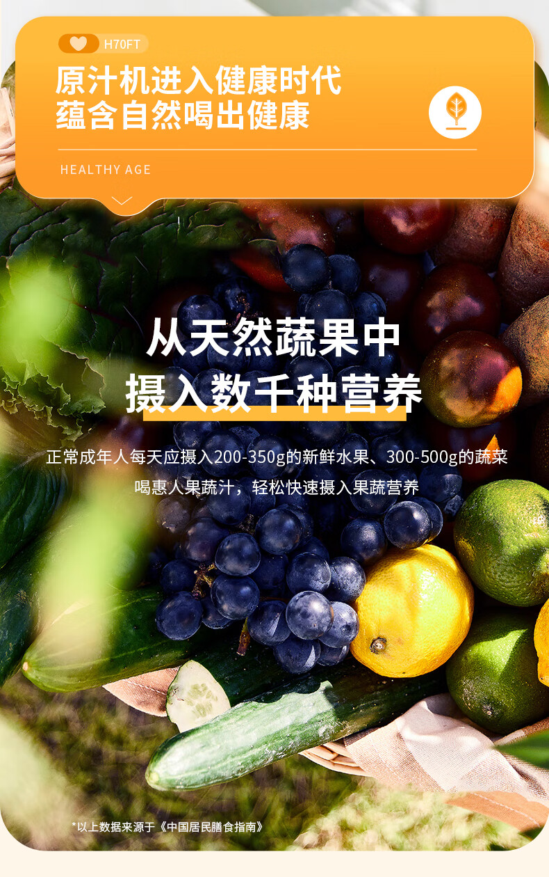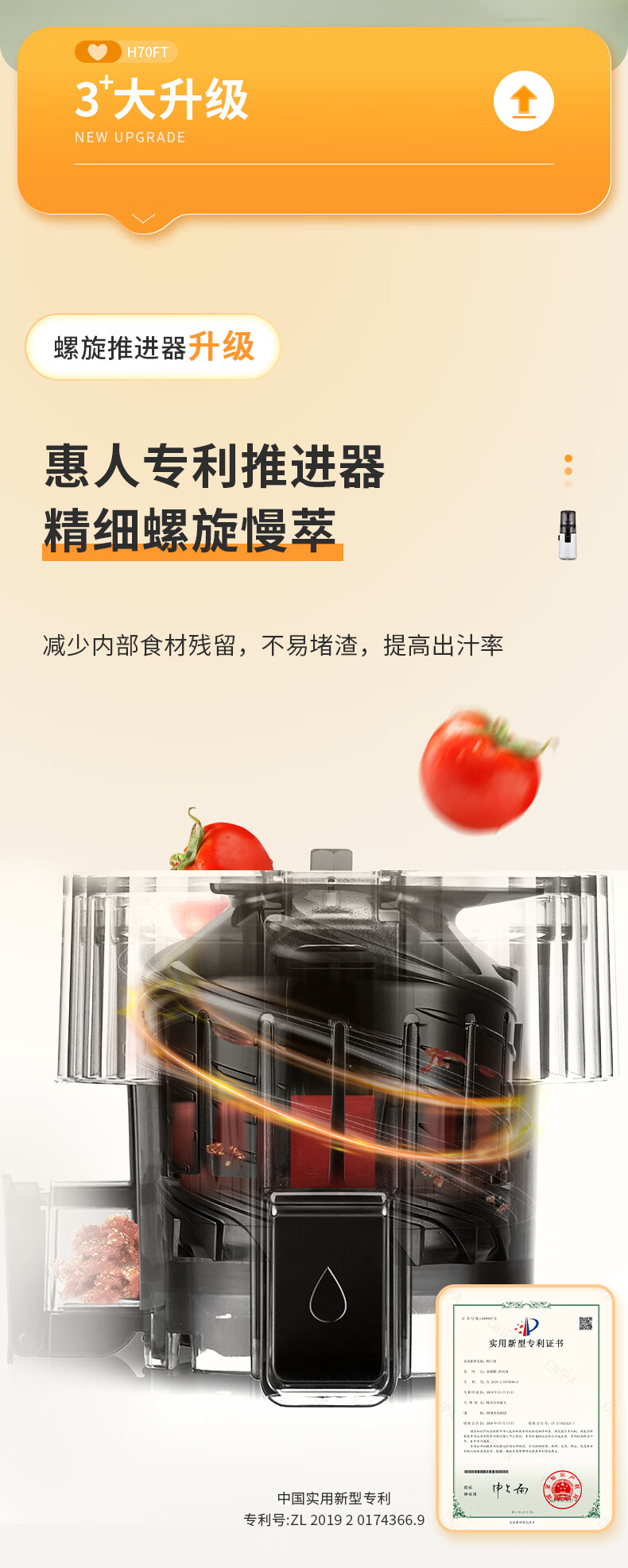 惠人(HUROM)原汁机无网多功能大口径家用低速榨汁机果渣汁分离韩国进口冰淇淋机家用 H70FT