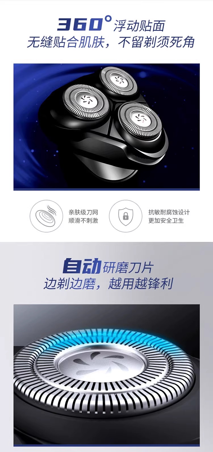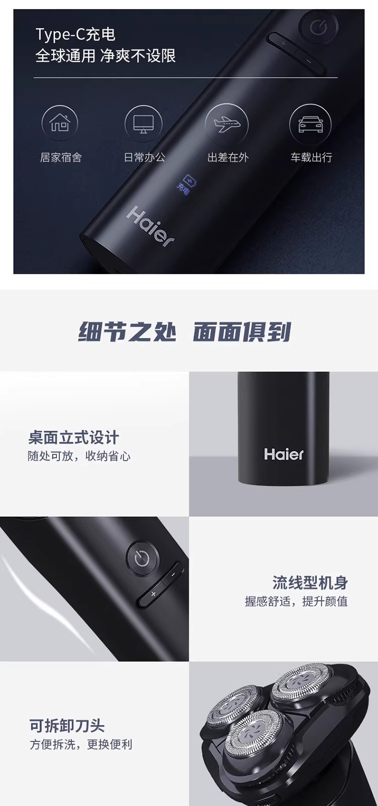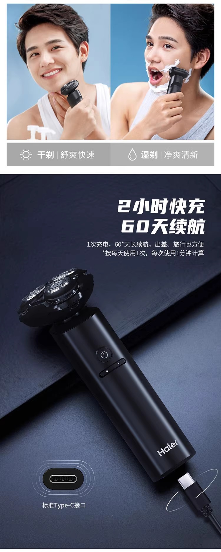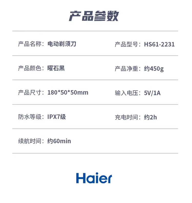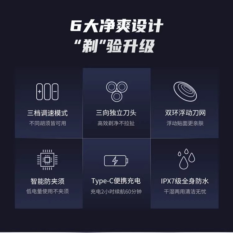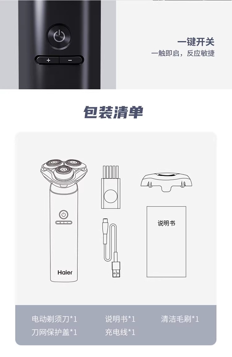 海尔剃须刀三档调速模式双环浮动刀网干湿两用S6