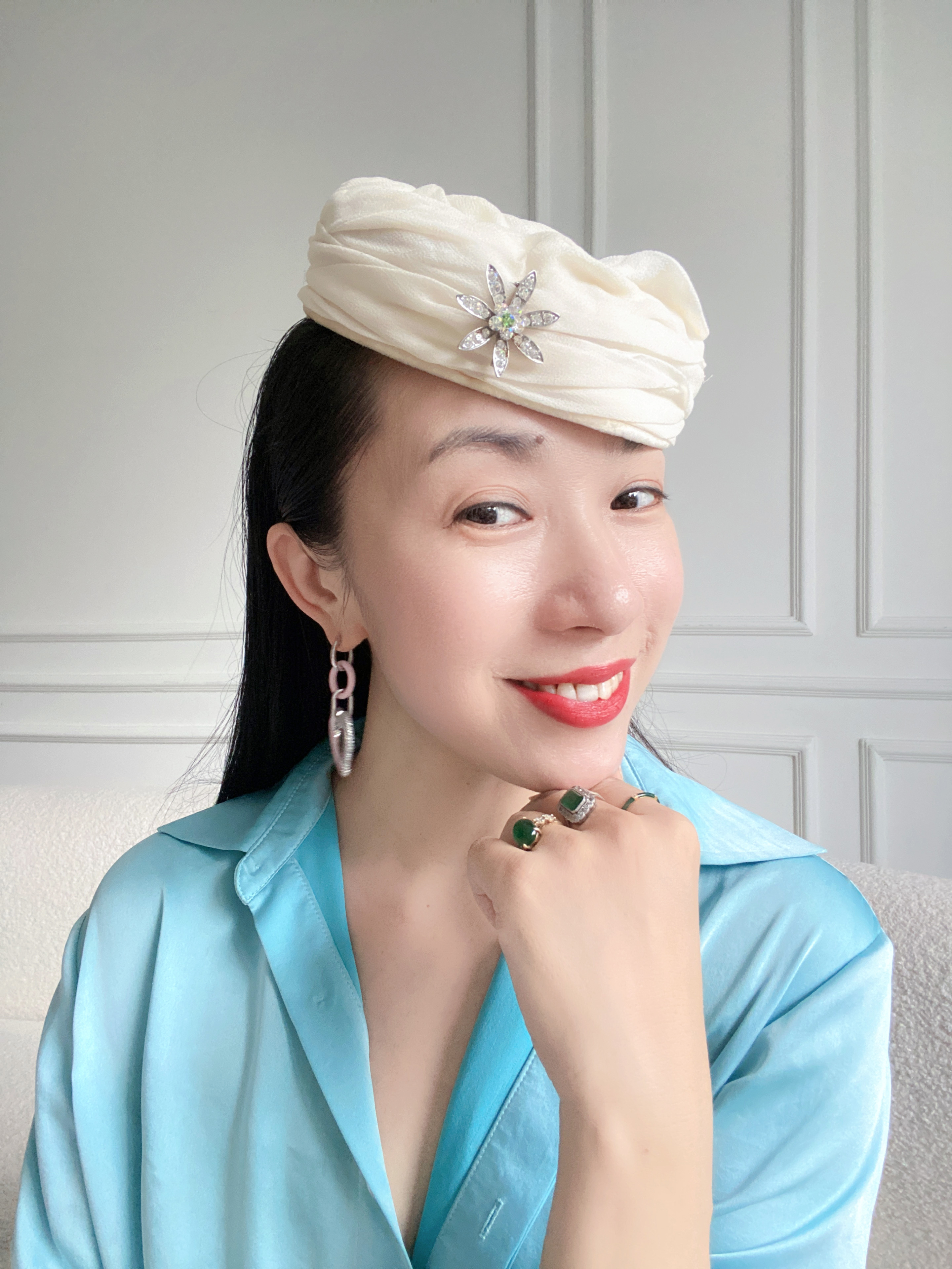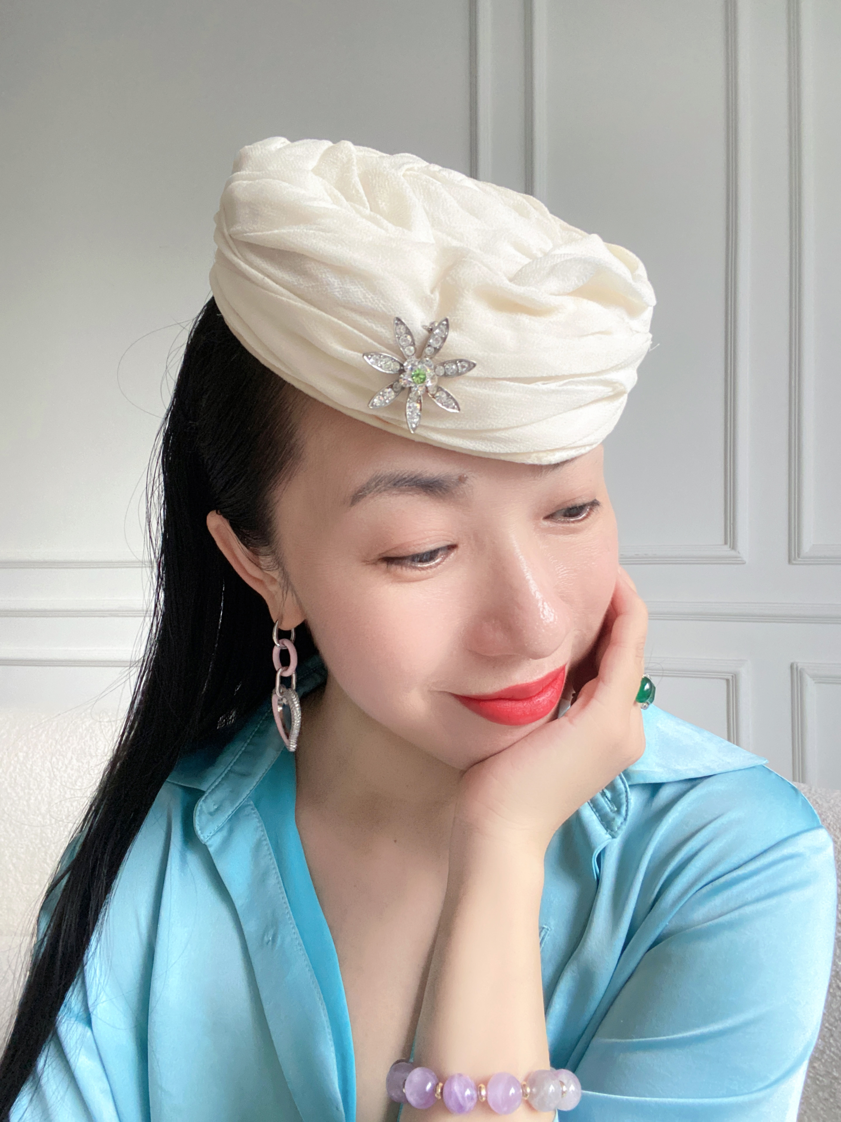 孤品vintage帽·美国60年代雪花胸针白纱药盒 不限头围 bjc