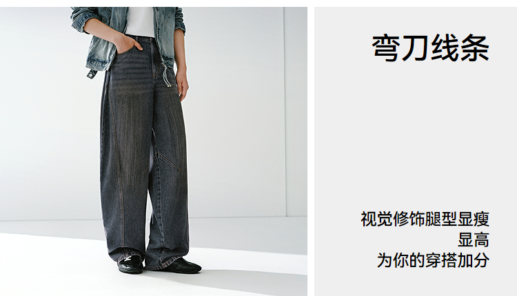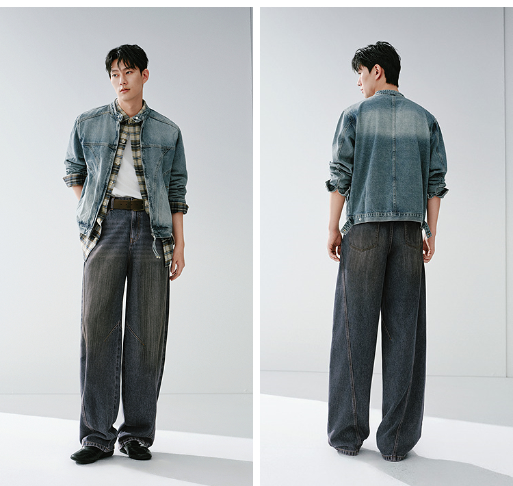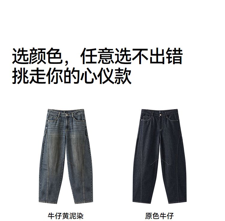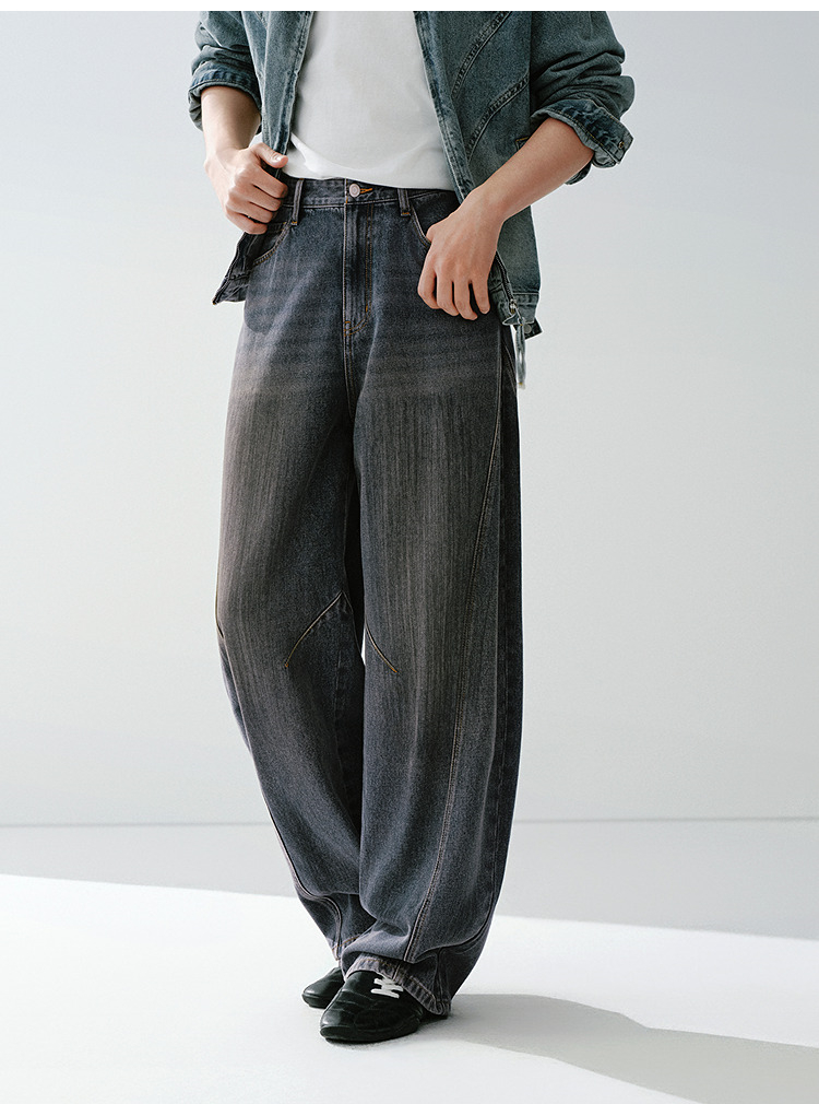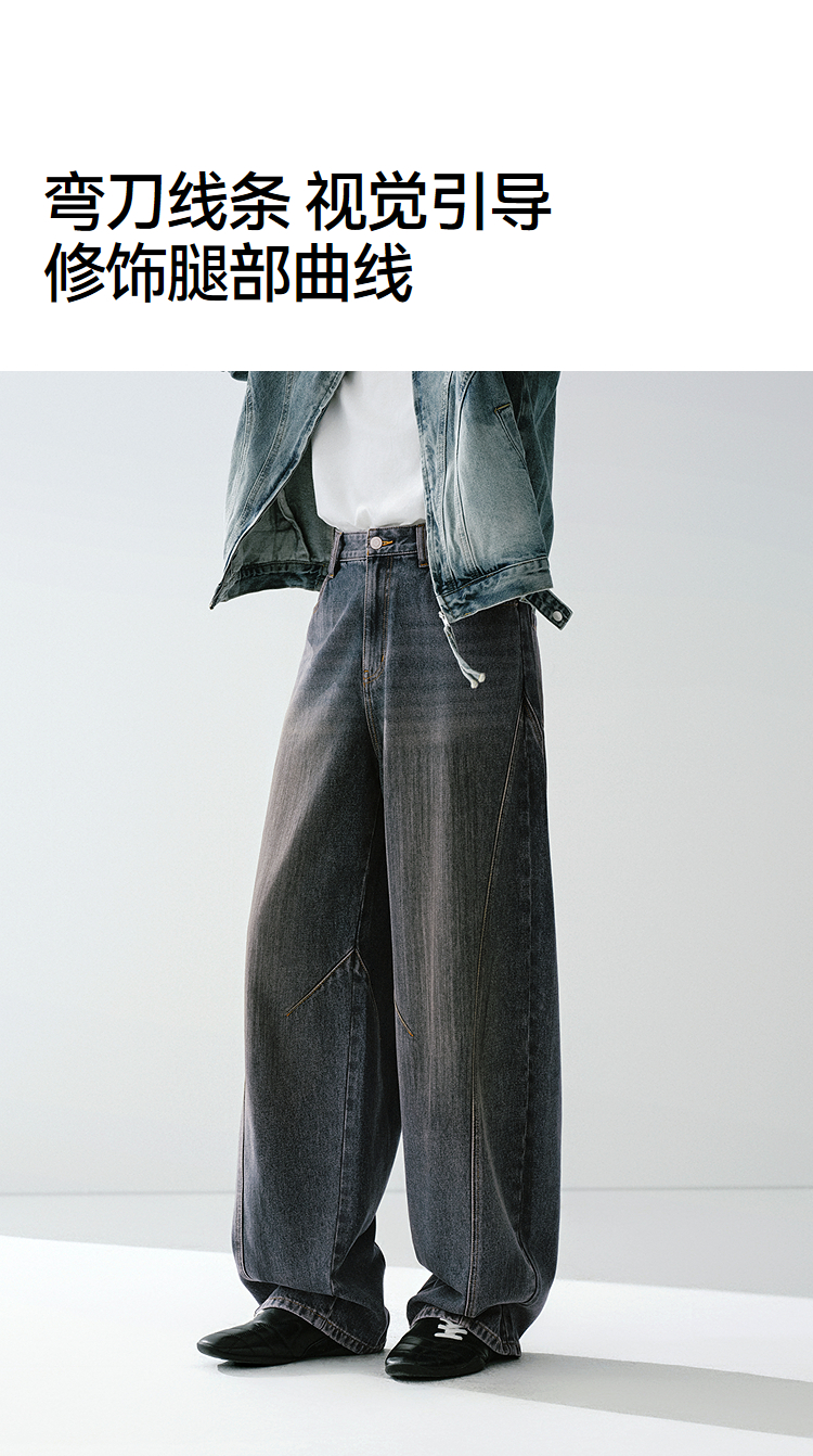 森马牛仔裤男做旧水洗阔感弯刀裤宽松弧形裤2026春新款复古风长裤