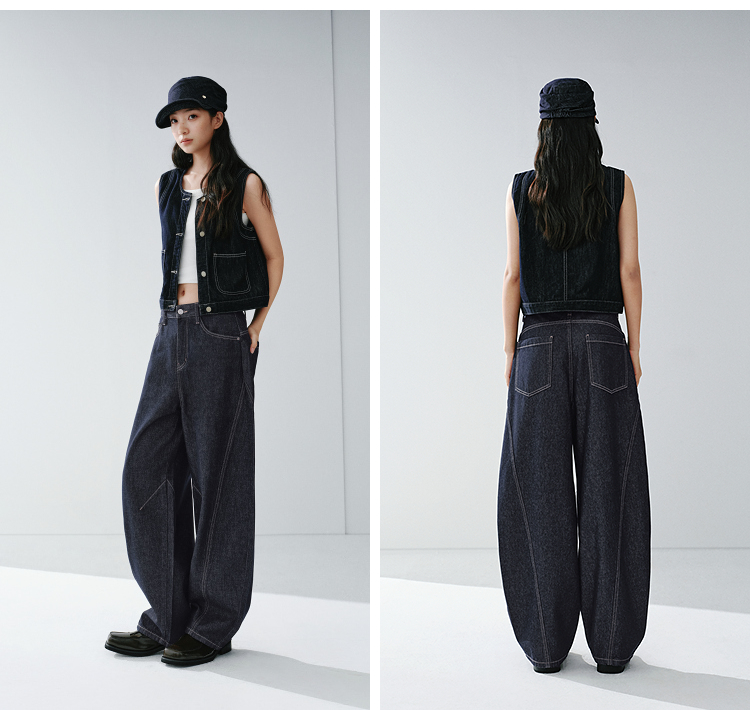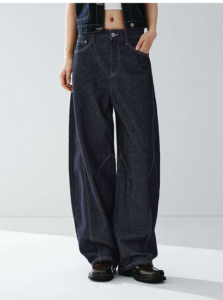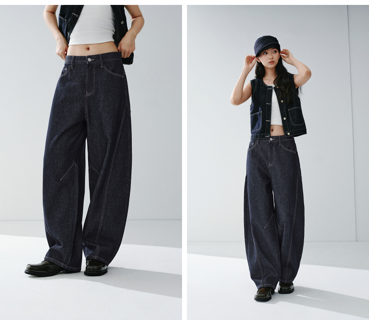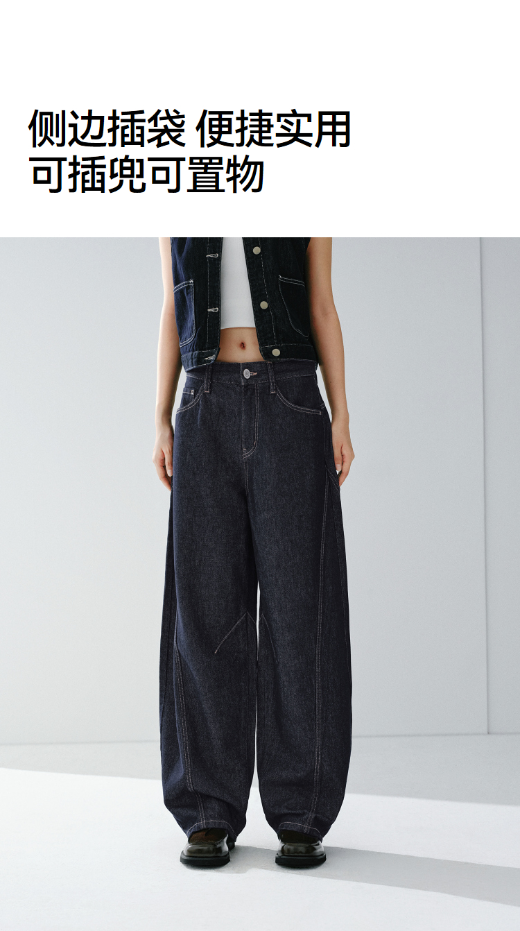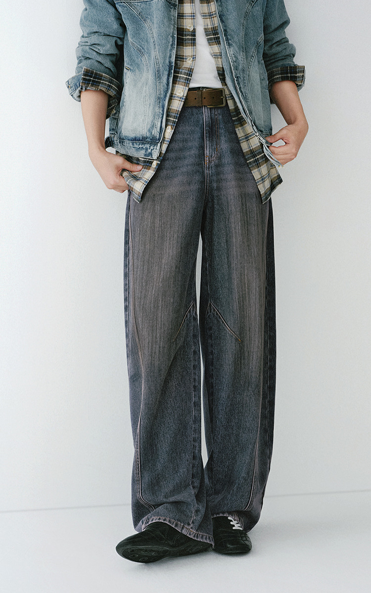 森马牛仔裤男做旧水洗阔感弯刀裤宽松弧形裤2026春新款复古风长裤